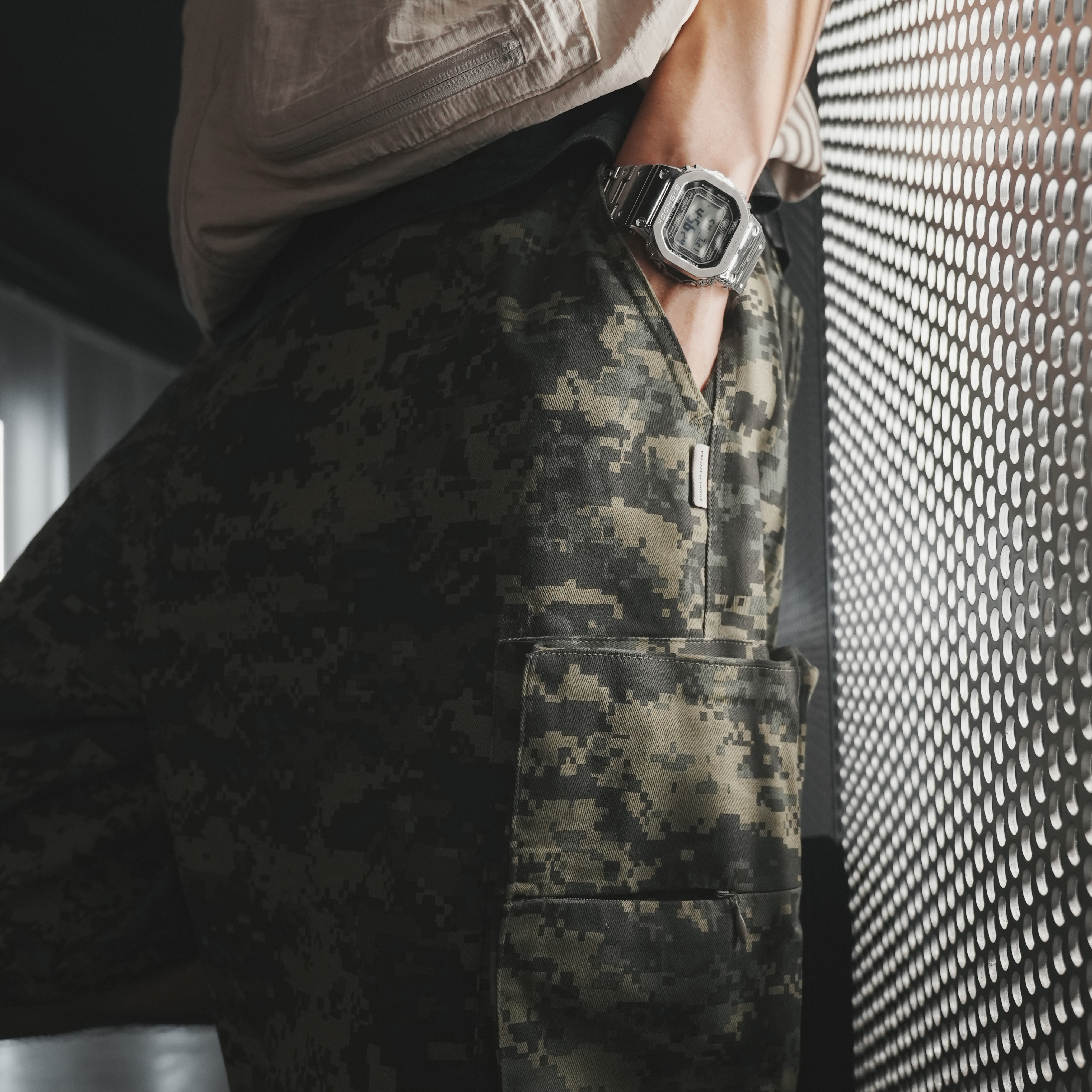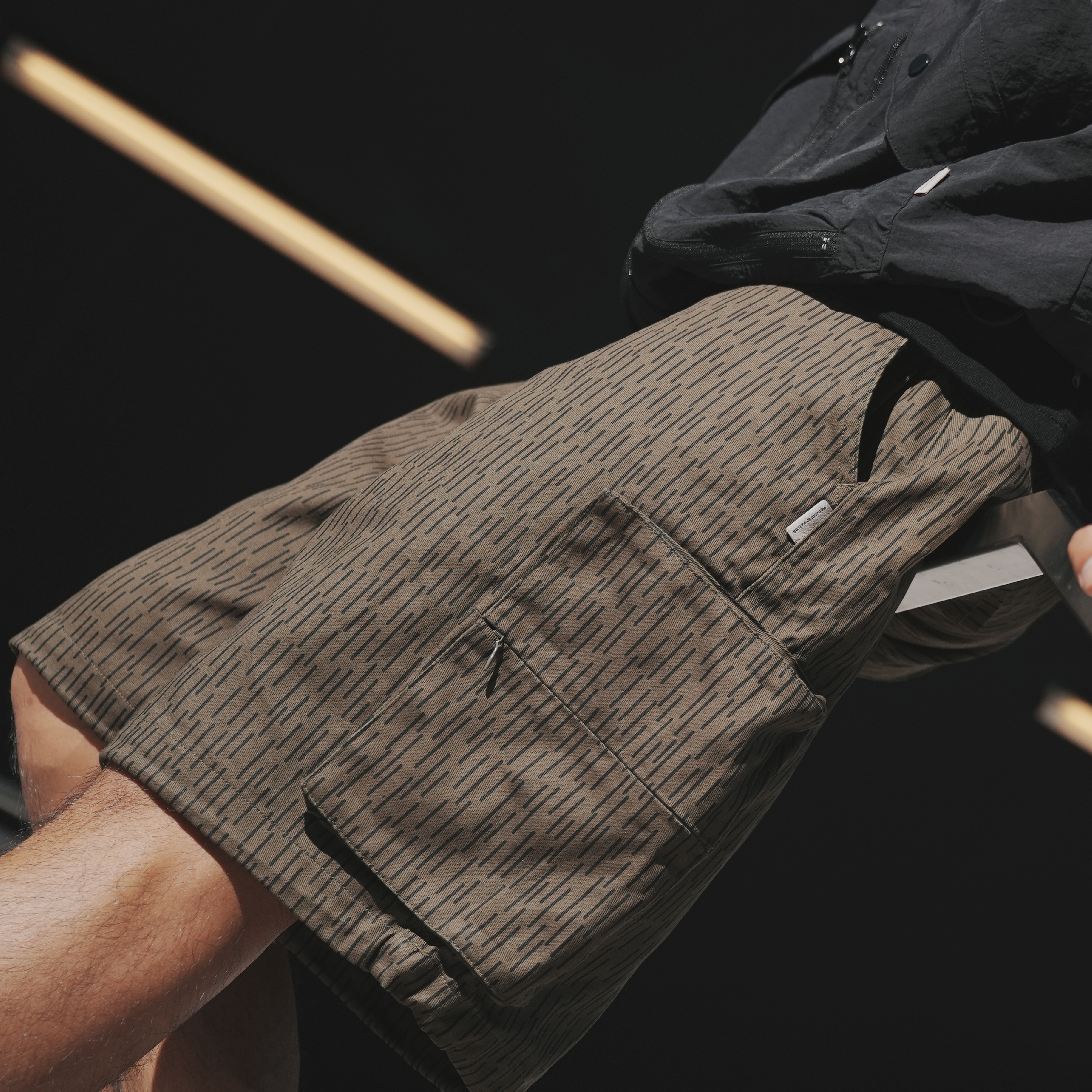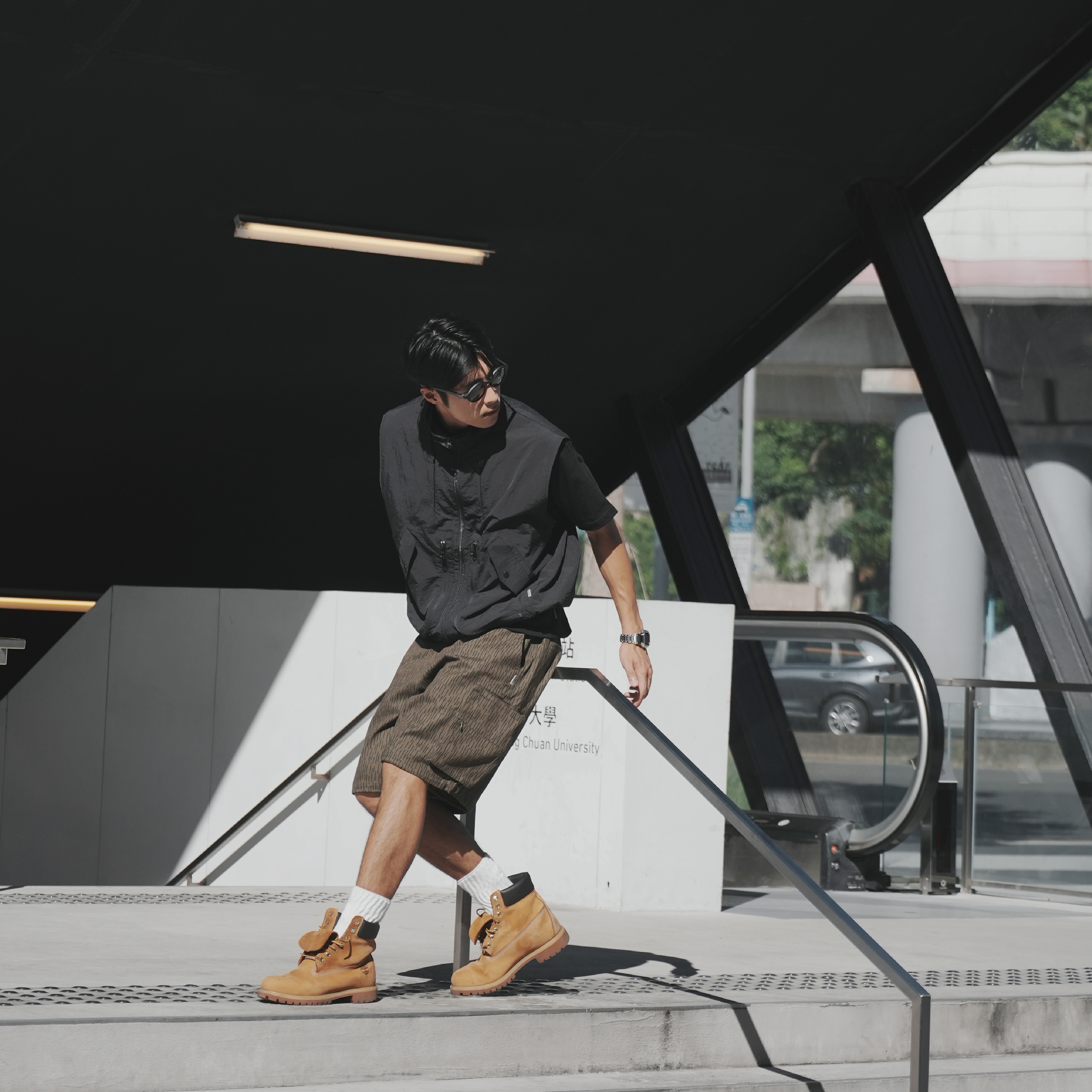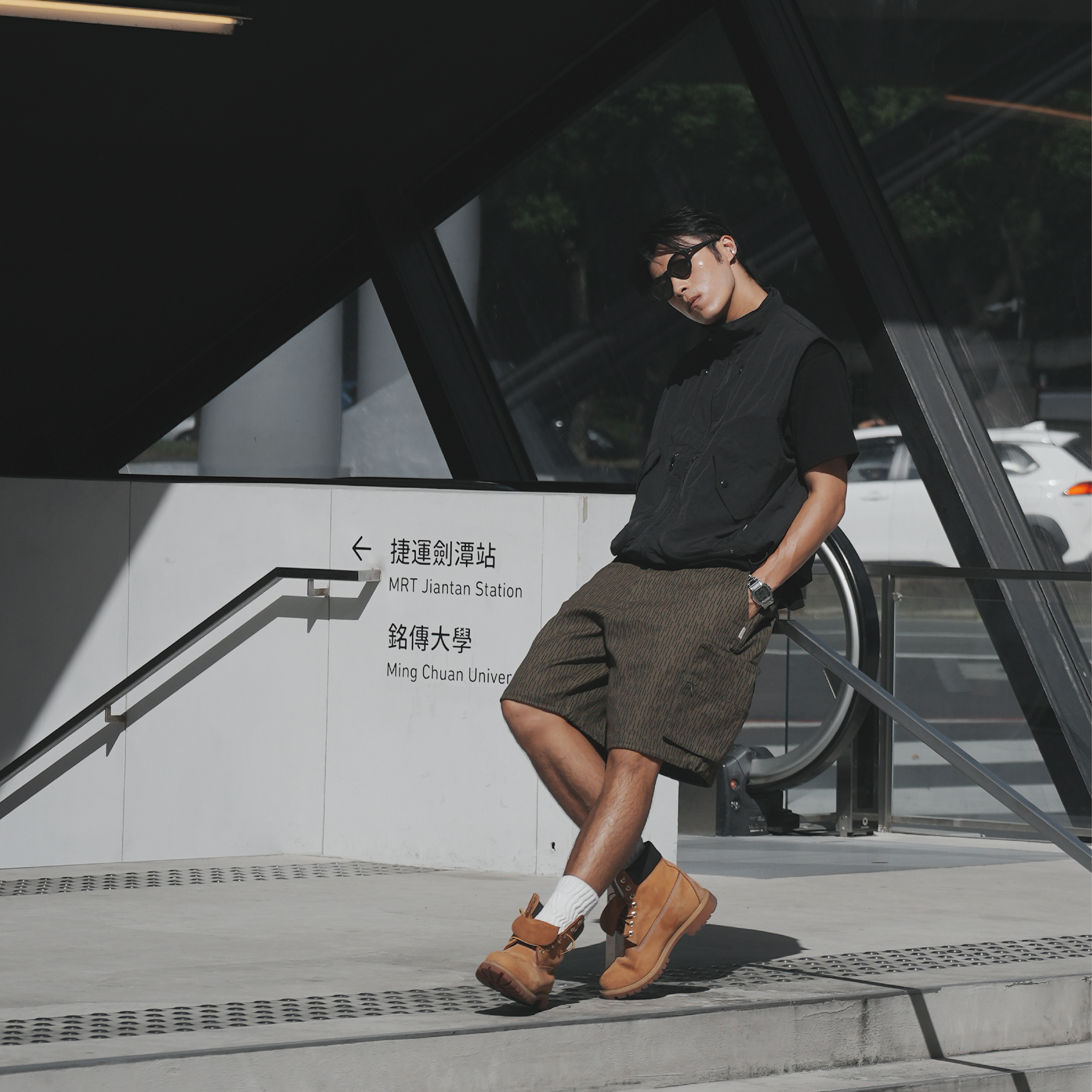 腰部搭配鬆緊褲頭,⽇常著⽤更為舒適