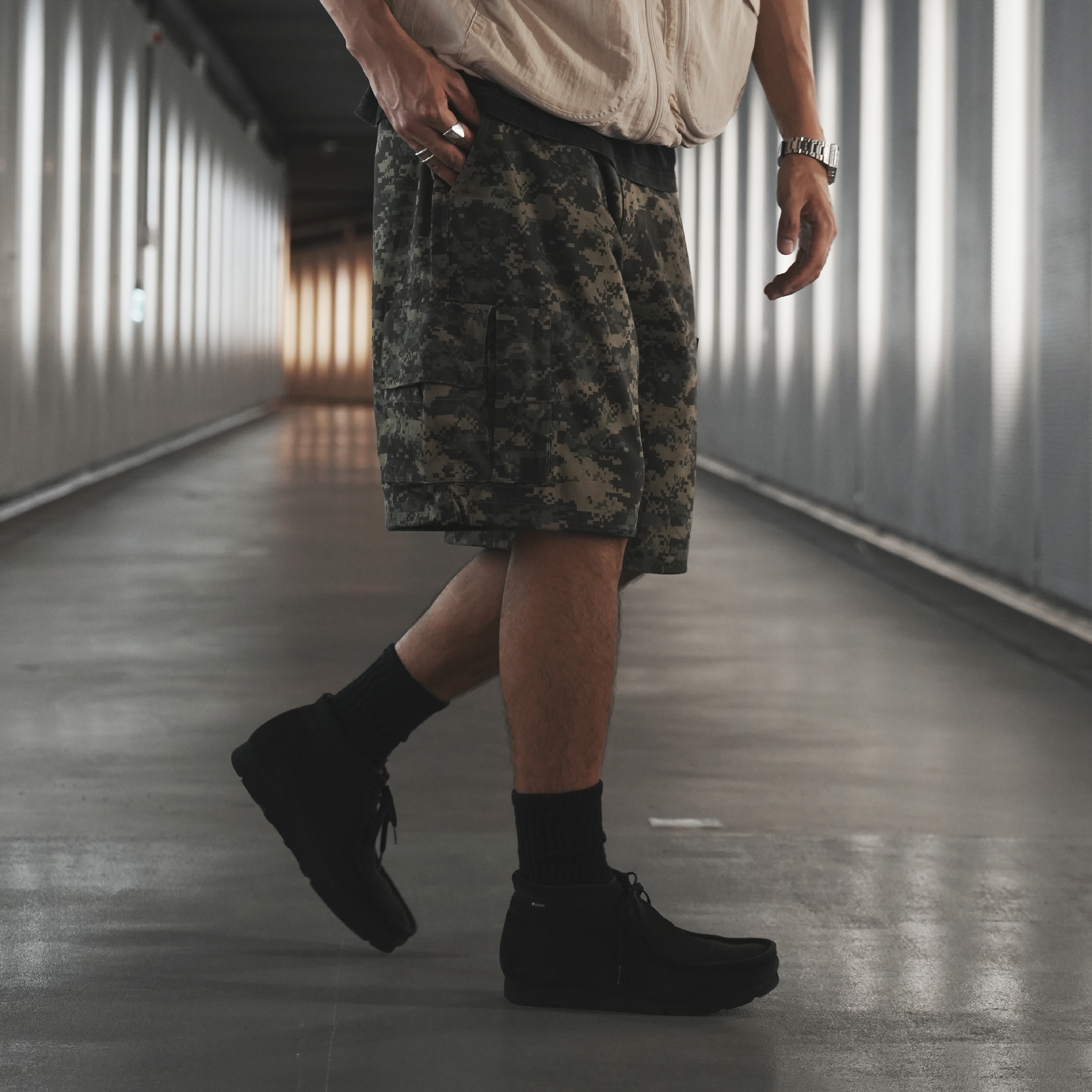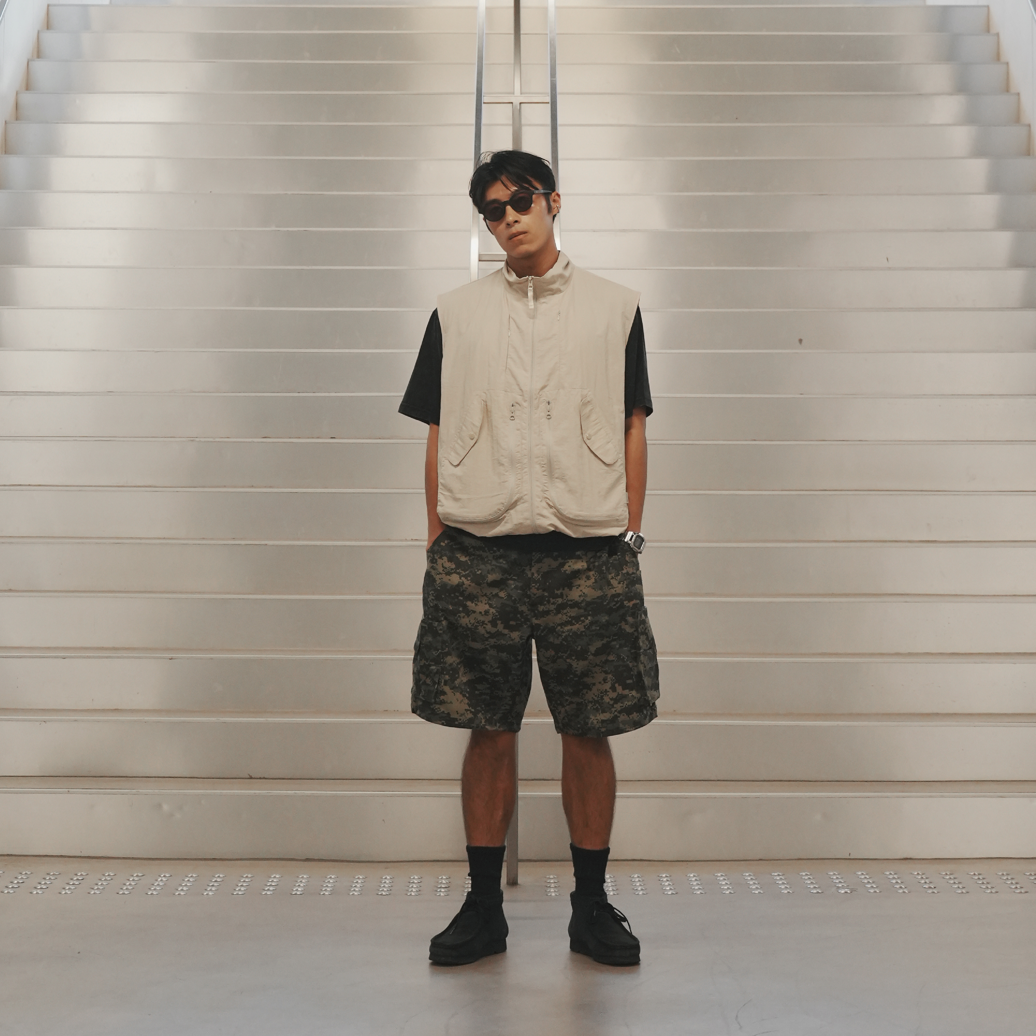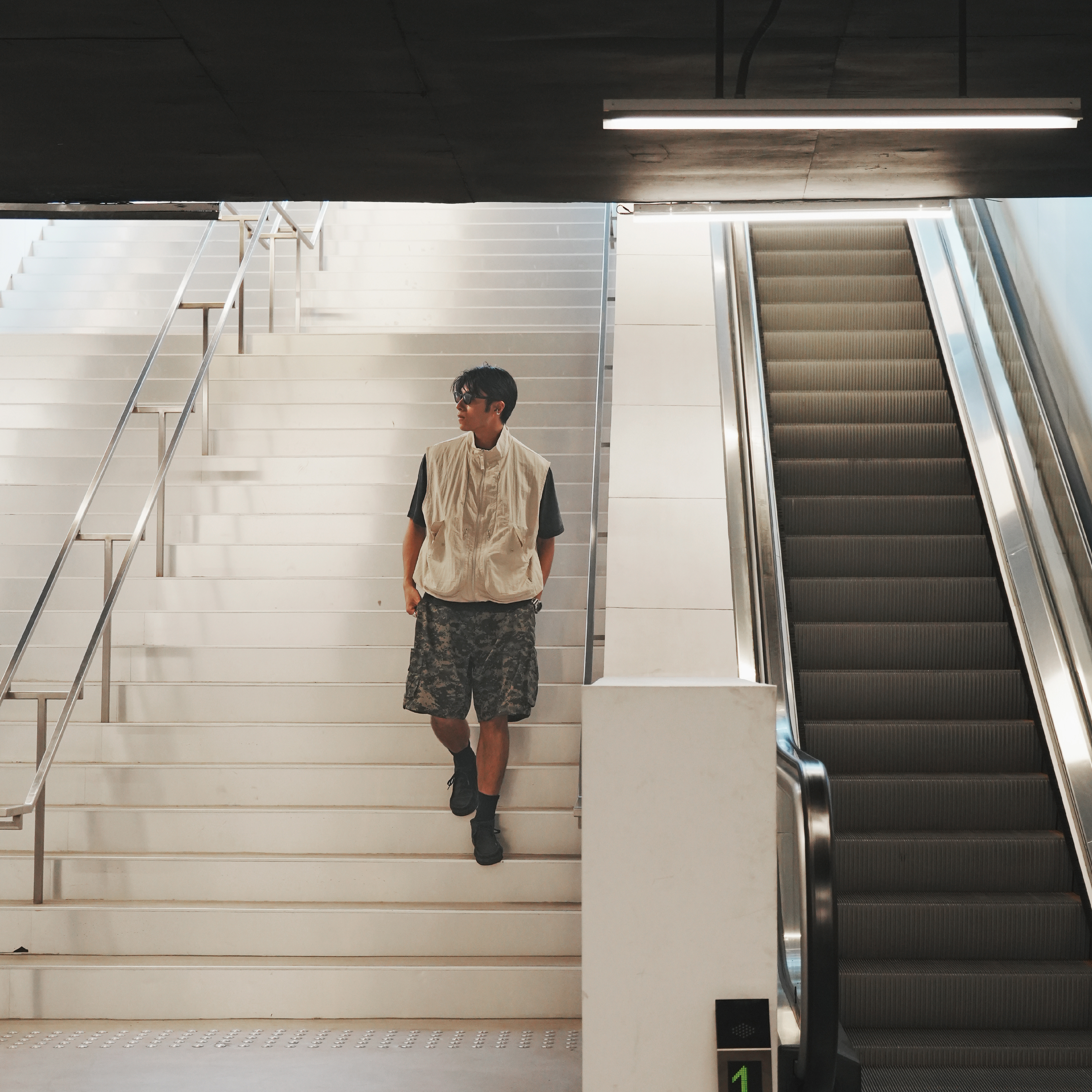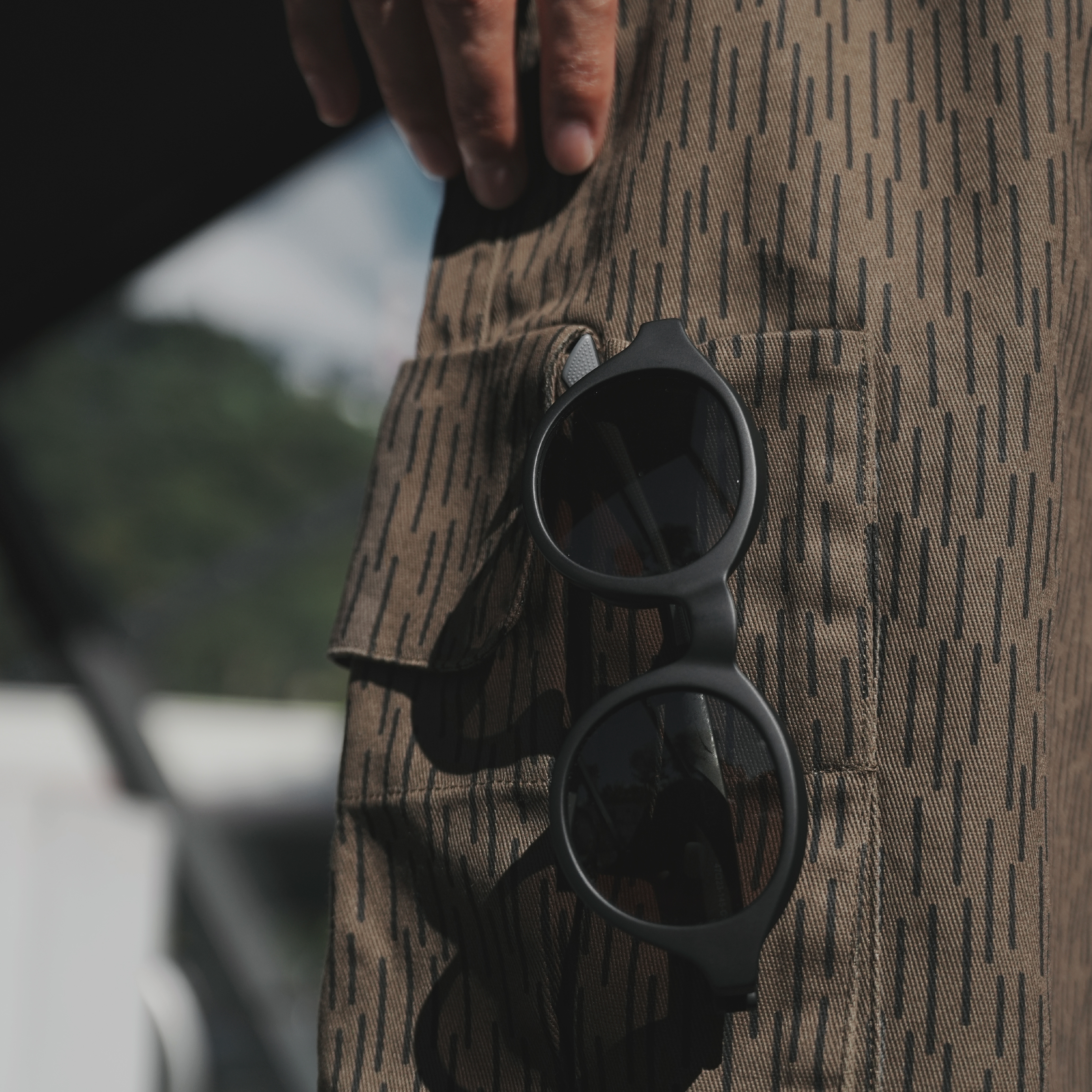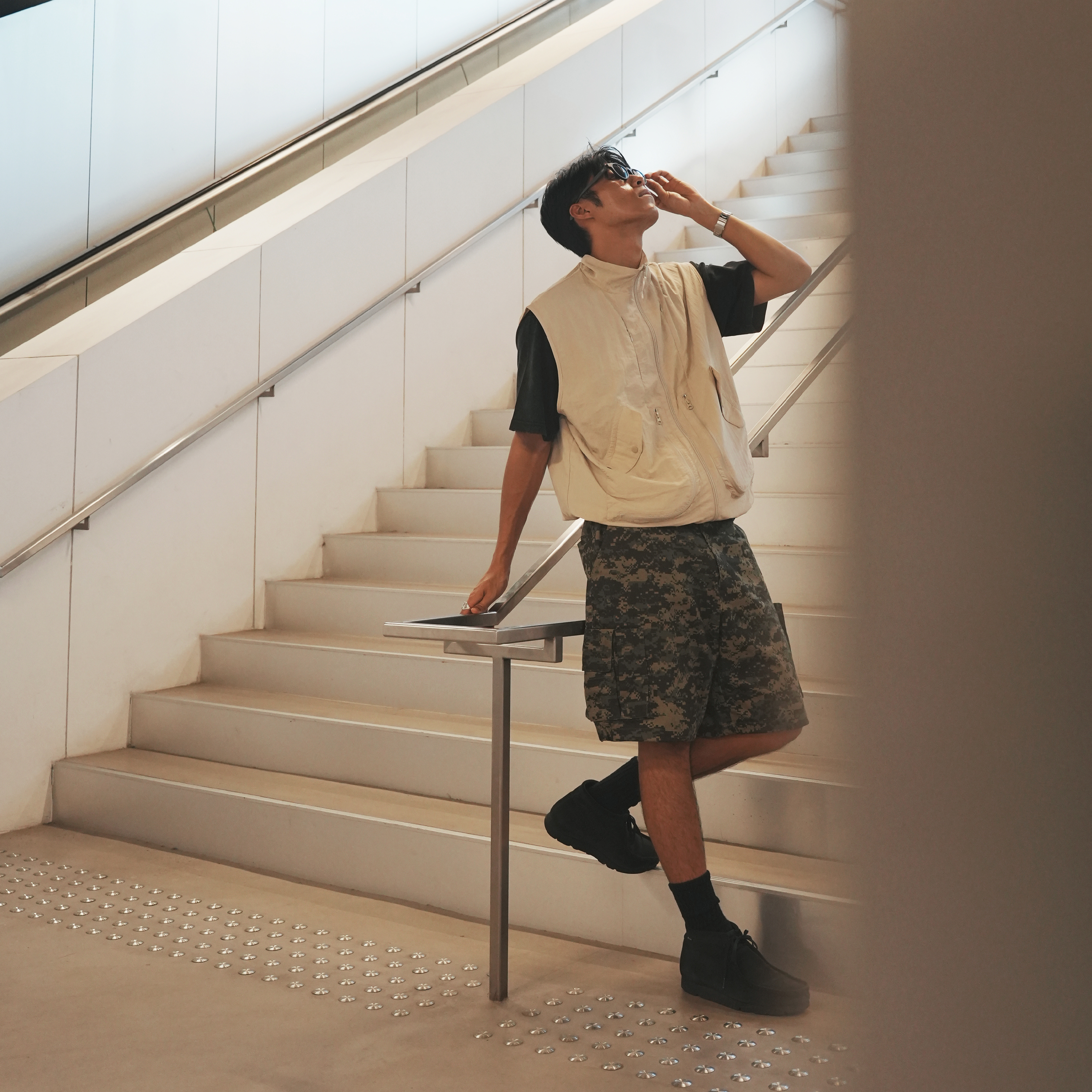 腰部搭配鬆緊褲頭,⽇常著⽤更為舒適