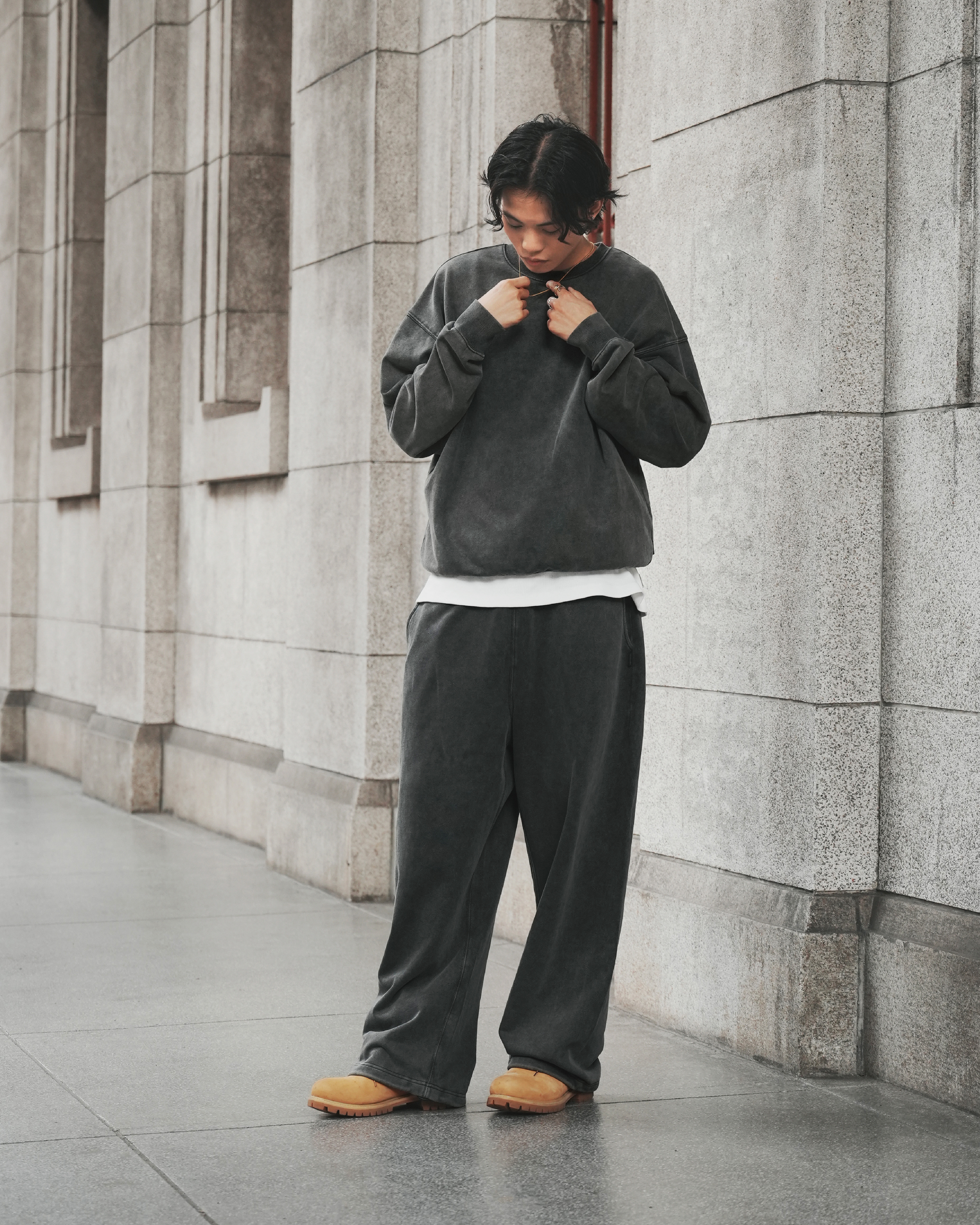 厚磅同時柔軟的布料特性,營造有份量的寬鬆輪廓