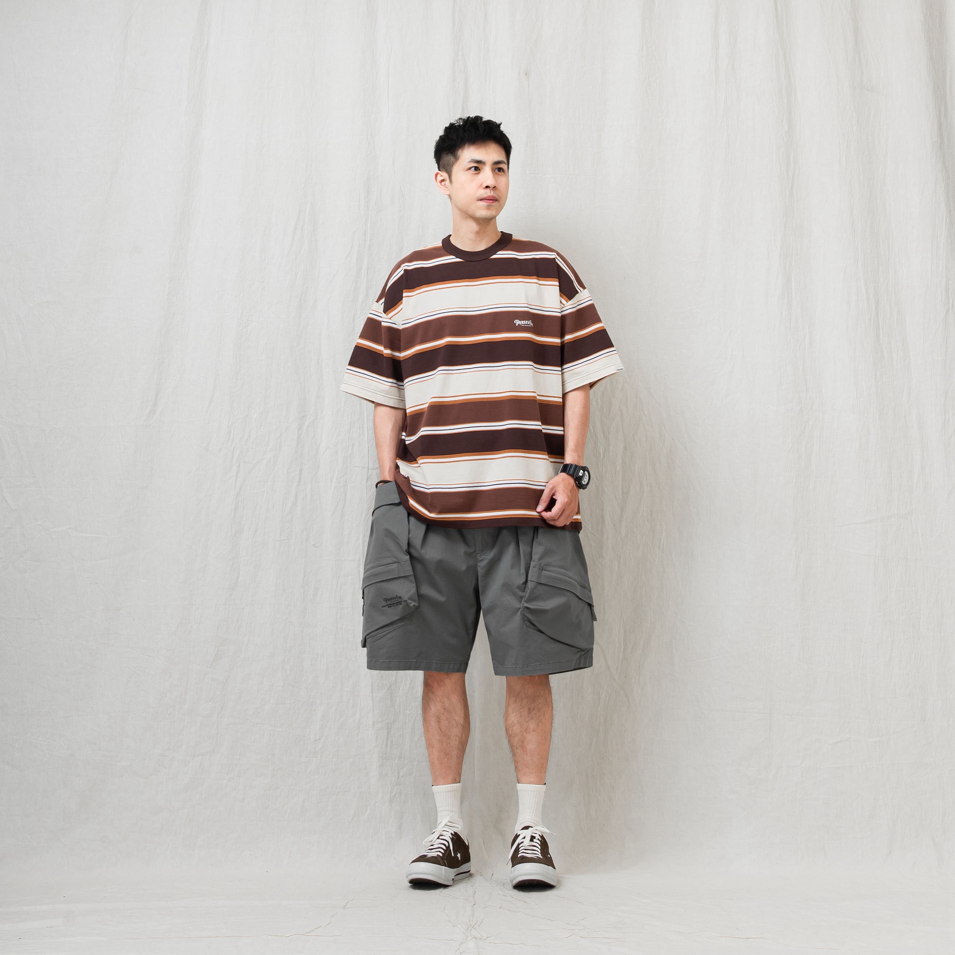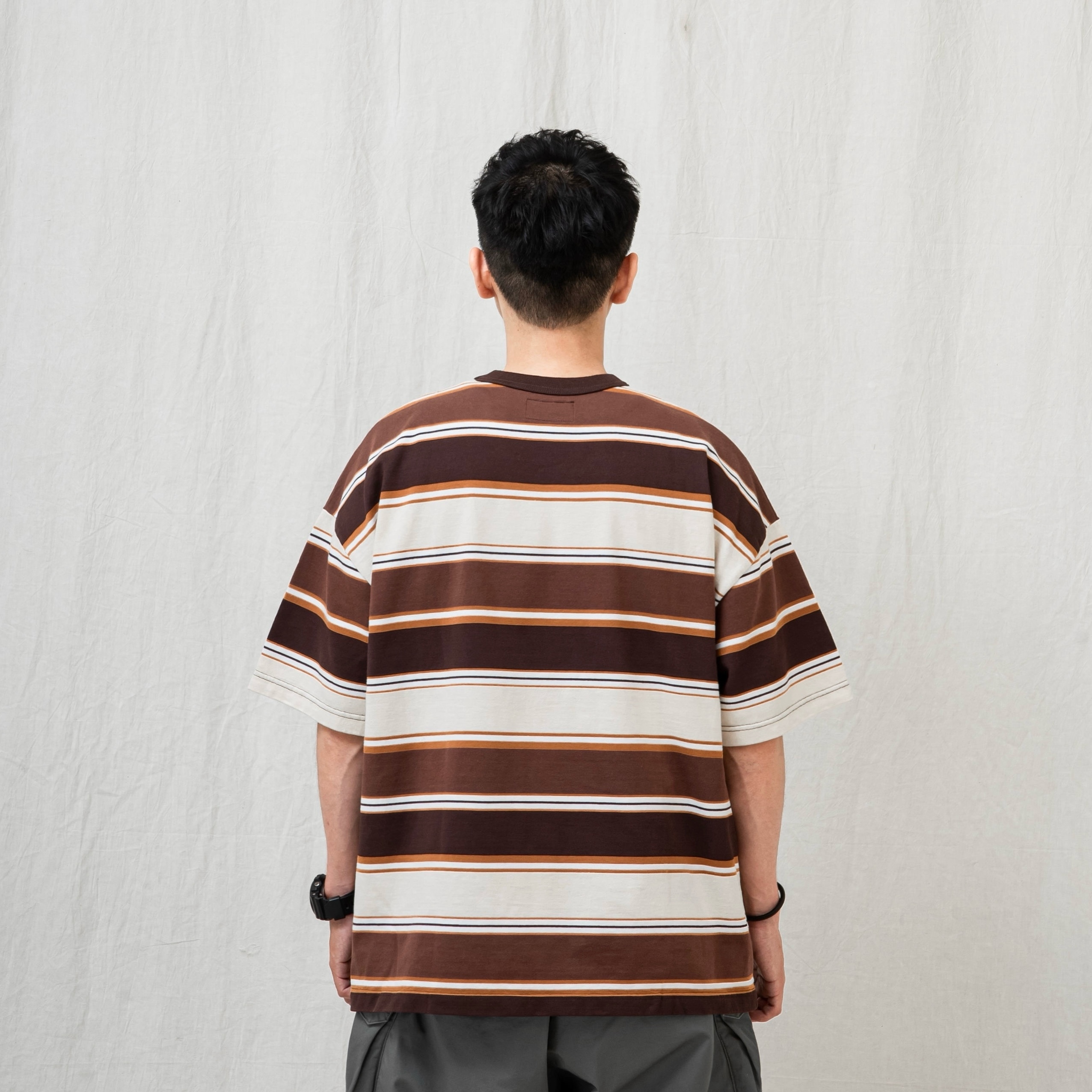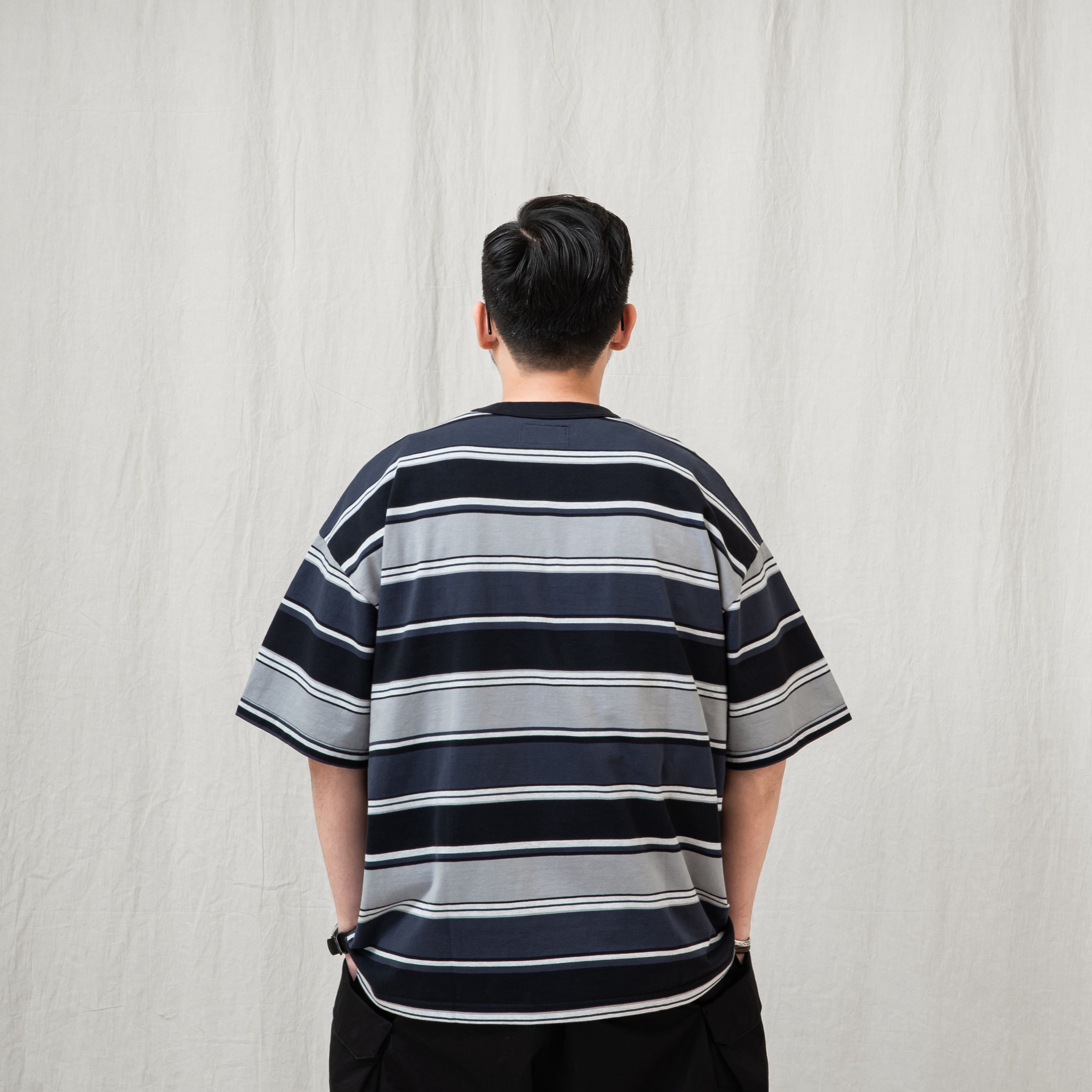 夏季必著款式回歸!大人氣品牌獨家條紋T恤全新發售 ,材質全面升級為雙股紗精梳棉面料,以印象漸層感的概念設計,採用相近色邏輯設定條紋色彩,規劃出米白、復古橘、咖啡條紋與淺灰、黑、灰藍條紋二款配色,並採用面料水洗預縮製程,避免衣物縮水窘境,搭配加厚羅紋包覆領口,以達到防止變形與提升耐穿度,版型部分則以寬鬆落肩輪廓作為設定,讓夏日著用更為輕鬆舒適。