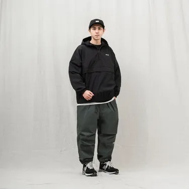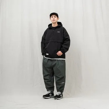 高抗風性防潑水尼龍衝鋒衣全新發售,以高防風度需求作為設定,採用高濕阻抗指數的機能貼合面料製作,複合式的高密度布料帶有挺度,並提供耐磨、防潑水與高抗風的機能性,搭配品牌特色的特殊落肩寬鬆版型,與細部調節抽繩、鬆緊帶配置,形成一款抗風度強的破風衝鋒衣。