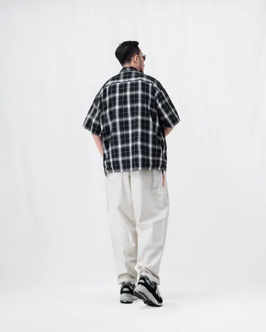 ● 後腰圍鬆緊帶設定並保留褲耳細節,可搭配腰帶調整寬鬆度,增添著用的便利性。