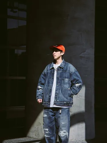 ● 特選 14.5oz 重磅丹寧面料製作,布性厚實舒適並帶有自然挺度。