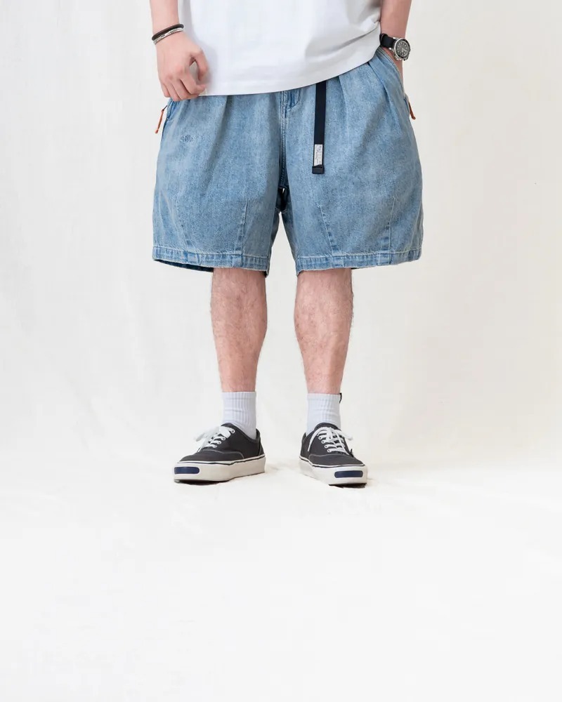 夏季氣球感立體雙摺短褲全新發售,挑選二款具有挺度的水洗牛仔、斜紋面料製作,以四道立體腰圍摺線搭配褲口褶線,形成立體寬鬆的版型,牛仔布料特別採用多次水洗工序,呈現自然著用的淺色水洗質感。細節配置:拉鍊袋橘色拉繩、褲耳D字環、7個收納口袋,提升著用時的實用度。