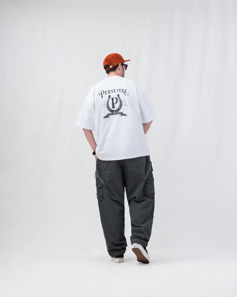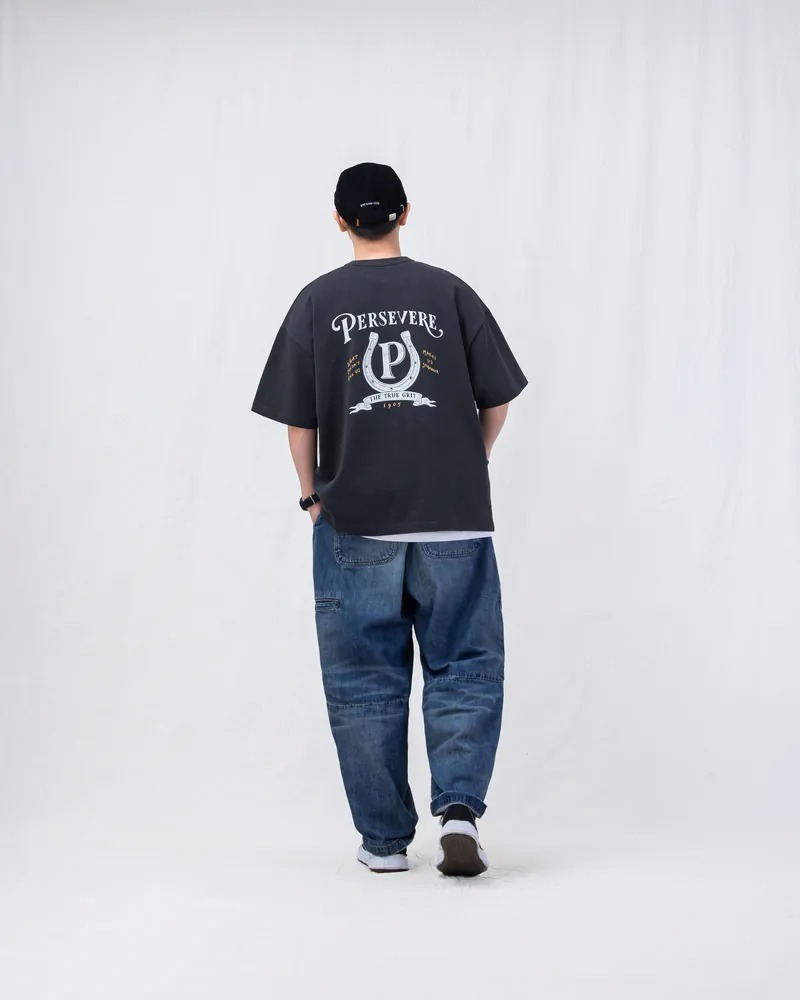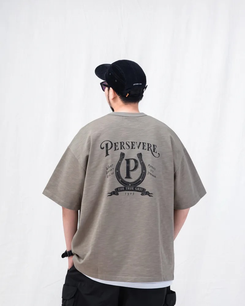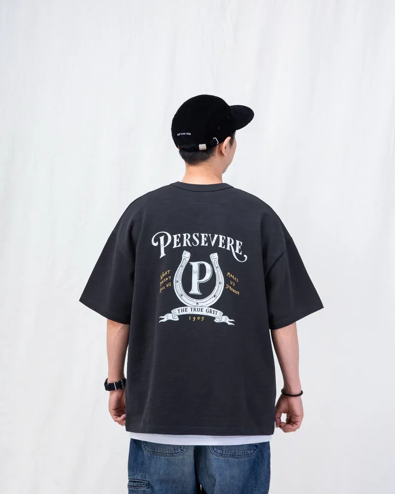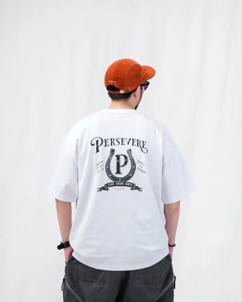 PERSEVERE 春夏手繪馬蹄鐵圖像T恤全新發售,特選高磅數竹節棉面料進行製作,以極具特色的手繪風格呈現美式復古馬蹄鐵圖像。工序方面,採用二次水洗預縮製程,大幅減低衣物縮水窘境,選用加厚羅紋包覆領口,達到防止變形與提升耐穿度,版型則採用寬鬆落肩剪裁作為設定,單穿或混搭都相當合適。