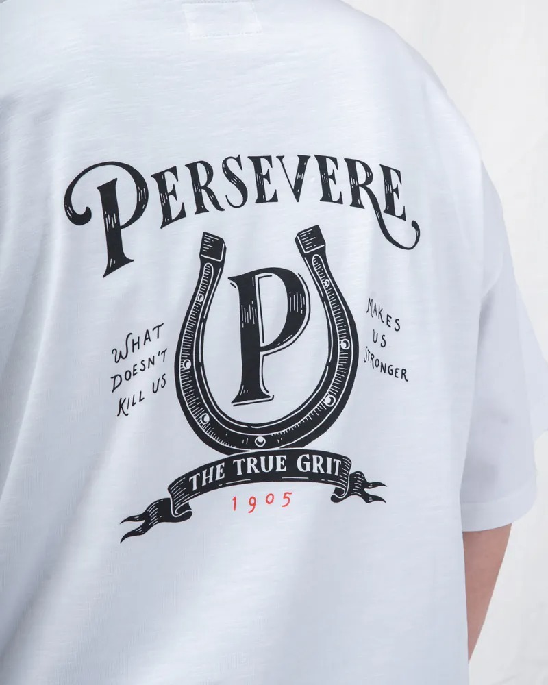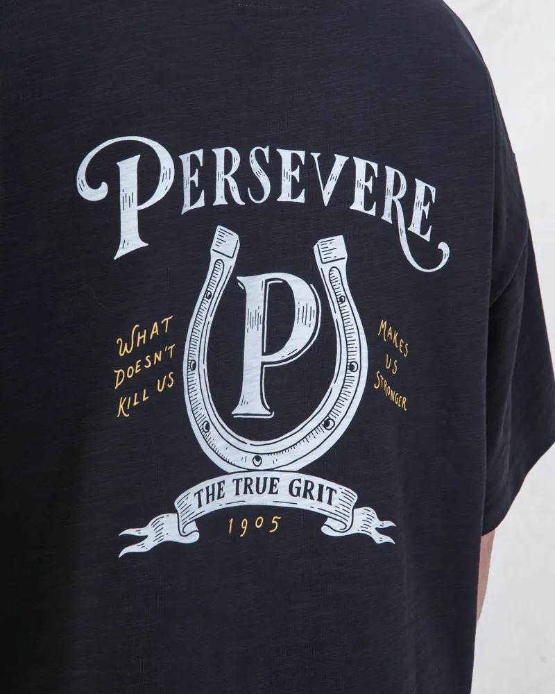 名:PERSEVERE HAND-DRAWN HORSESHOE GRAPHIC T-SHIRT