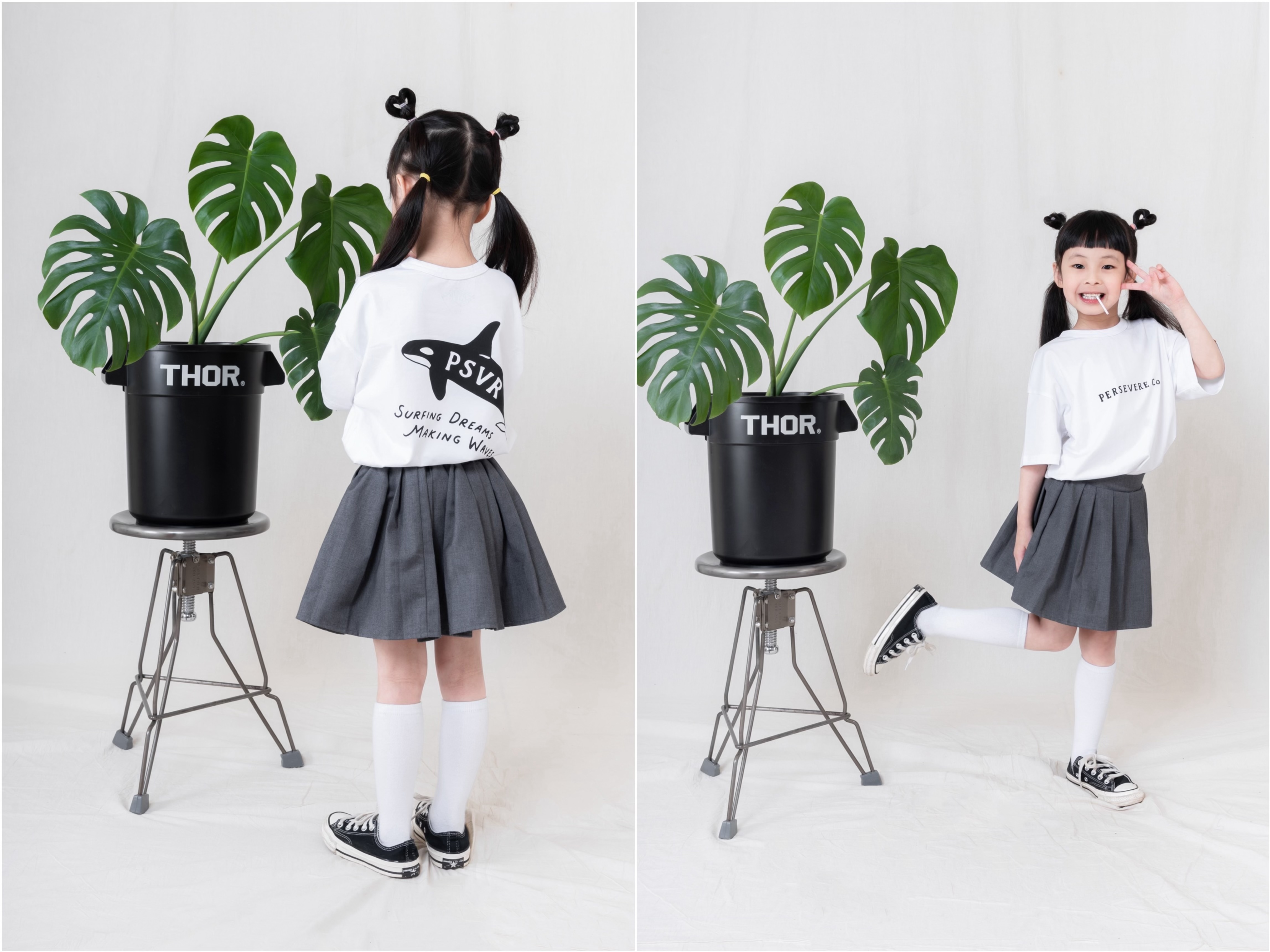 PERSEVERE 2025 春夏童裝全新販售,集合品牌經典的定番口袋Tee、虎鯨Tee、雷鳥Tee 作為設定,挑選厚薄適中的棉質混紡彈性面料製作,搭配寬鬆落肩輪廓,提供小朋友舒適涼爽的穿著感受,同時進行水洗預縮的工序,以延長衣物的穿著壽命。