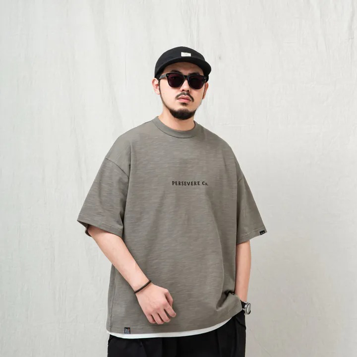 大幅減低衣物縮水窘境,選用加厚羅紋包覆領口,達到防止變形與提升耐穿度,版型則採用寬鬆落肩剪裁作為設定,單穿或混搭都相當合適。