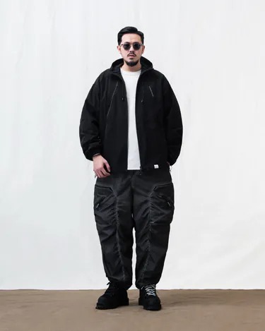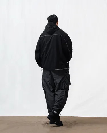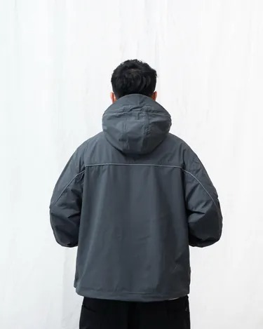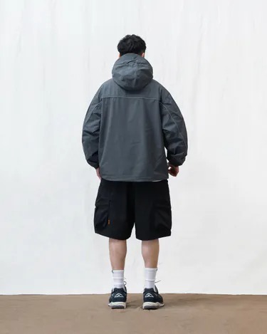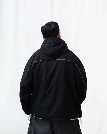 ● 立體寬鬆的落肩版型,正面以拼接方式設置三個隱形拉鍊口袋,搭配背面3M反光出芽飾邊設計,兼具實用與安全性。