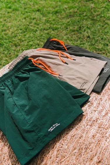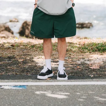 夏季別注系列第七款,以夏季海灘休閒為概念,選擇微抓皺防潑水尼龍面料製作,搭配柔軟透氣的網布內裡,提供著用時的舒適質感,細節方面,在褲管使用本季核心概念標語刺繡、側口袋下方的織標配置與顯目的撞色抽繩,褲型採用寬鬆俐落的版型呈現,背後增加拼接口袋設計,適合與各式上衣搭配,輕鬆穿出度假休閒氛圍。