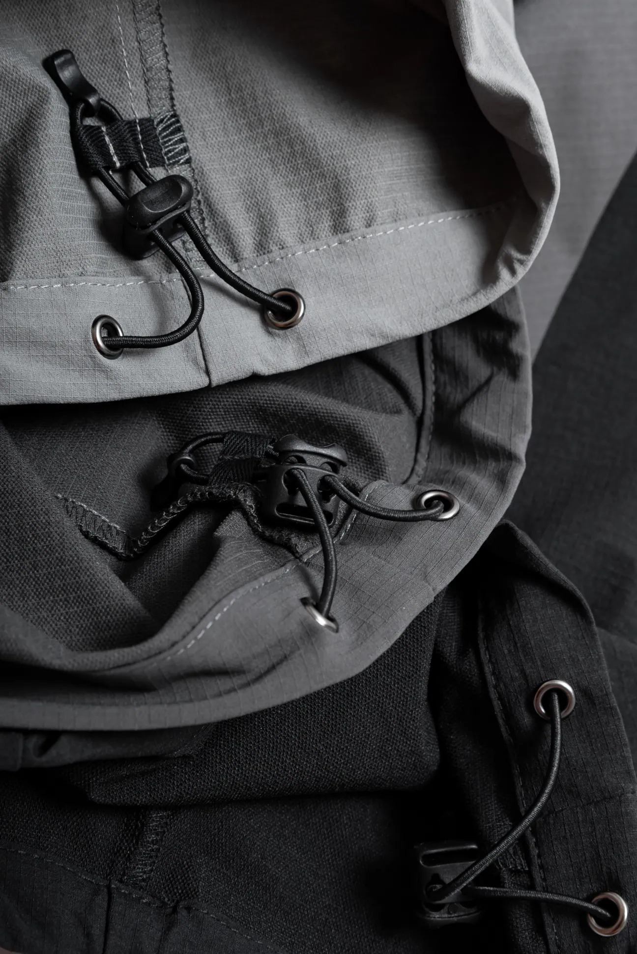● 褲腳內側配置抽繩扣具細節,提供三種褲腳型態的變化,滿足不同穿搭造型感。