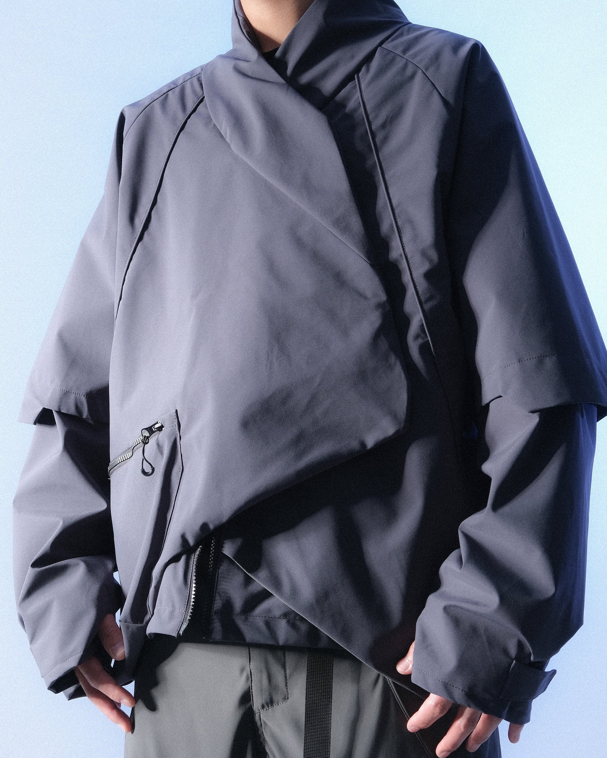 設計靈感以未來鎧甲〔VISOR〕作藍本,以立體層次及幾何線條呈現鎧甲的立體感製作的Blazer,內/外各且備小物收納的空間。