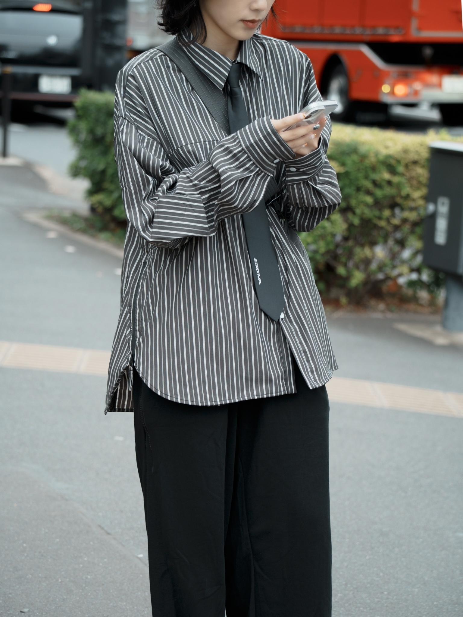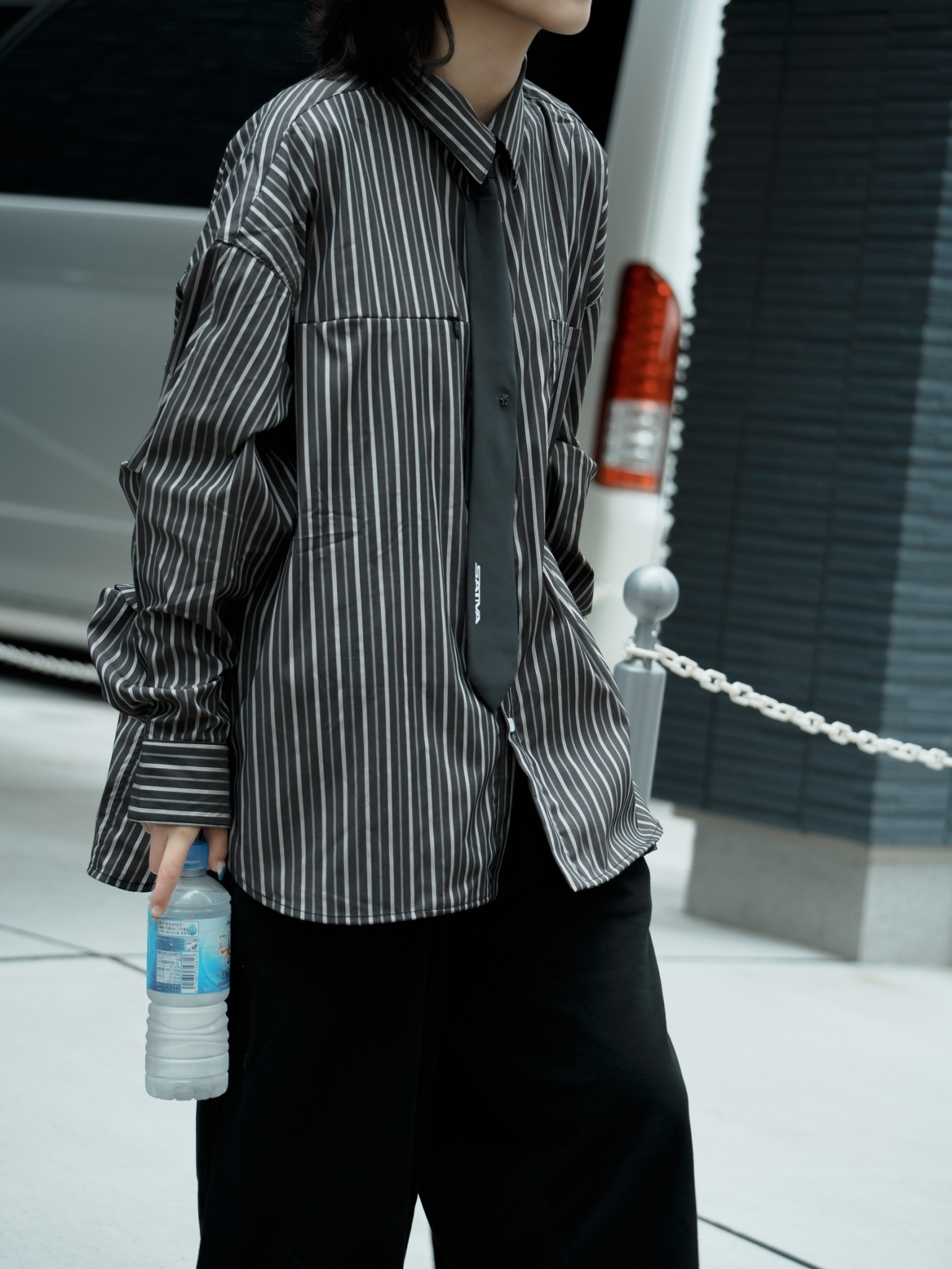 24 A/W Archive 01 首款襯衫之作,套用“H.BK-02”設計概念,並植入SATIVASTUDIO對於日常生活穿搭的沈浸儀式感,以標誌性直紋作為主體,極簡之初賦予場域的著裝意識,同時注入“Symbolic” Necktie 作品,為整體穿搭層次與搭配動機更加完善,影擬城市機能與都市履行提供另類想像與形塑樣態。