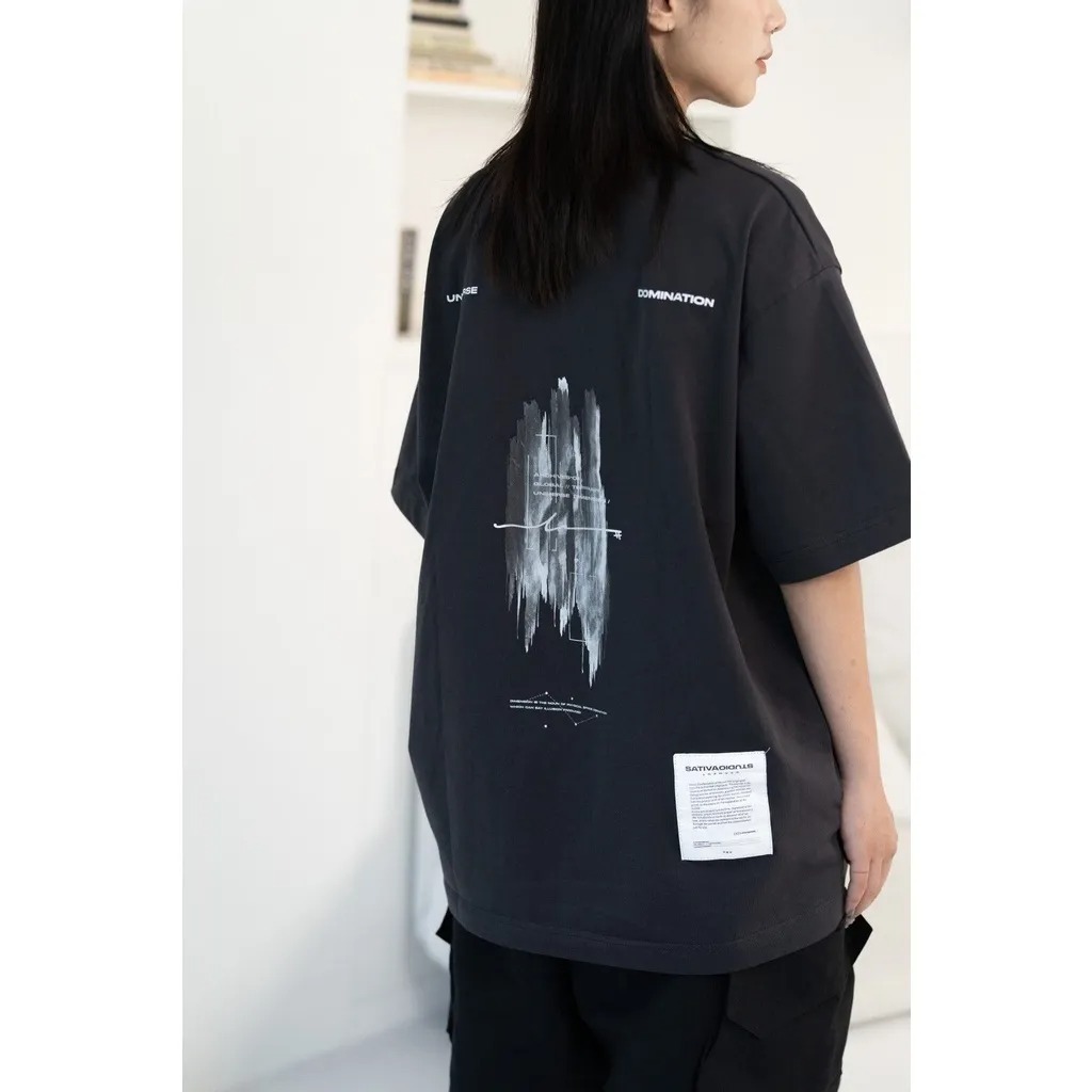 本次作品採用100% Cotton透氣舒適純棉,設計理念源自於“UG-01”概念,以石墨筆刷質地的無機物作為主視覺,意在重新解釋虛無與幻覺、時間與空間之間的意象與定義,並以品牌Tagline貫徹其中,使其產生連結;肩部視覺沿用”UG-01”圖樣設計,象徵萬物之間的延續,輔以品牌泰維克標作為點綴;正面字樣採未來科技感LOGO設計,實現時空與未來之間的悖論與衝擊,側邊文字排版給予穿搭上不同的層次體驗,概念為主體,穿搭感為客體,主客融為一體,重新詮釋。