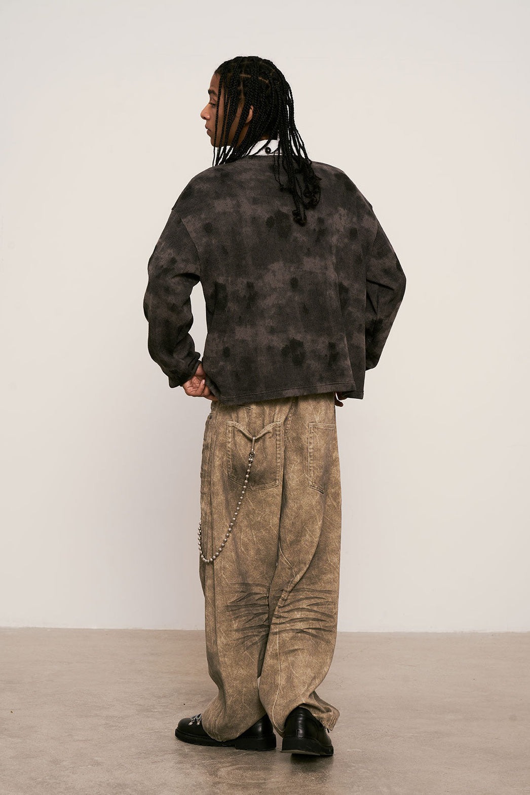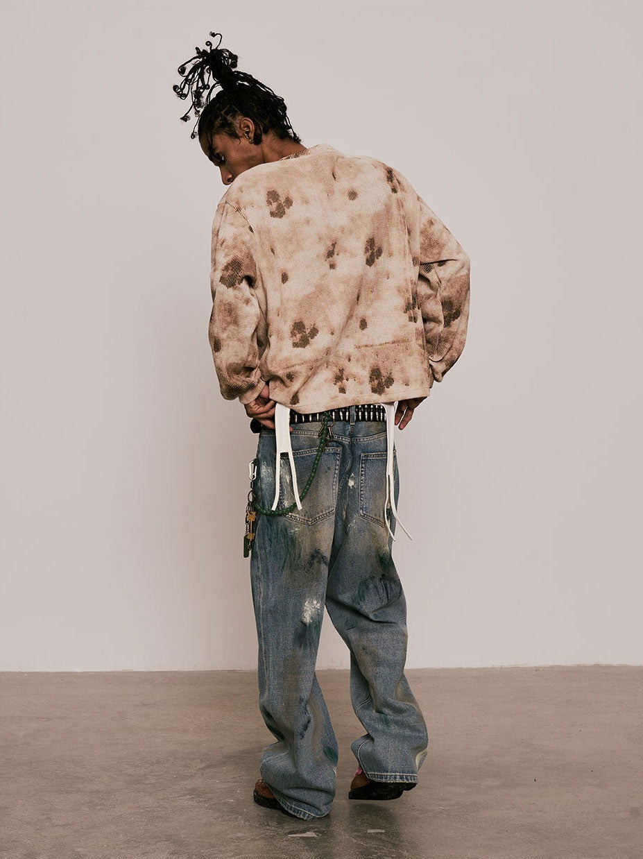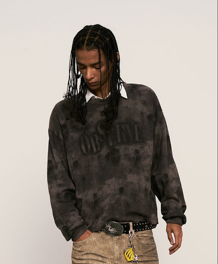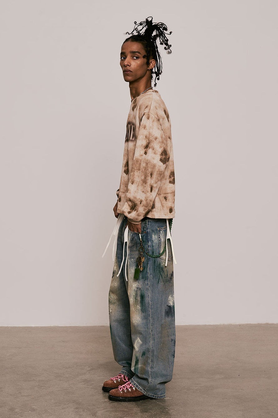 • 採用造舊洗水及噴色處理,呈現自然髒感層次
