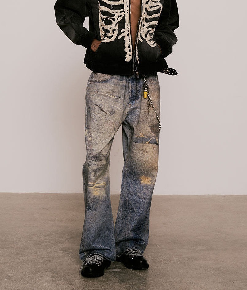 • 全褲身以 Fake Printing 技術呈現仿舊牛仔質感