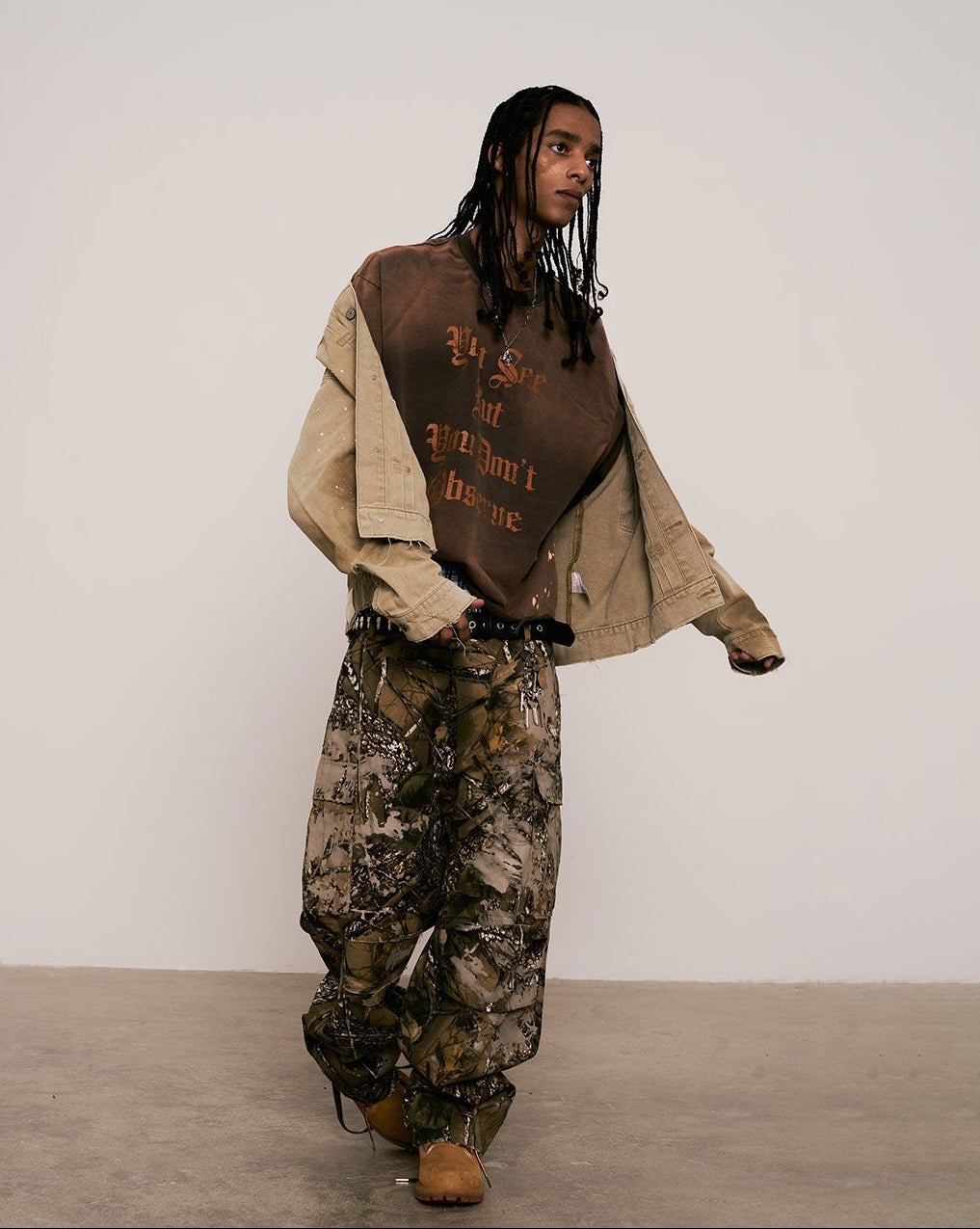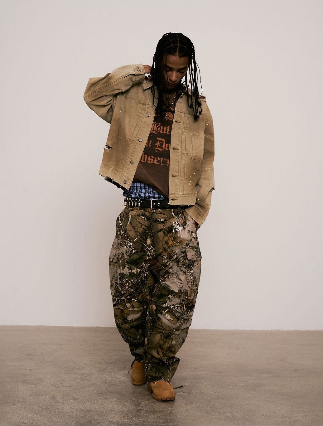 • 褲身以潑漆與髒感舊化處理打造獨特層次
