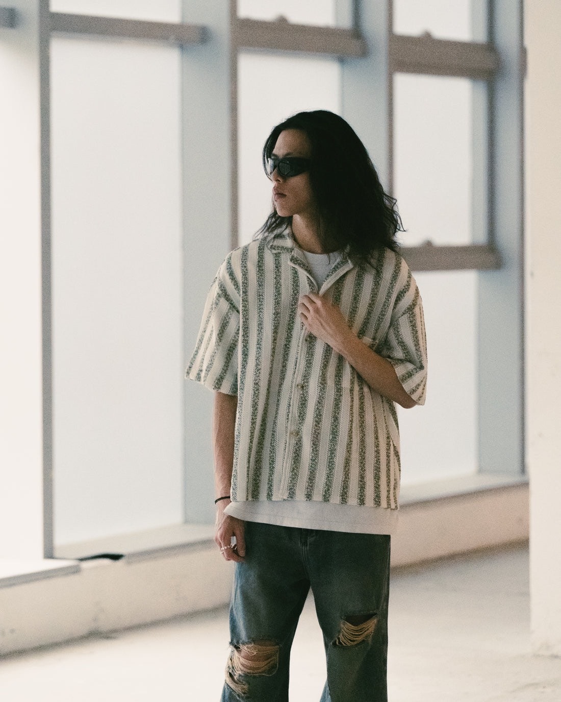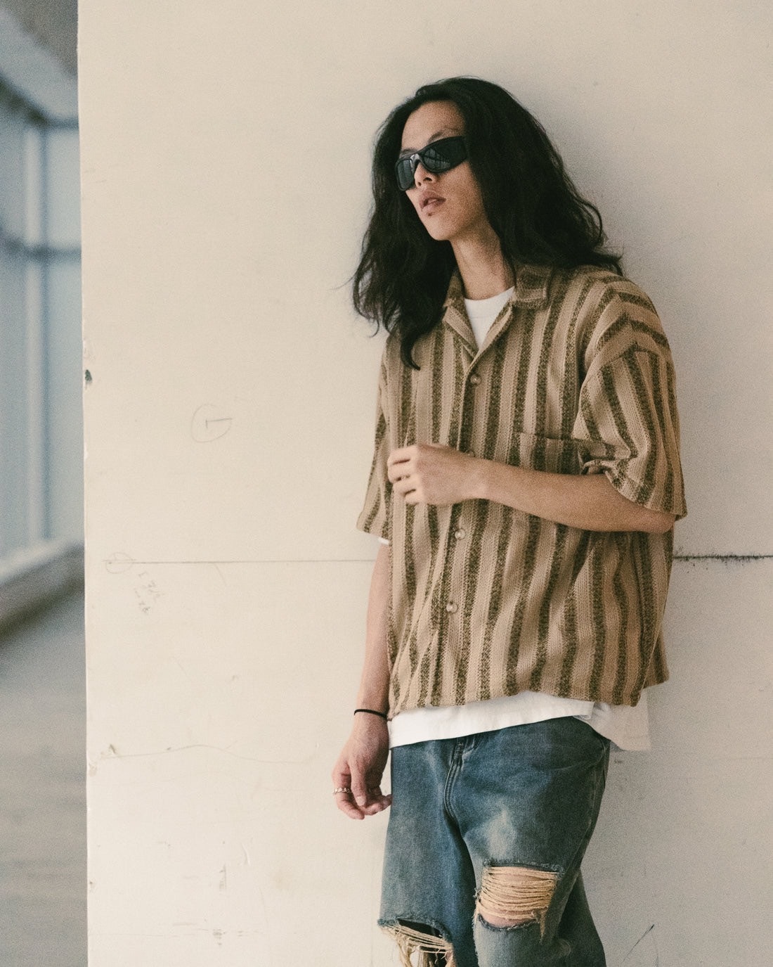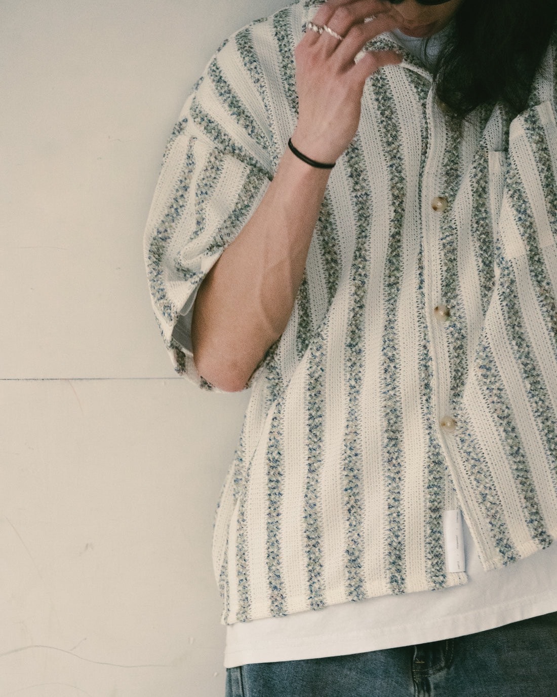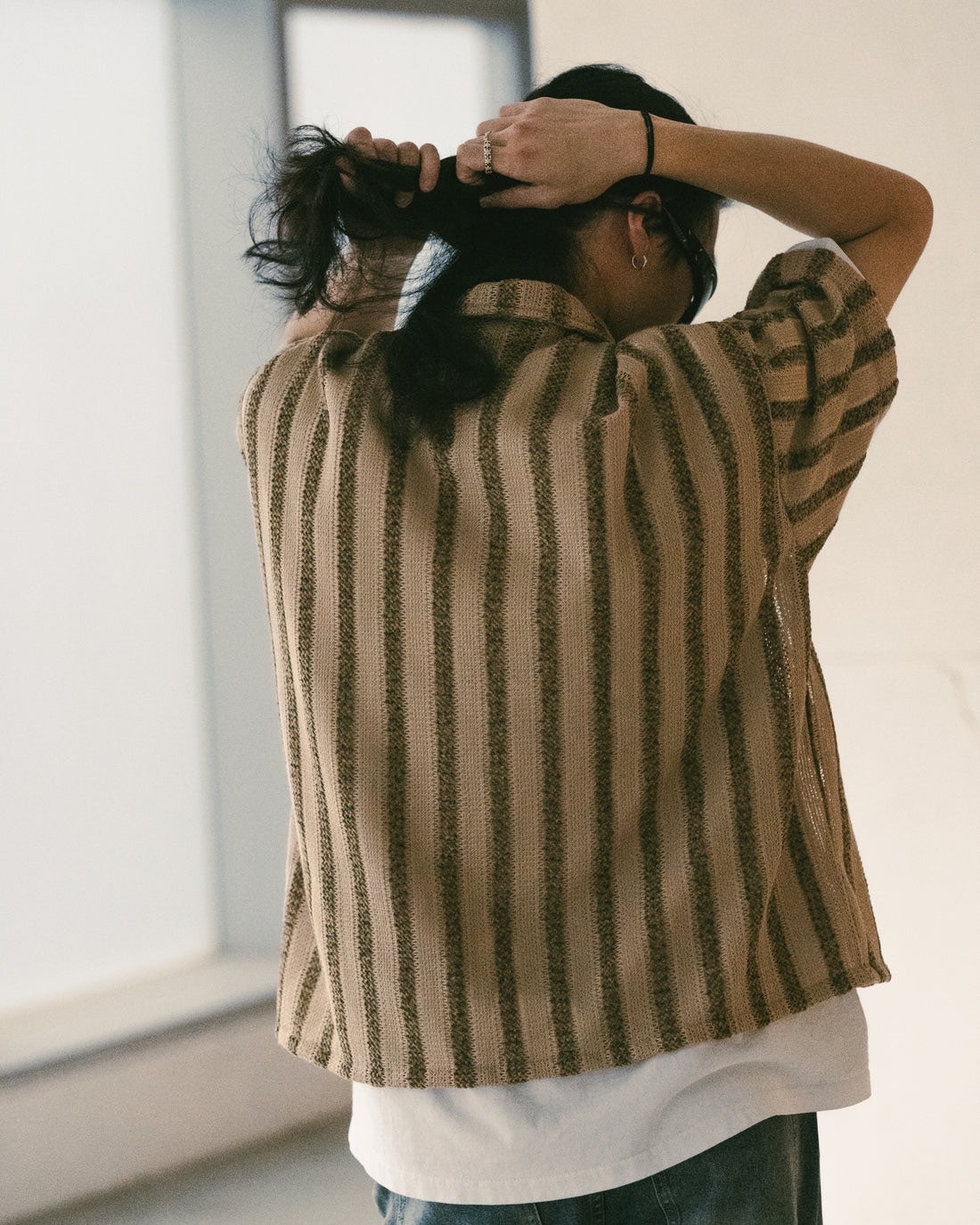 • 直間條紋針織襯衫