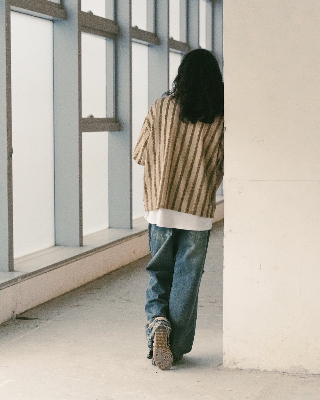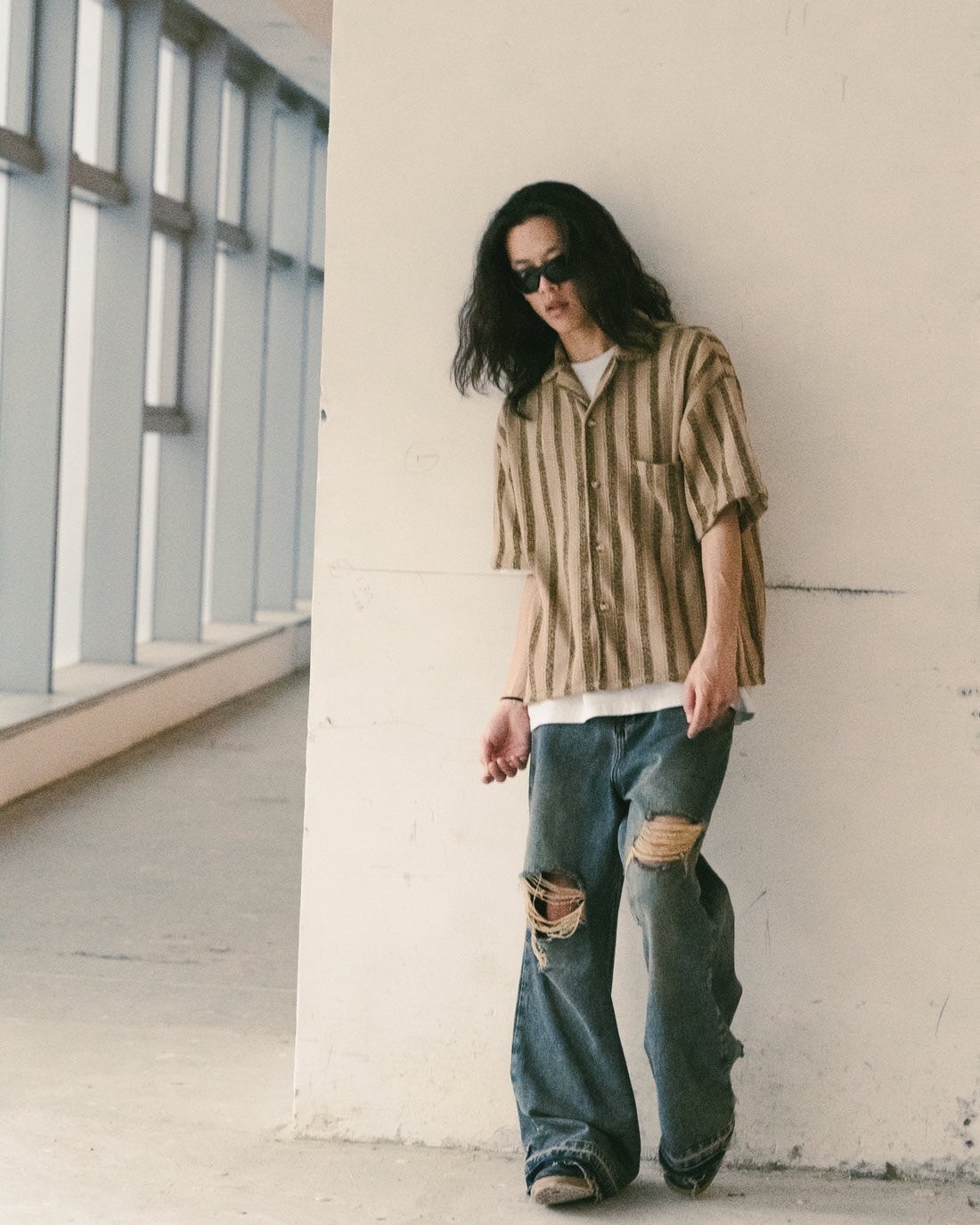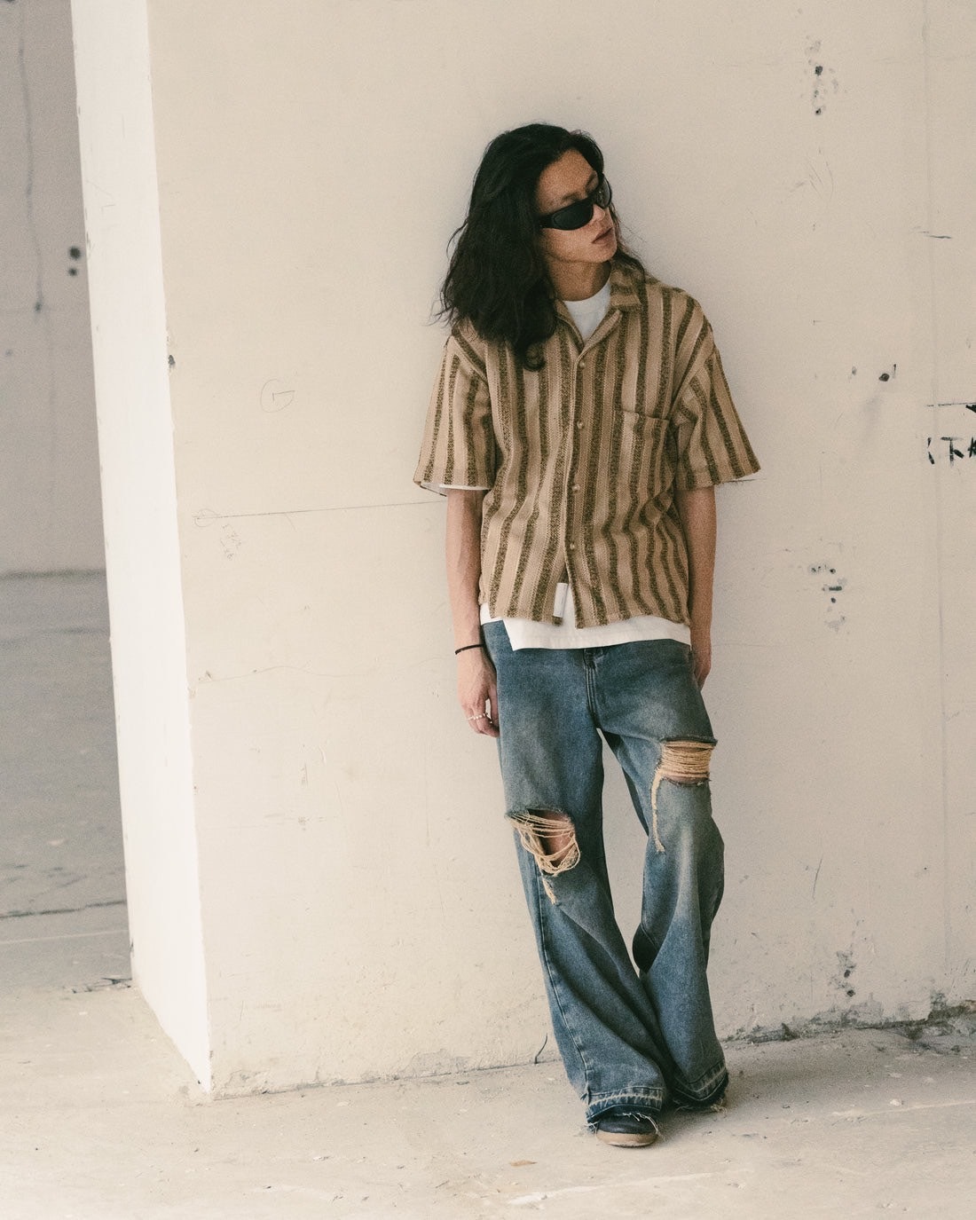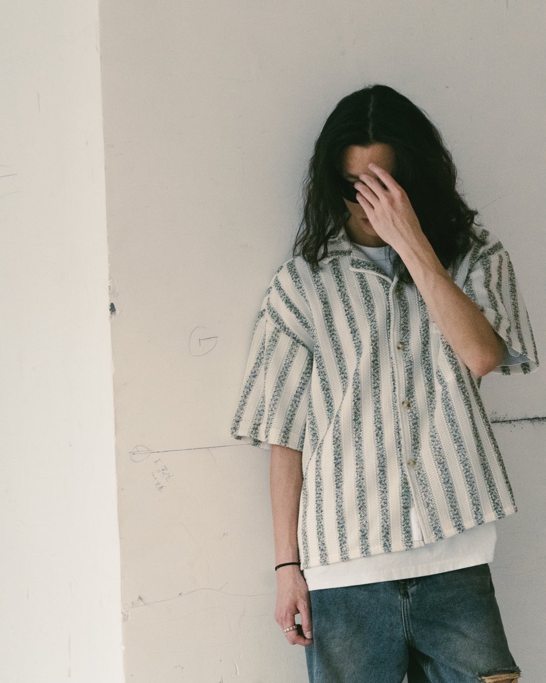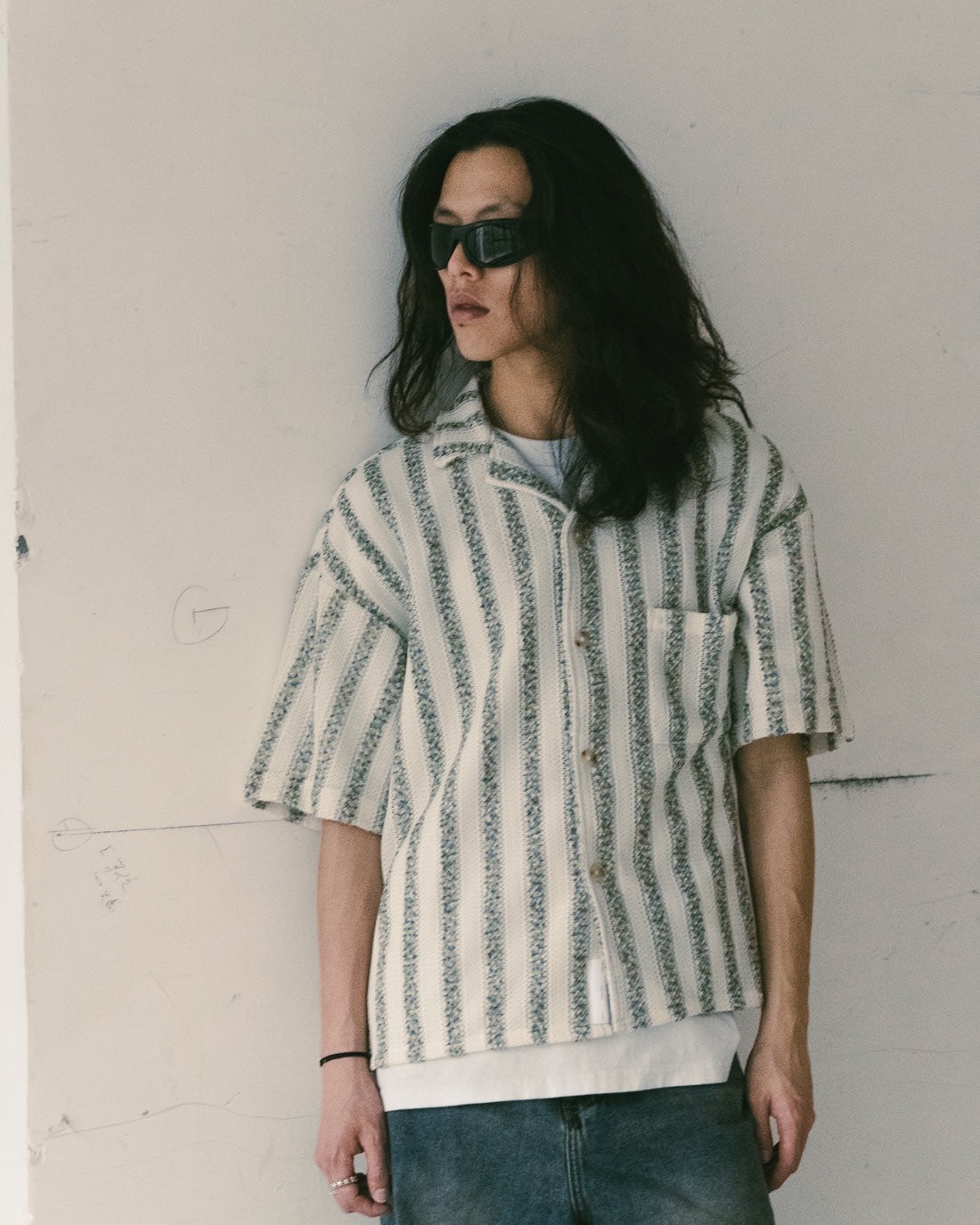 • 直間條紋針織襯衫