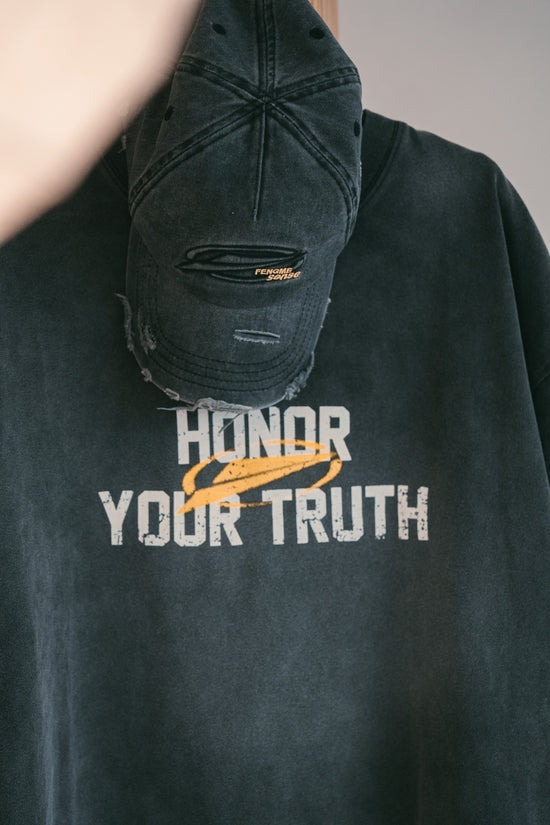 正面立體刺繡 FENGME sense 標誌,側邊繡有 “HONOR YOUR TRUTH” 主題文字。