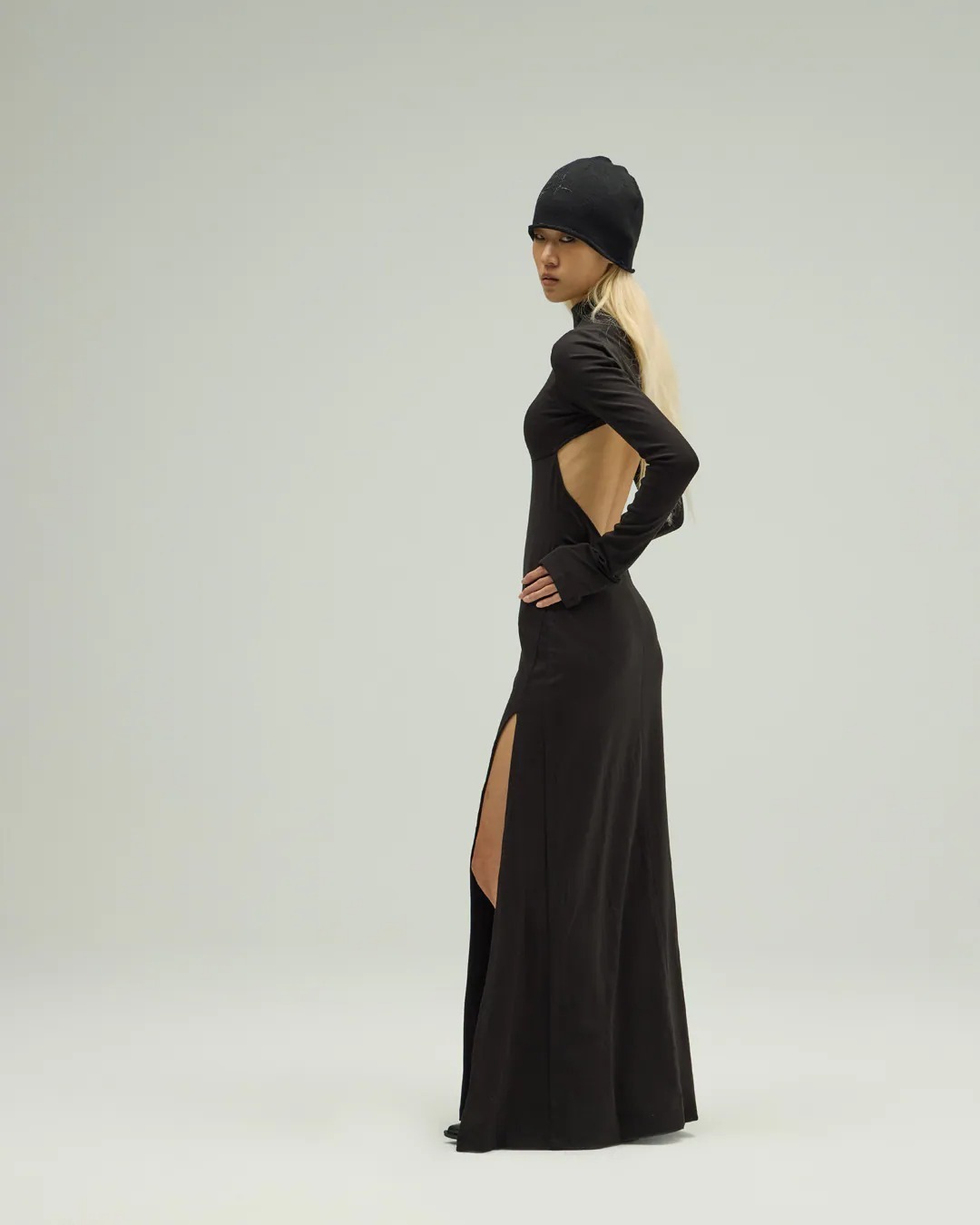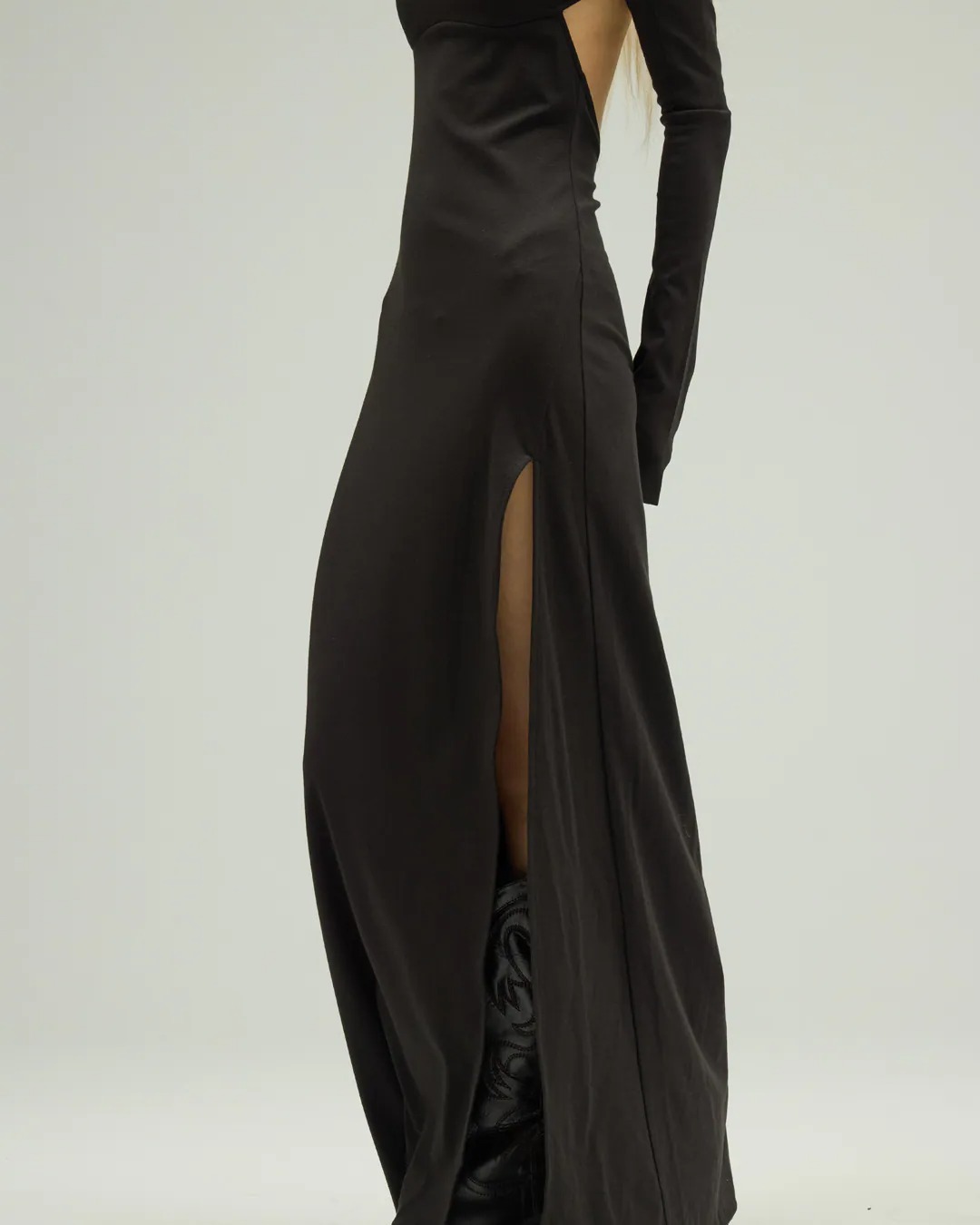 -裙身側邊開高叉設計展露腿部曲線,