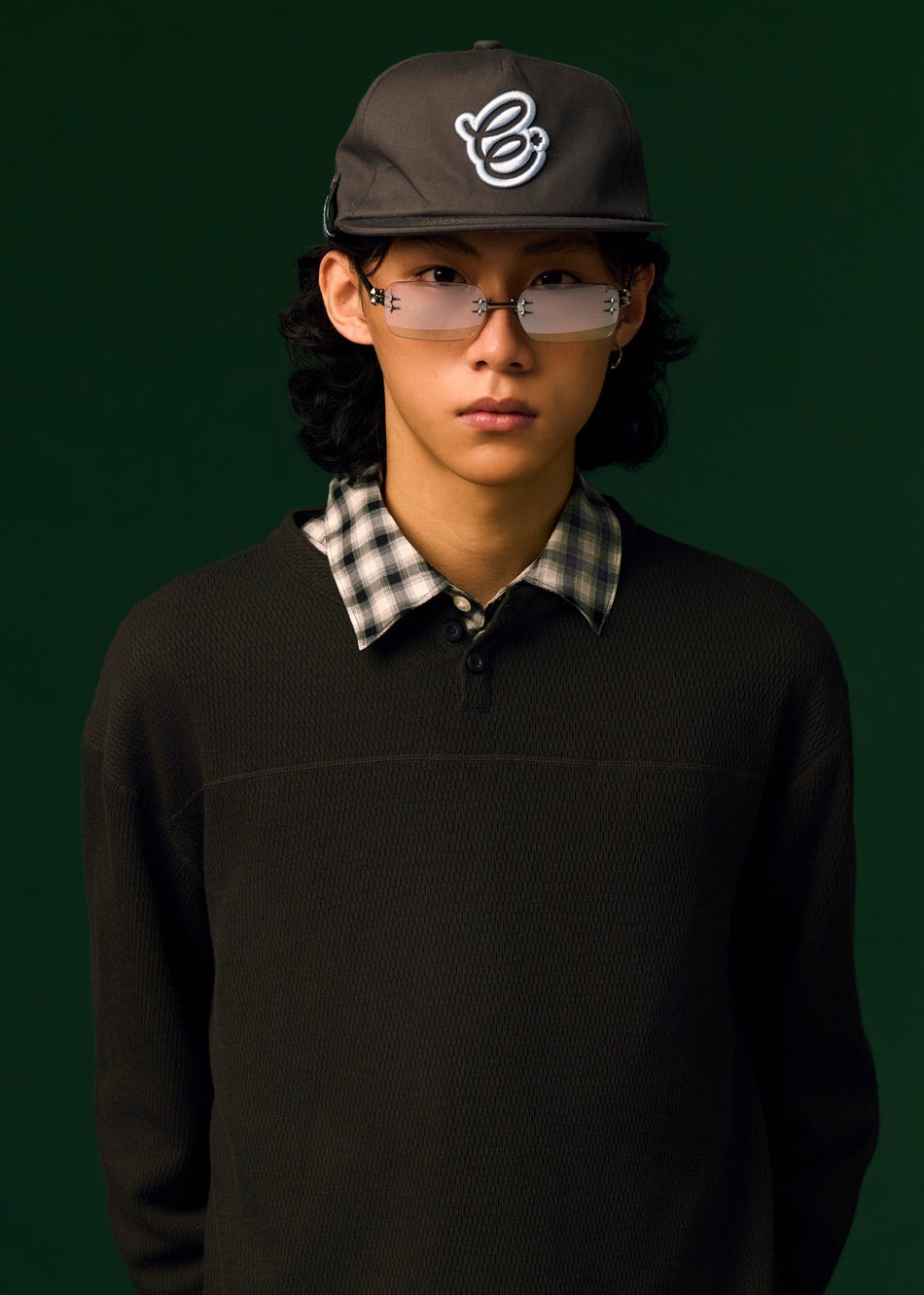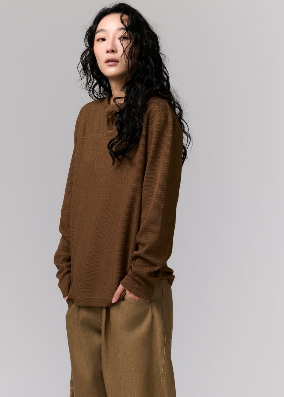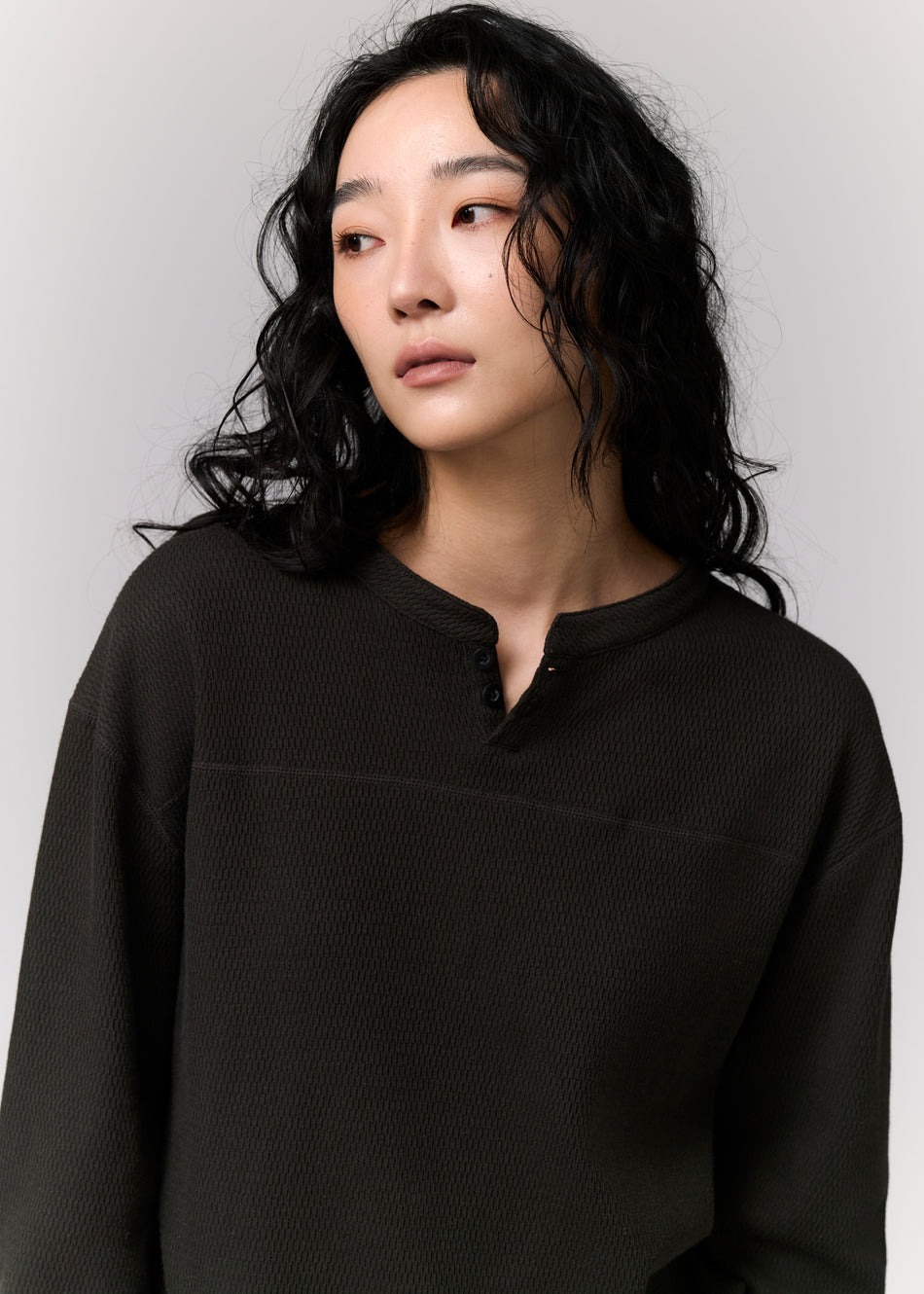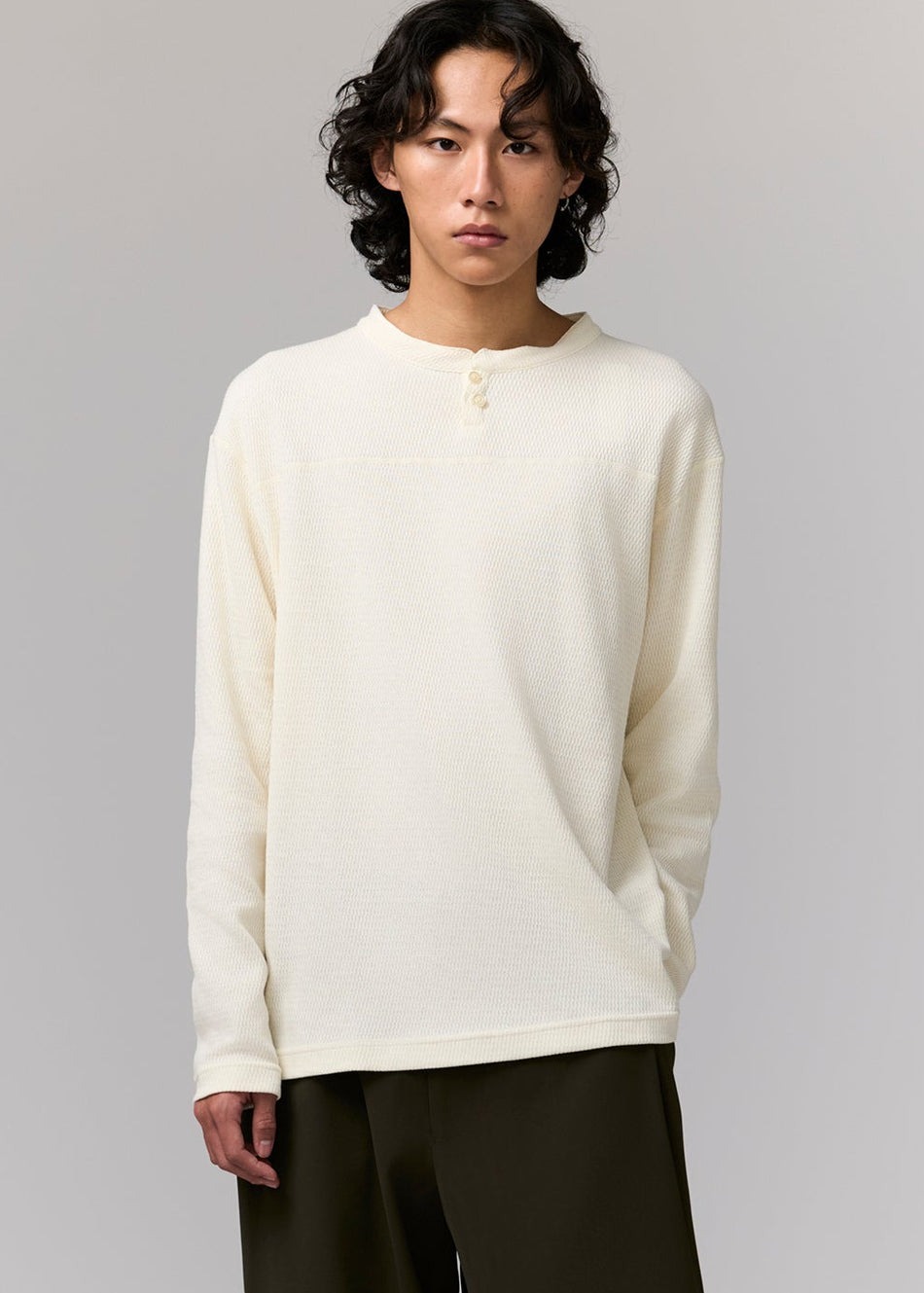 華夫格長袖,合身版型,高品質Supima®棉材質,胸口拼接剪裁設計,經典簡約穿搭。