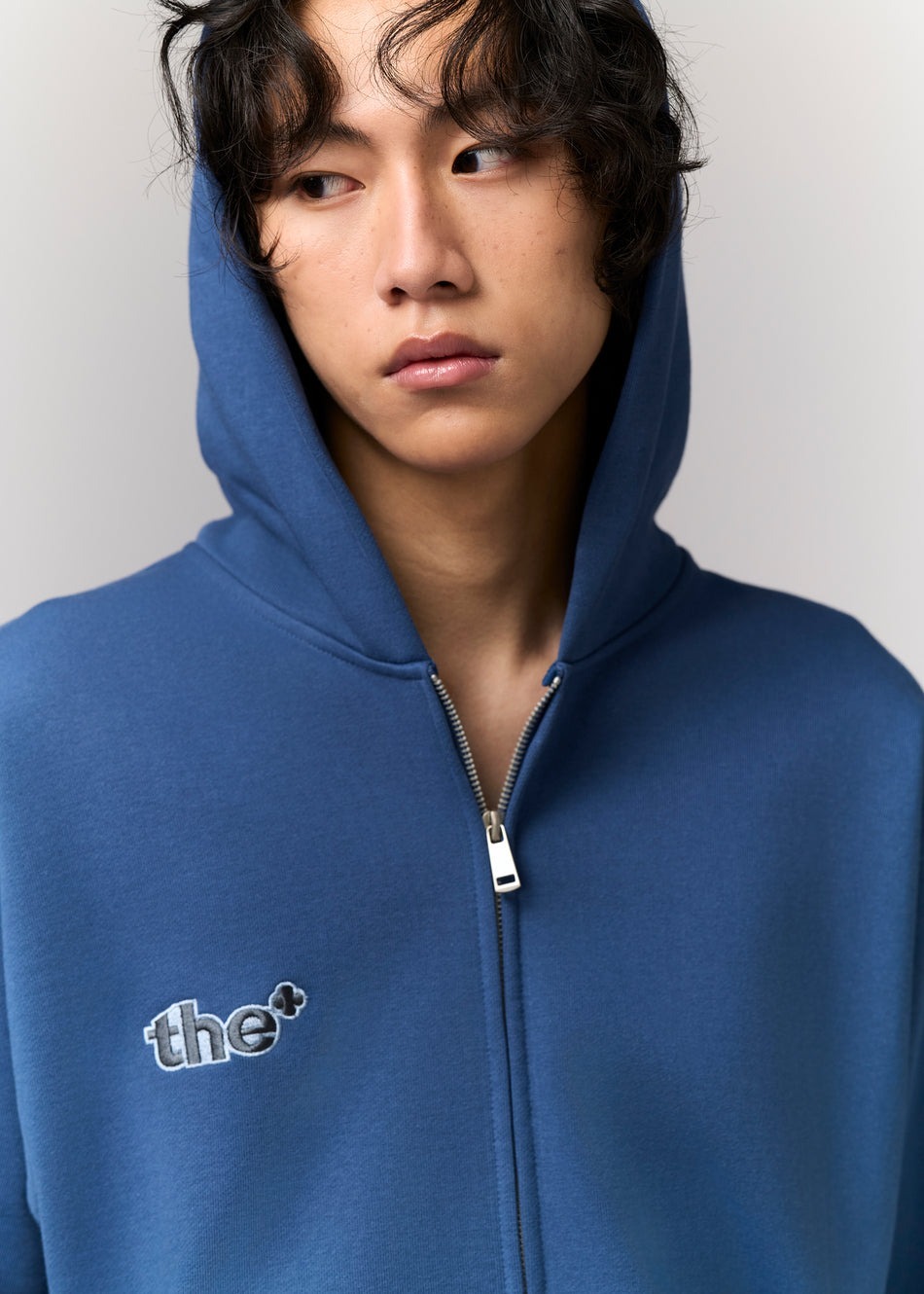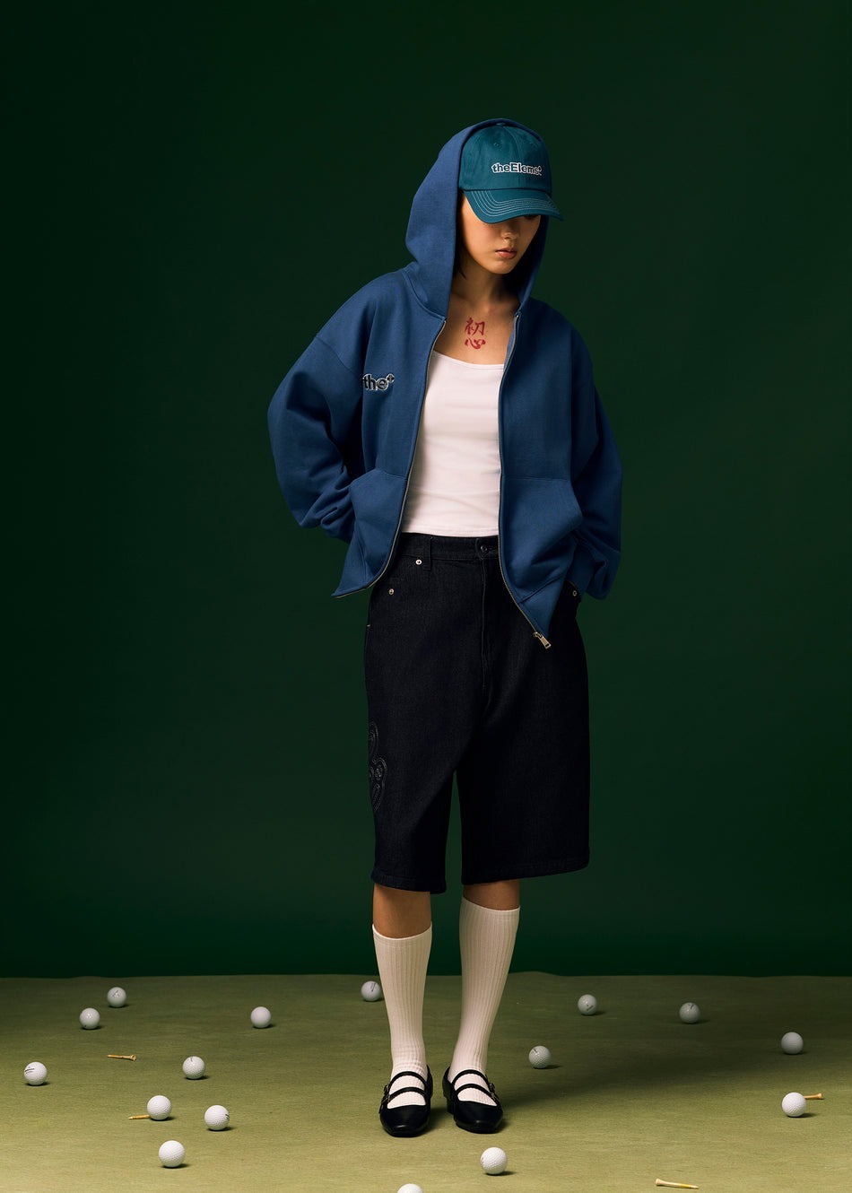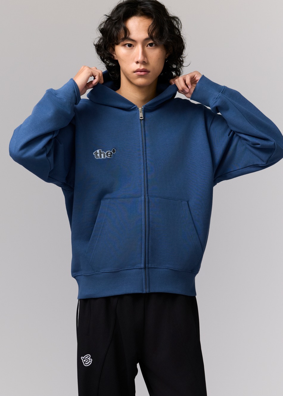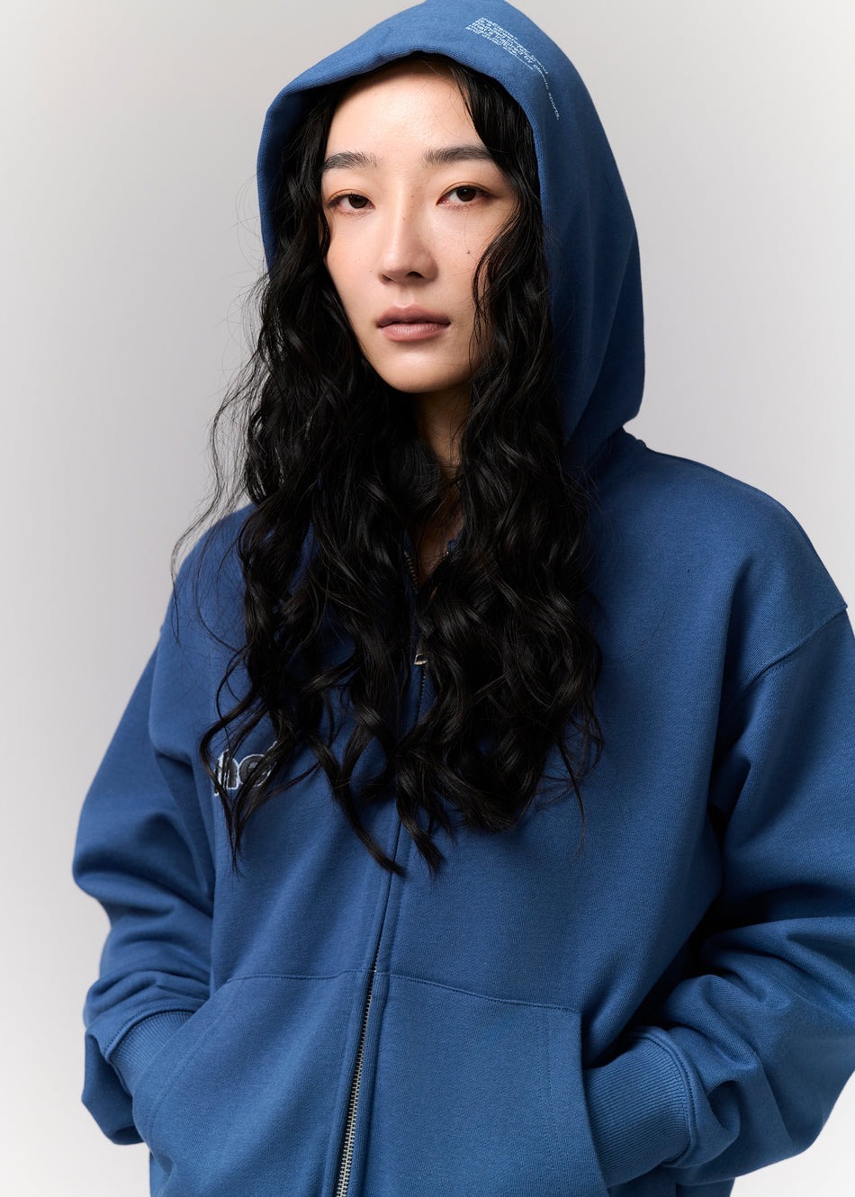 高磅數連帽外套,胸口品牌刺繡、連帽印刷圖案設計,落肩版型。