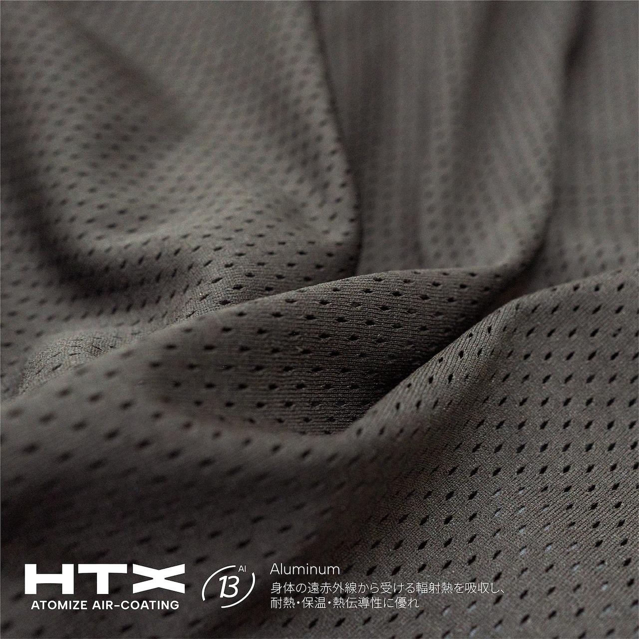 速乾性メッシュライナー、台湾「HTX」社独自の「エア・コーティング技術」により、耐熱・保温・熱伝導性に優れたアルミ金属材料を微粒子化し、生地や繊維表面への密着性を高めています。