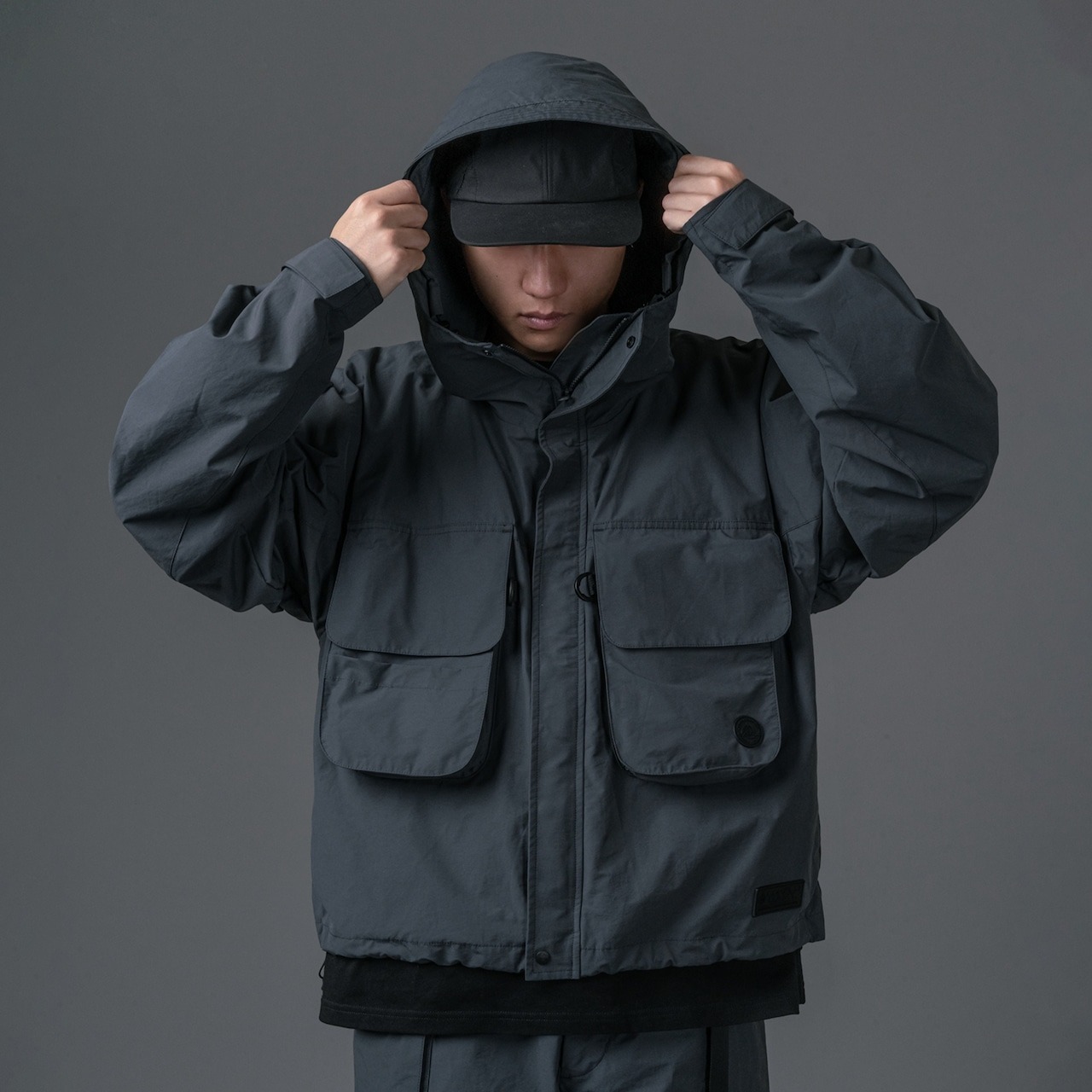 シンプルながらも機能美を感じさせるデザインで、フードや裾のアジャスターにより、スタイルのアレンジを楽しむことができます。