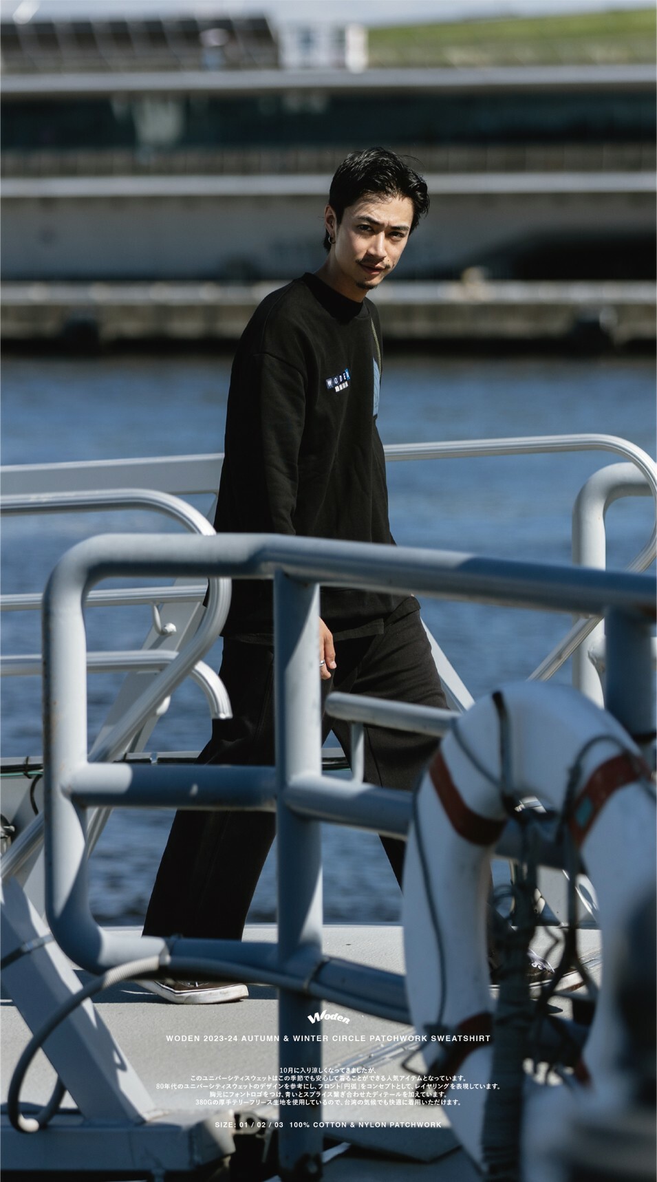 80年代のユニバーシティスウェットのデザインを参考にし、フロント「円弧」をコンセプトとして、レイヤリングを表現しています。