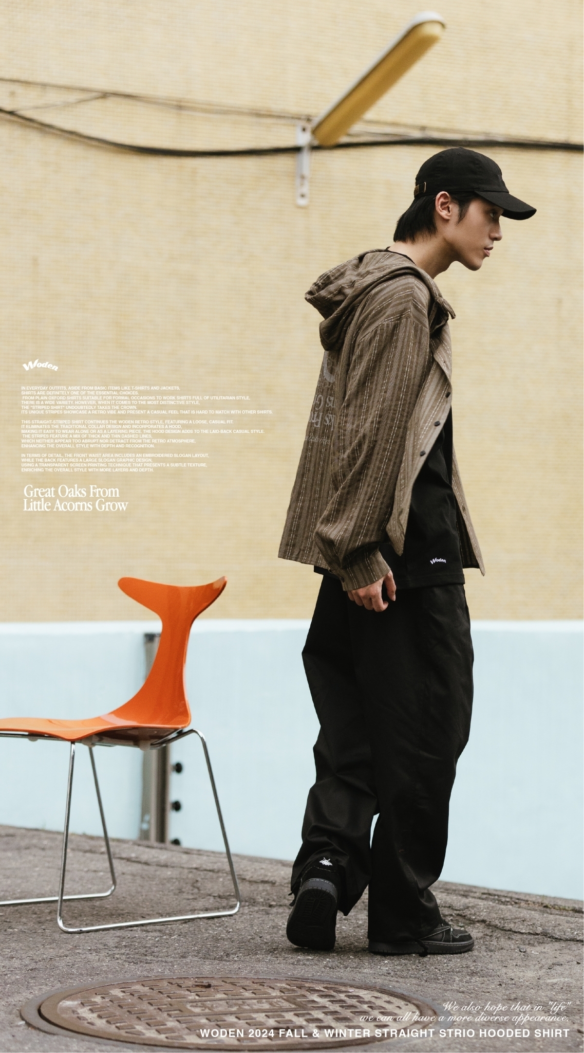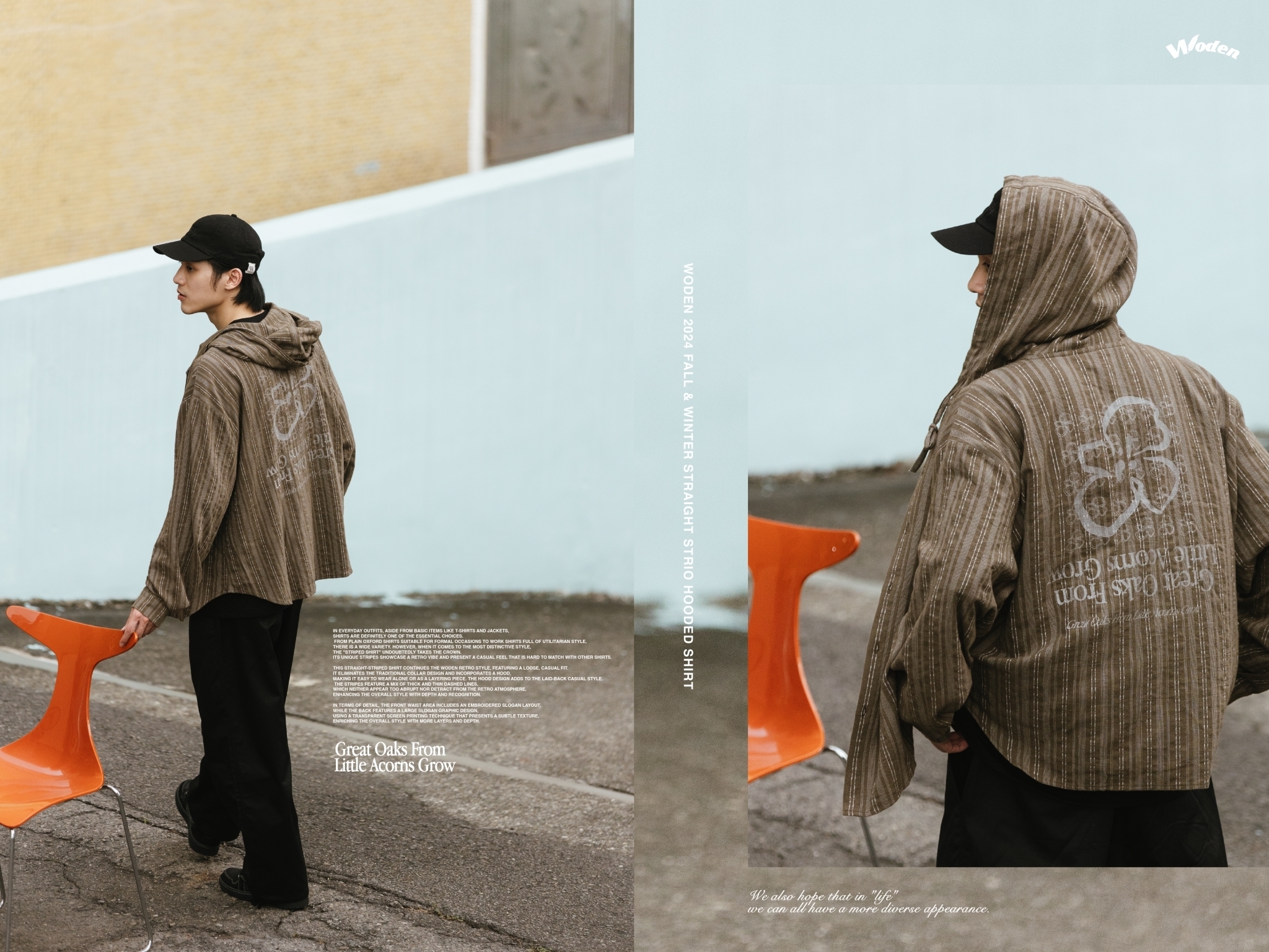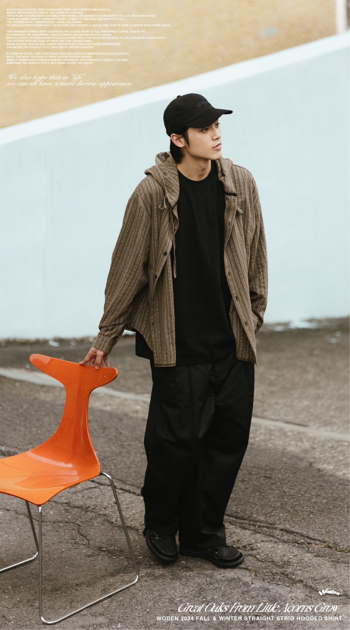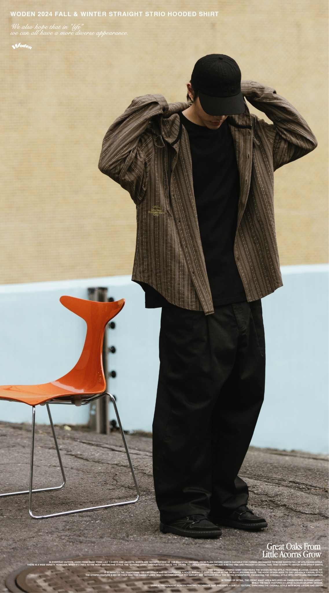 WODEN 2024 Fall & Winter 023 Straight Strio Hooded Shirt