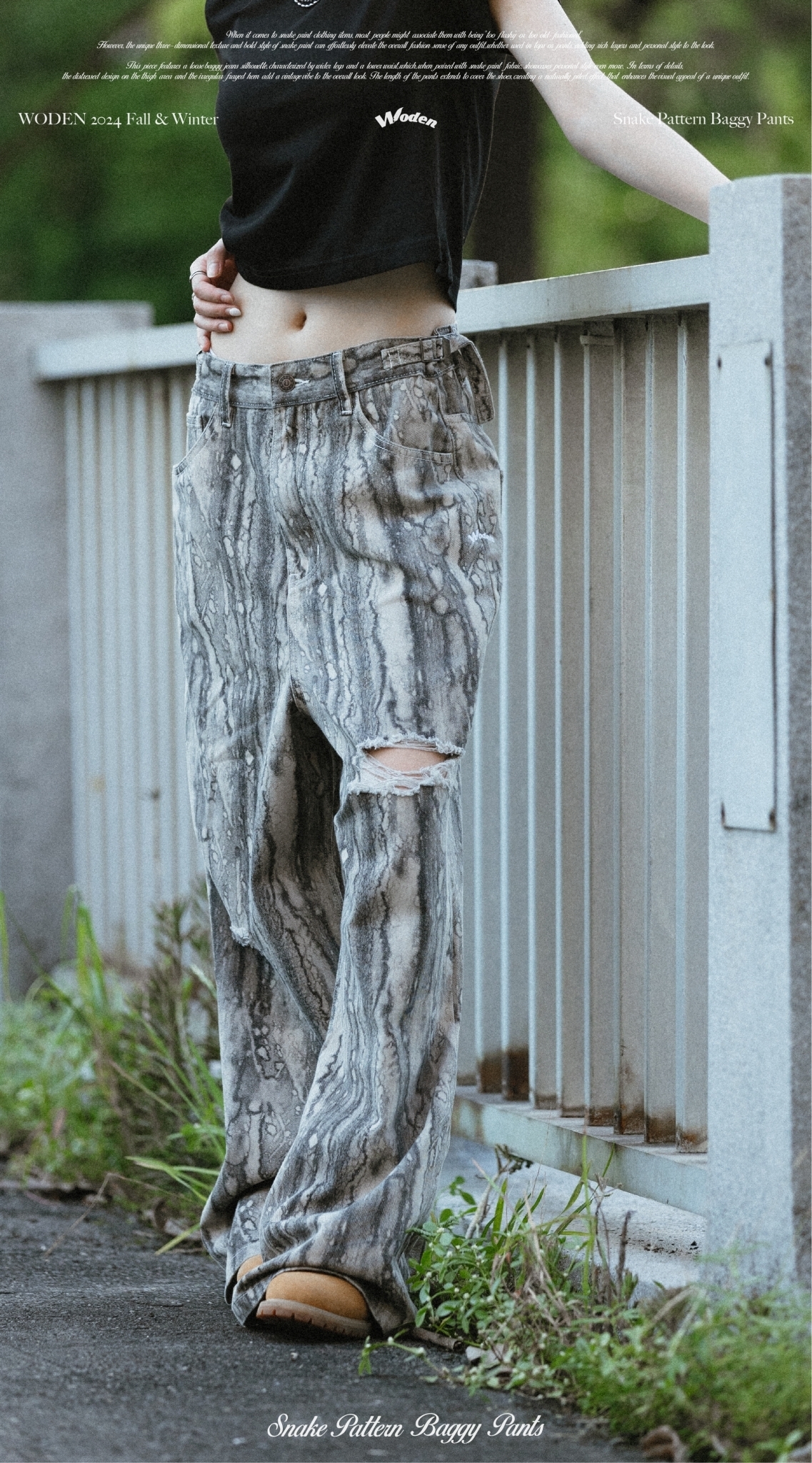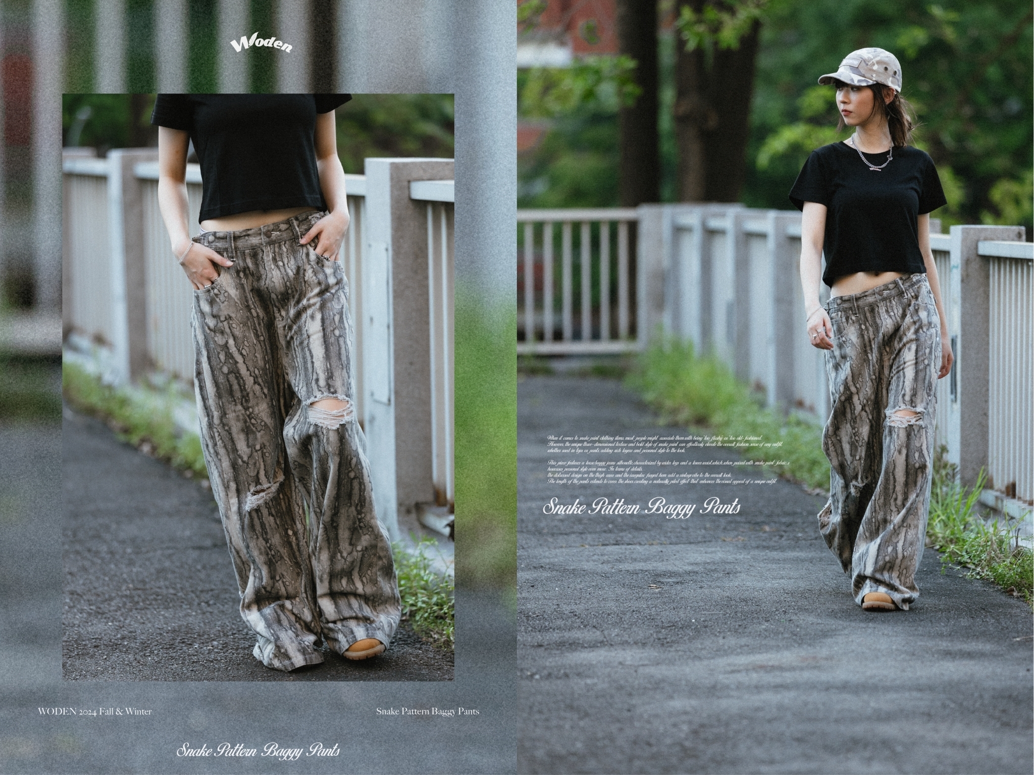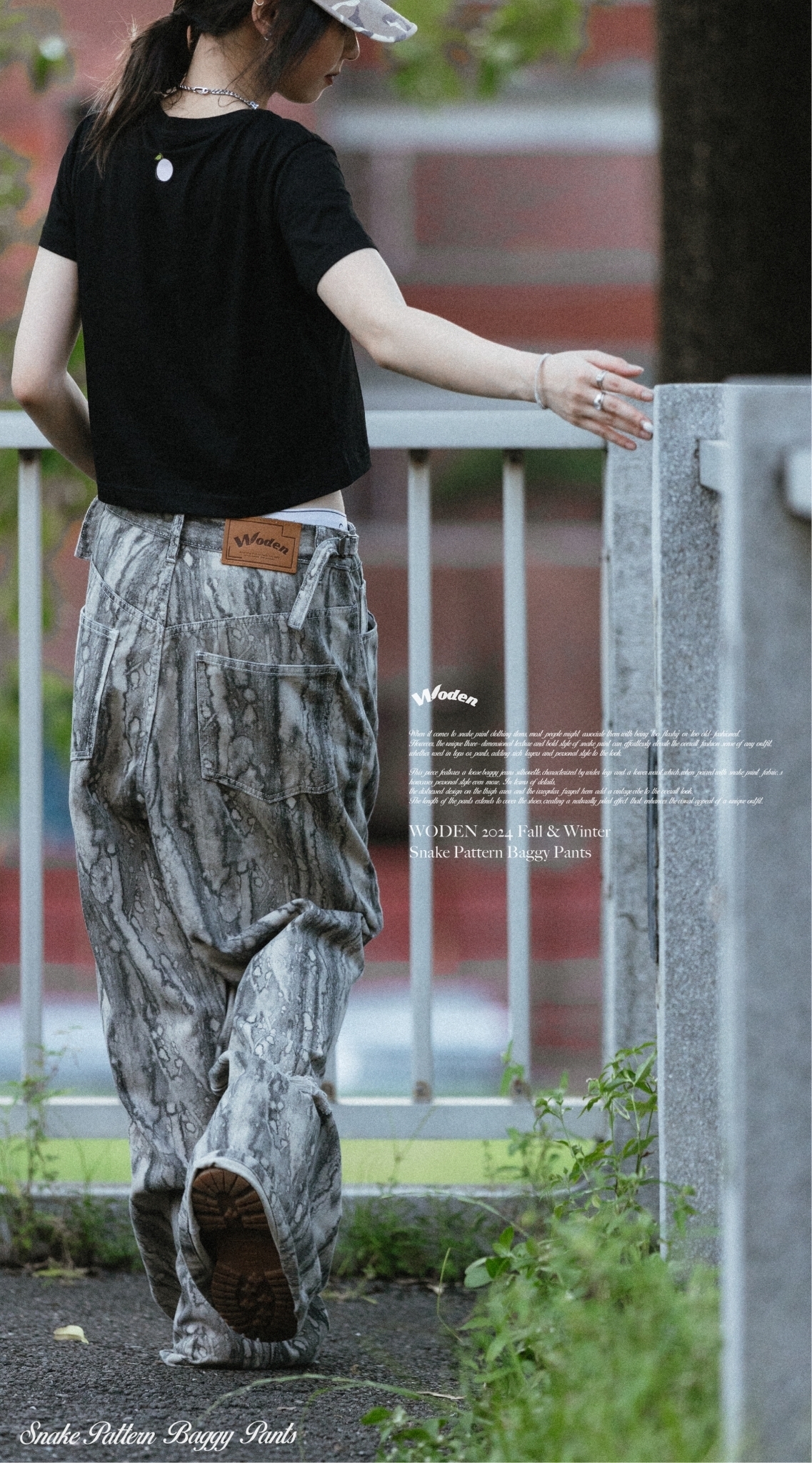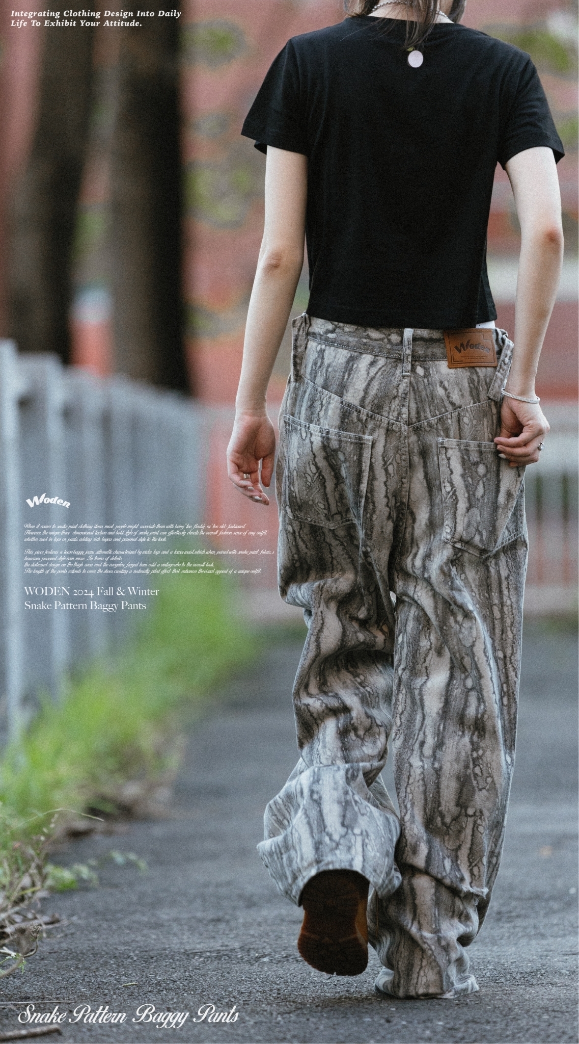 WODEN 2024 Fall & Winter 030 Snake Pattern Baggy Pants