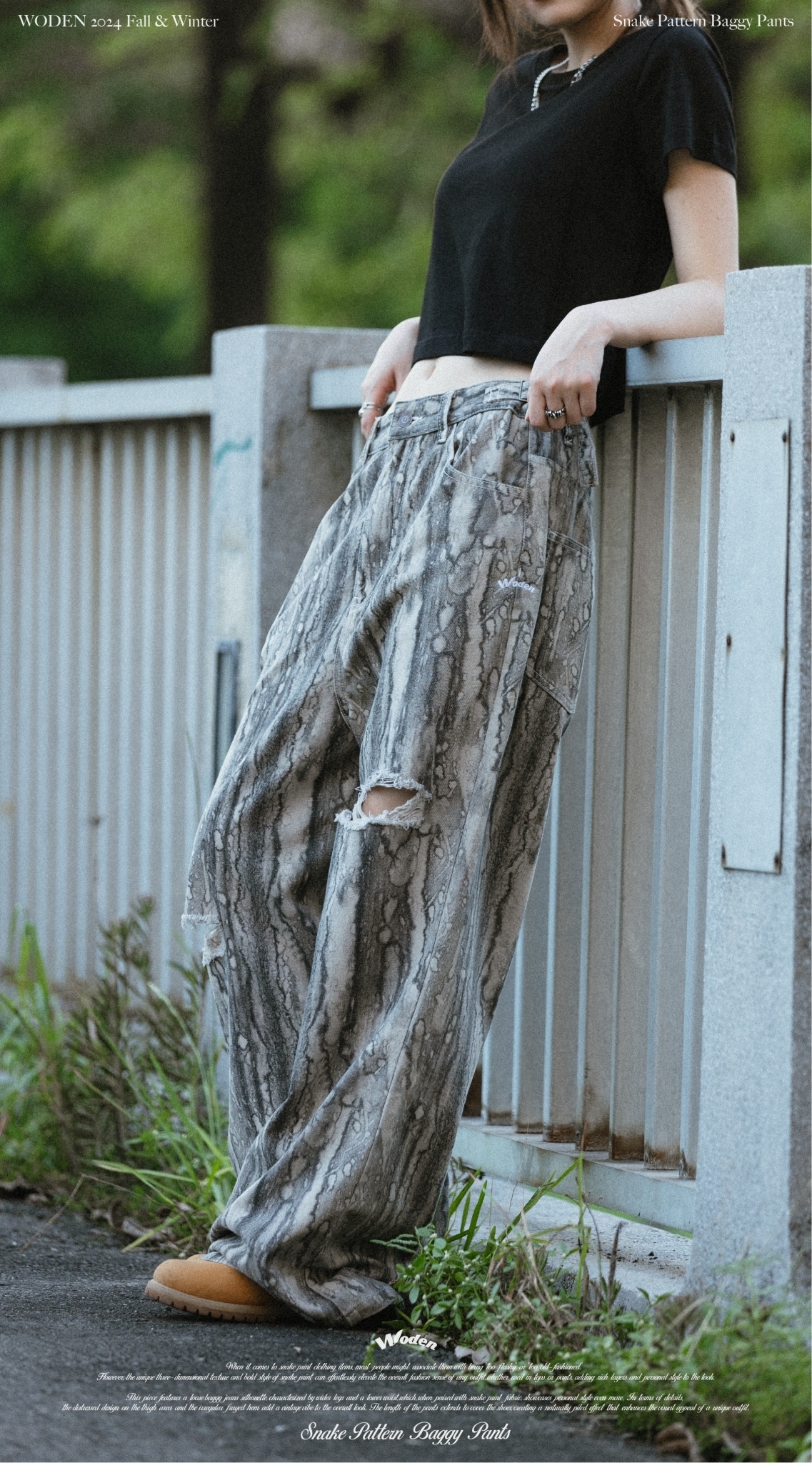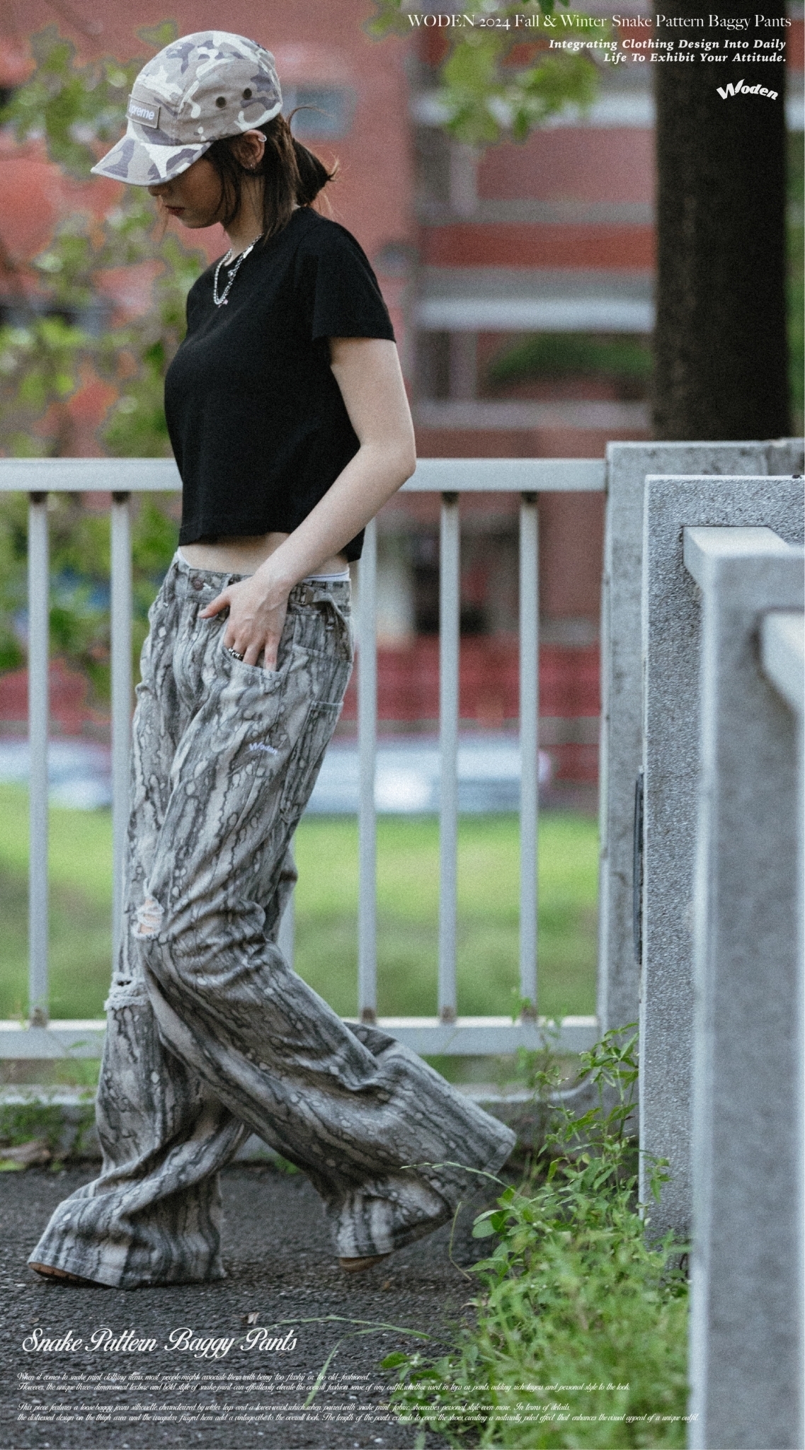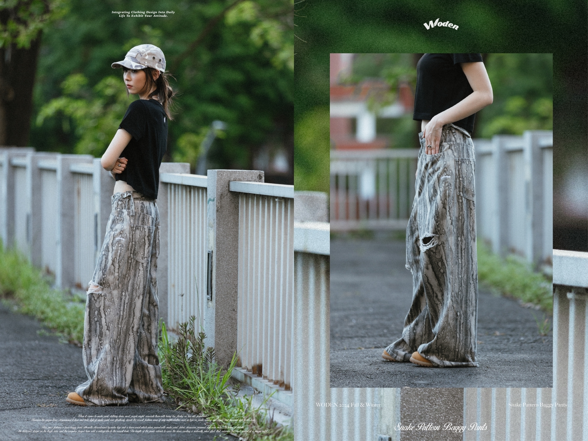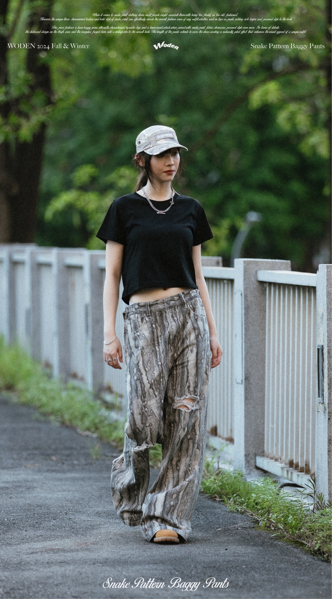 WODEN 2024 Fall & Winter 030 Snake Pattern Baggy Pants
