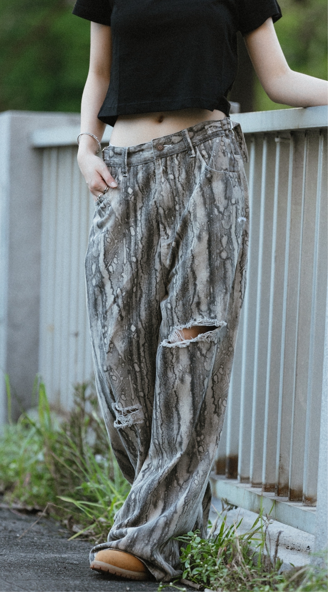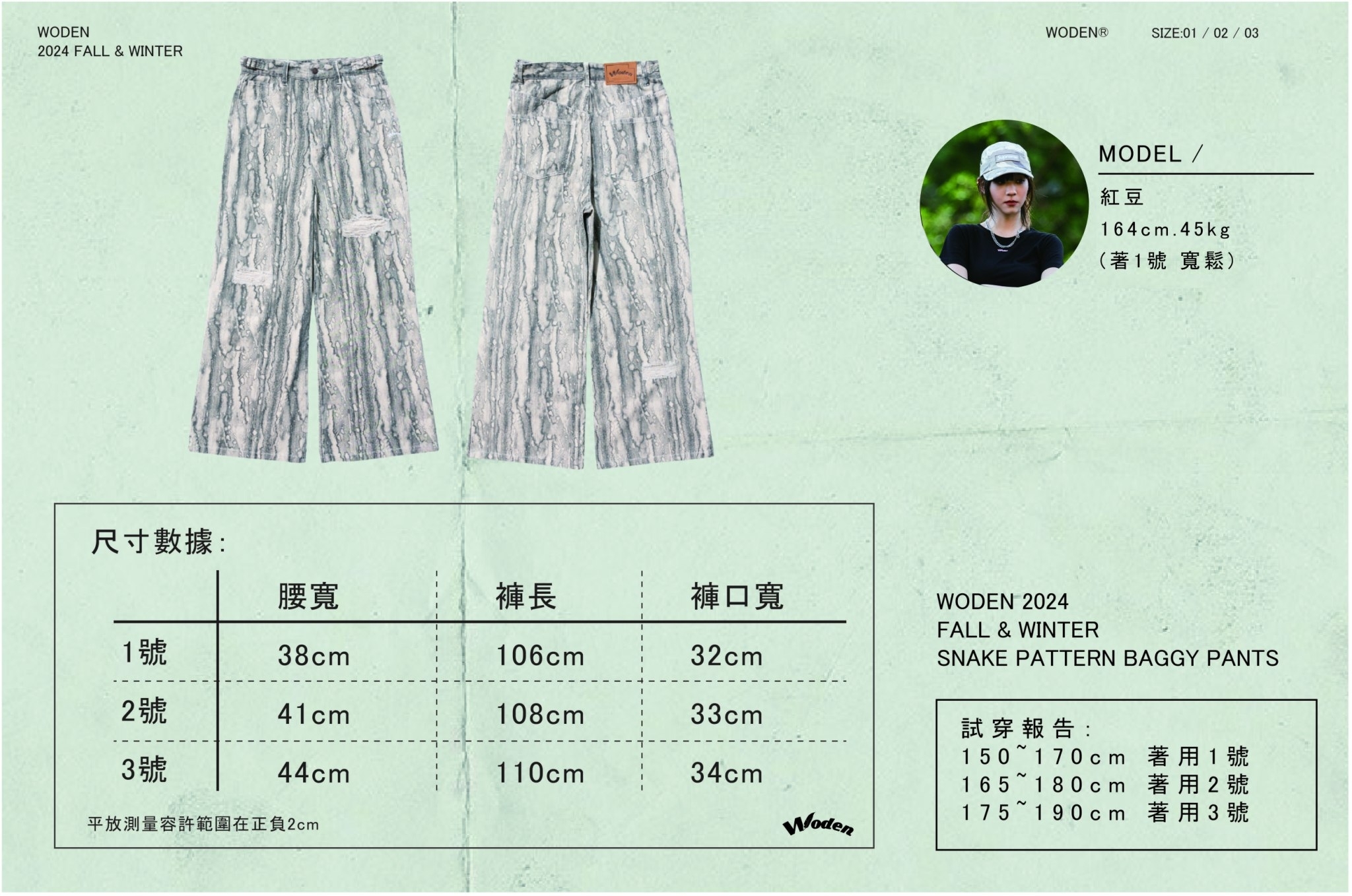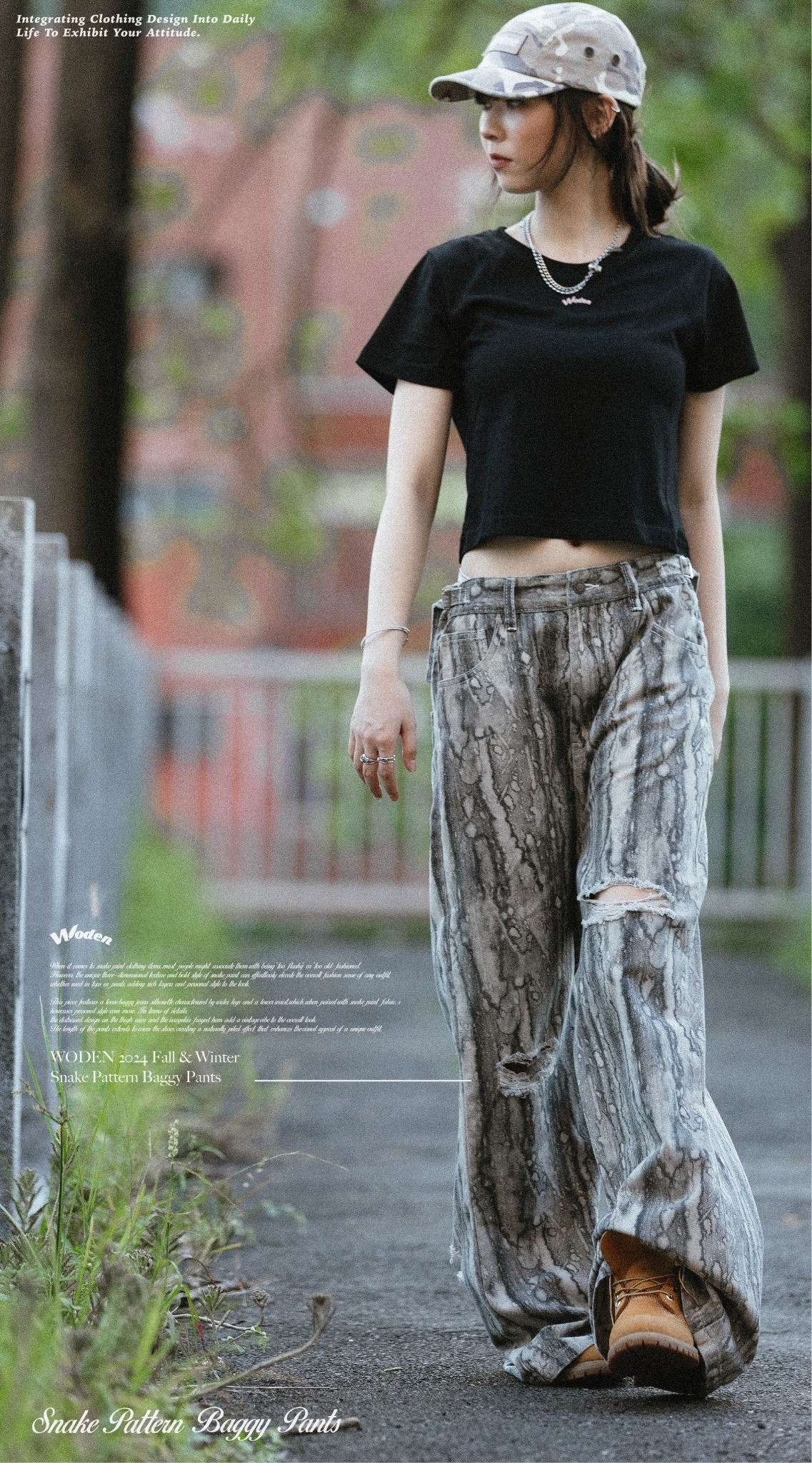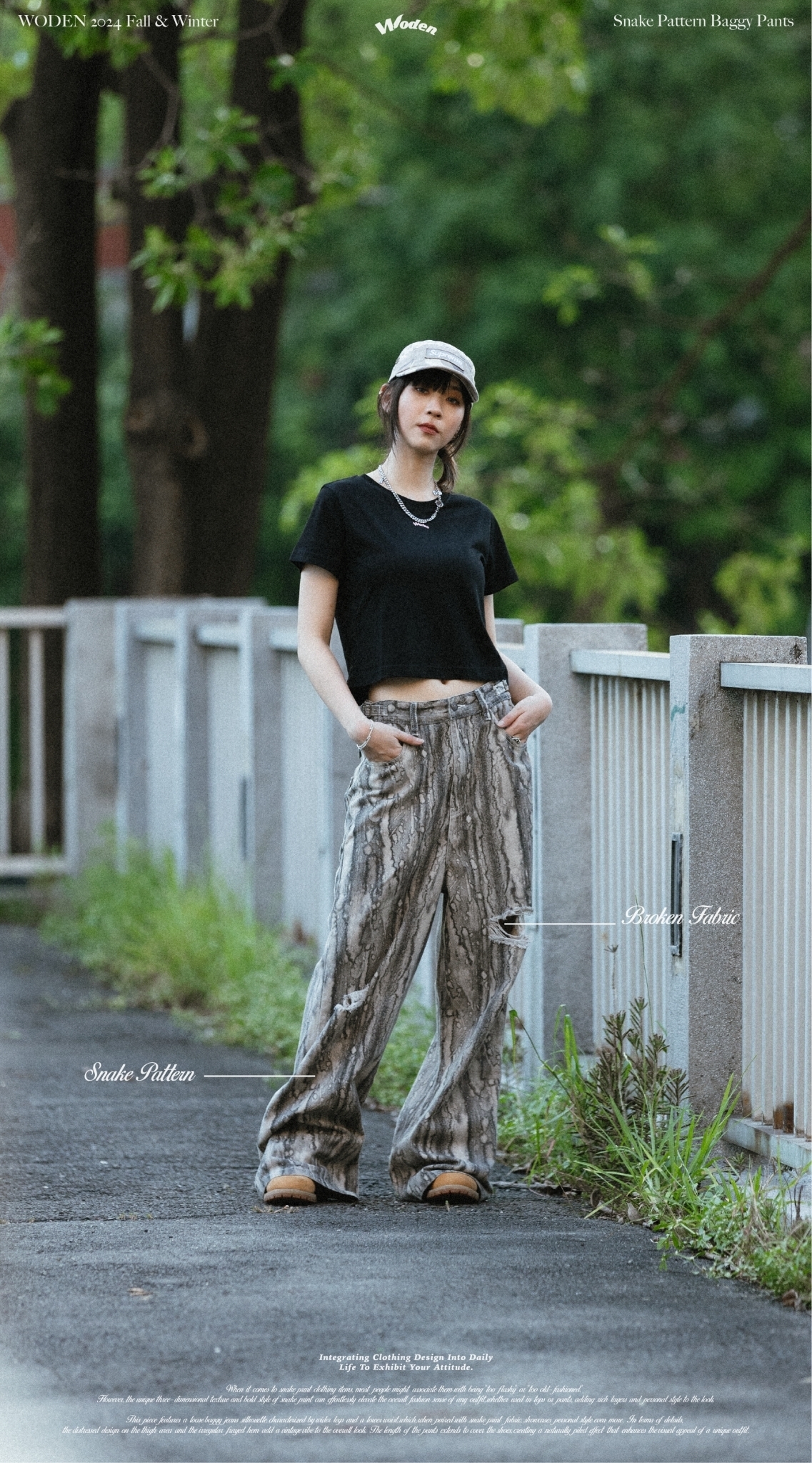 WODEN 2024 Fall & Winter 030 Snake Pattern Baggy Pants