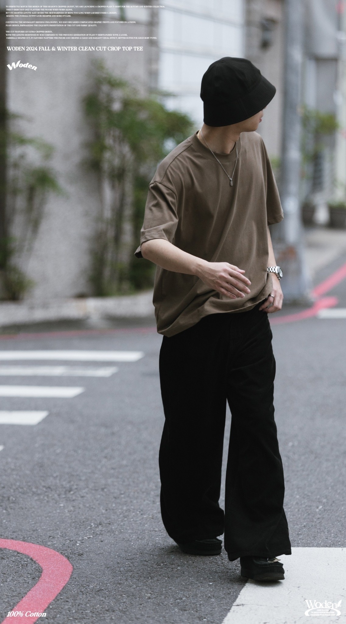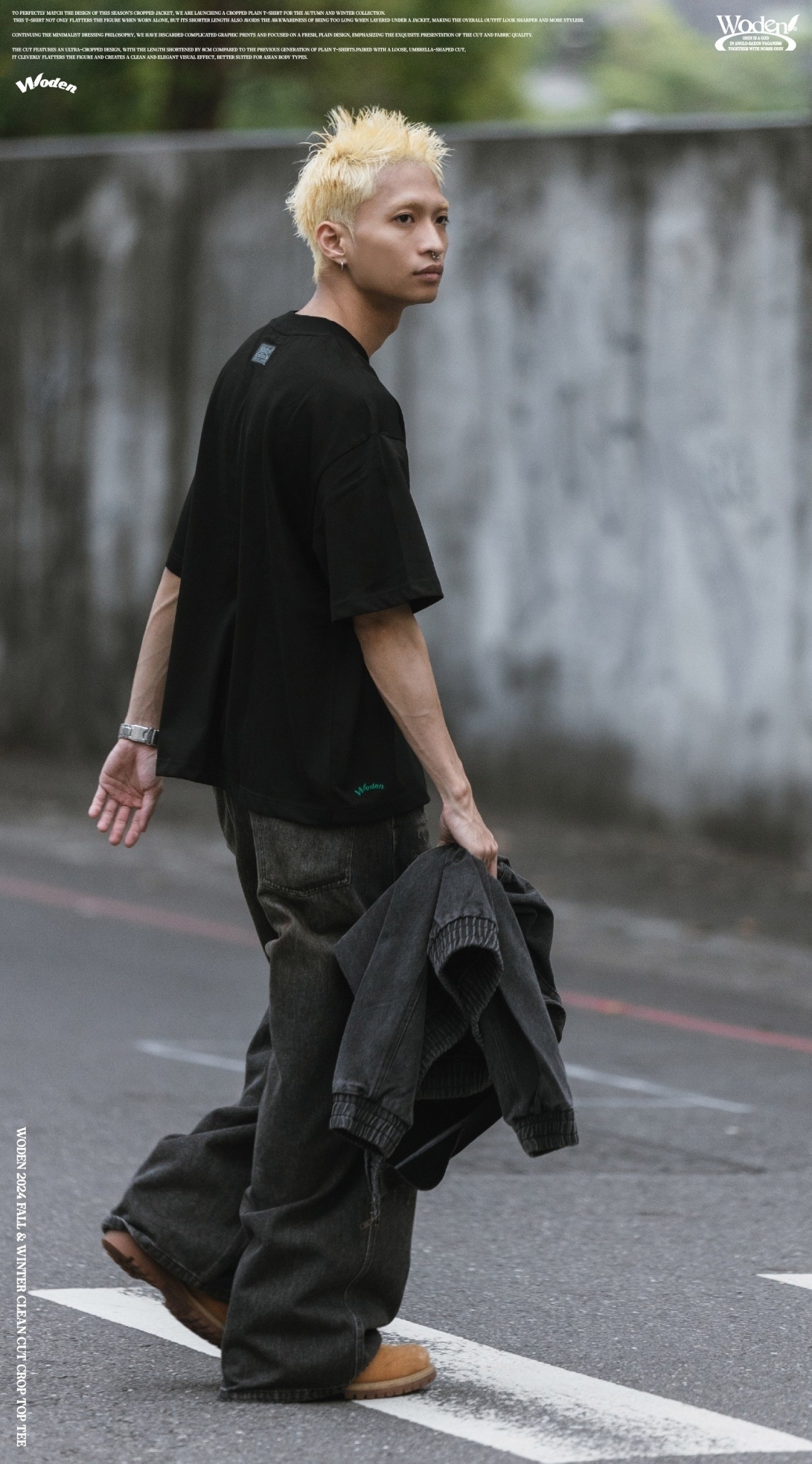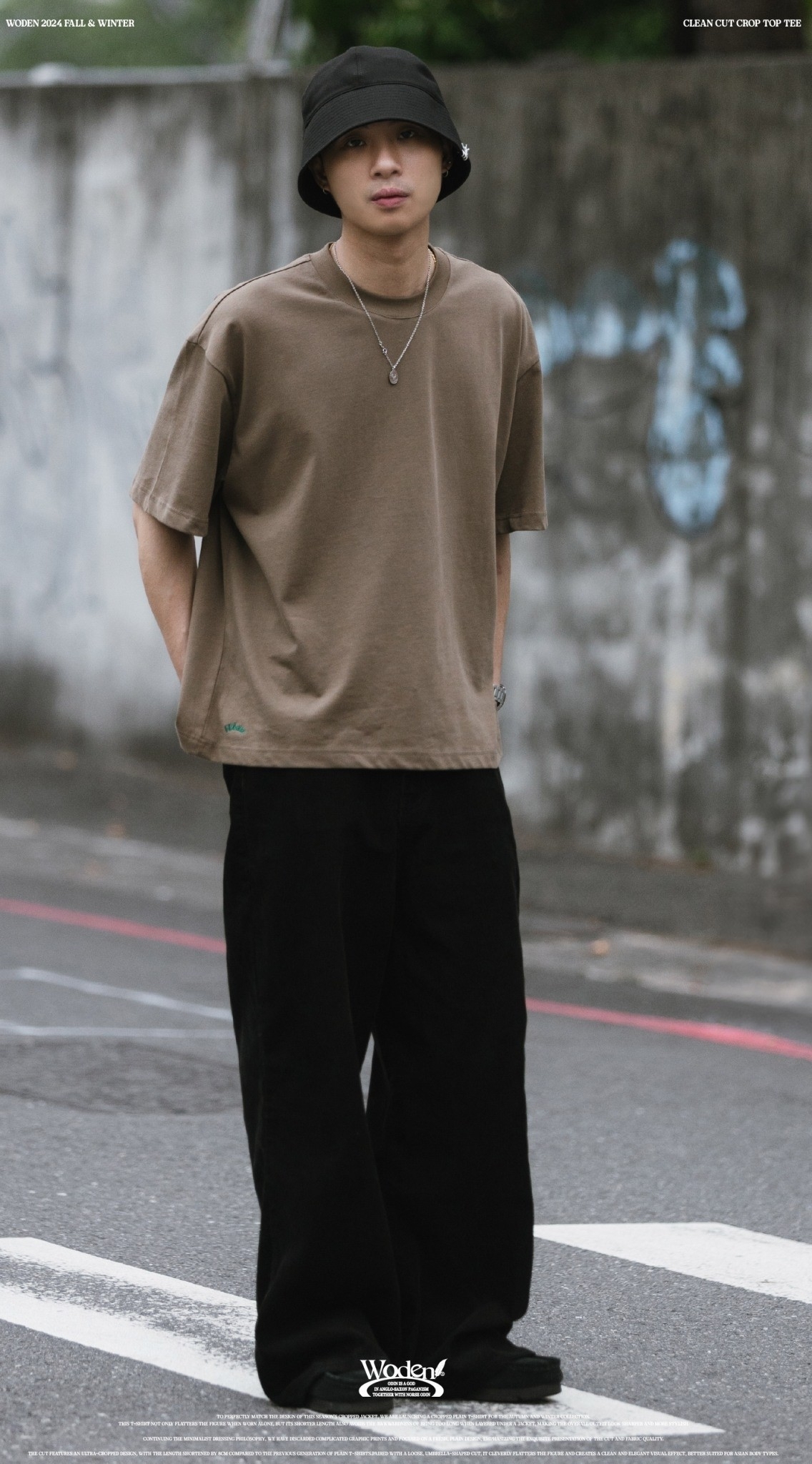 為了完美搭配本季寬短版外套設計,本次特別於秋冬推出寬短版素面 T-Shirt,不僅單穿時能修飾身形,在作為外套內搭時,短版的衣長避免了因過長而顯得突兀的問題,讓整體穿搭更加俐落有型。