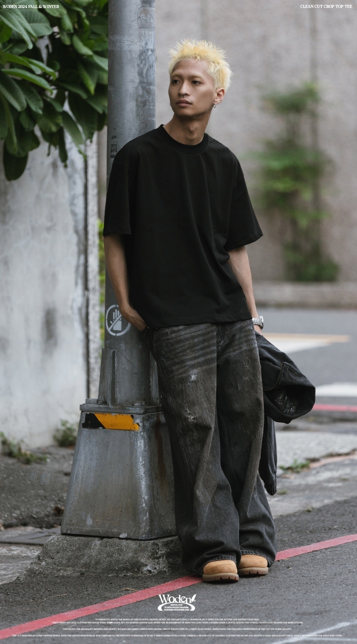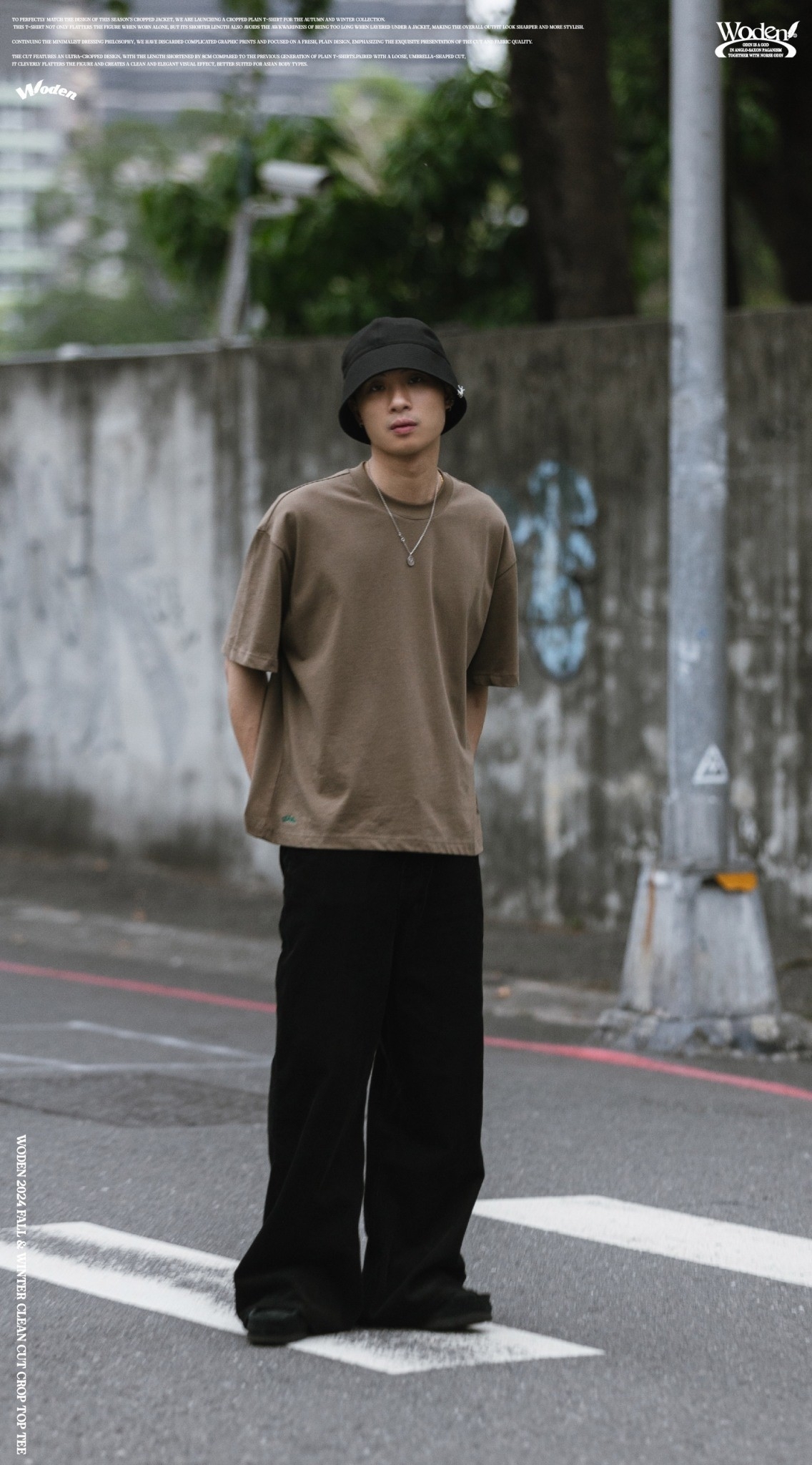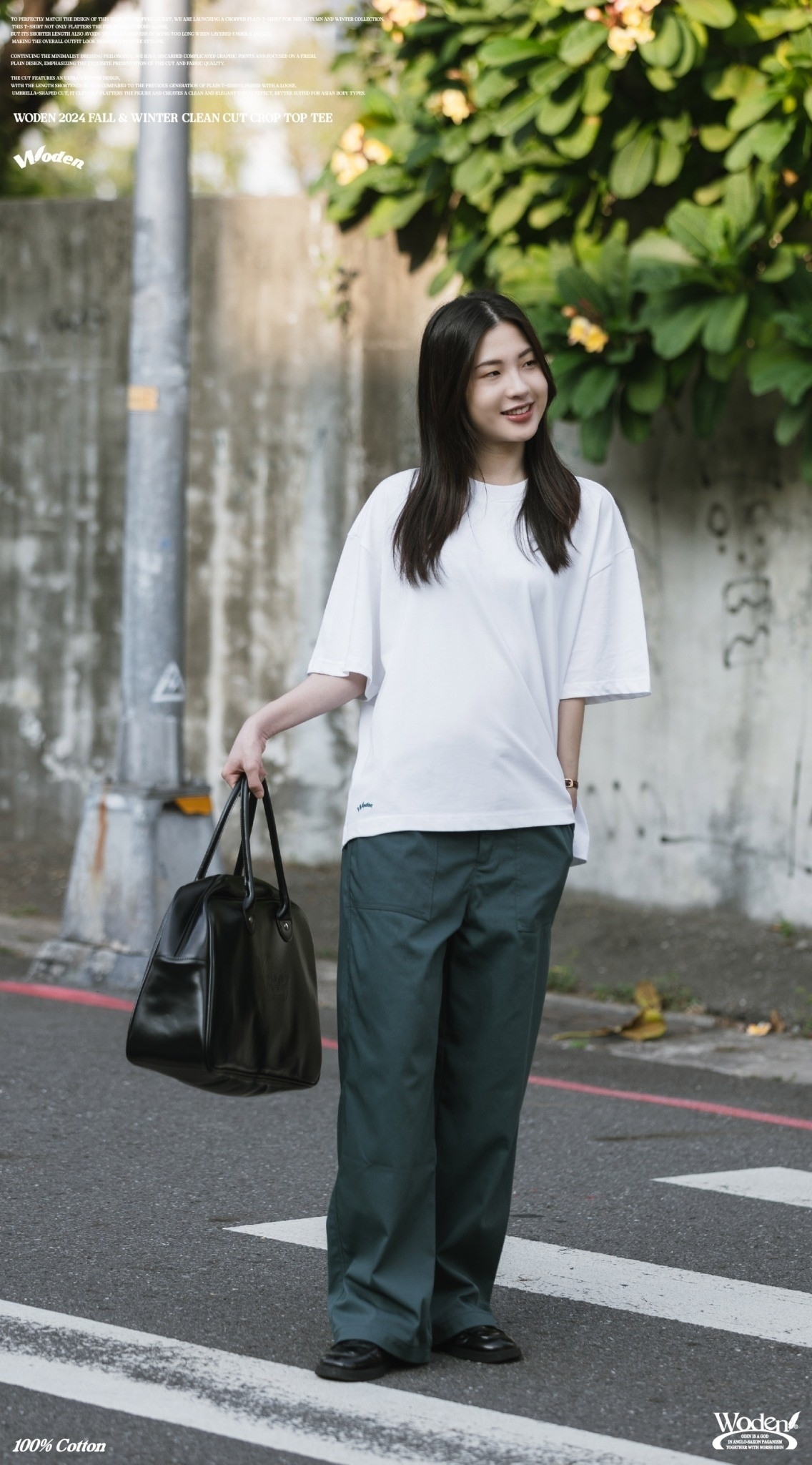 為了完美搭配本季寬短版外套設計,本次特別於秋冬推出寬短版素面 T-Shirt,不僅單穿時能修飾身形,在作為外套內搭時,短版的衣長避免了因過長而顯得突兀的問題,讓整體穿搭更加俐落有型。