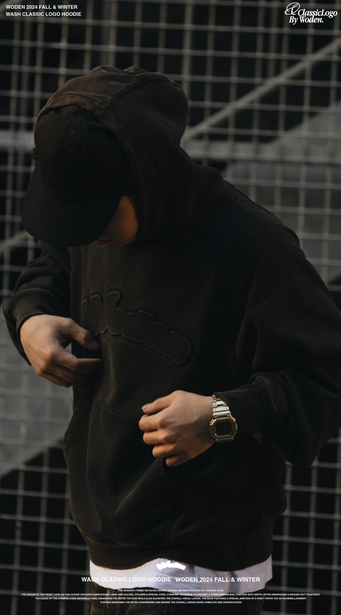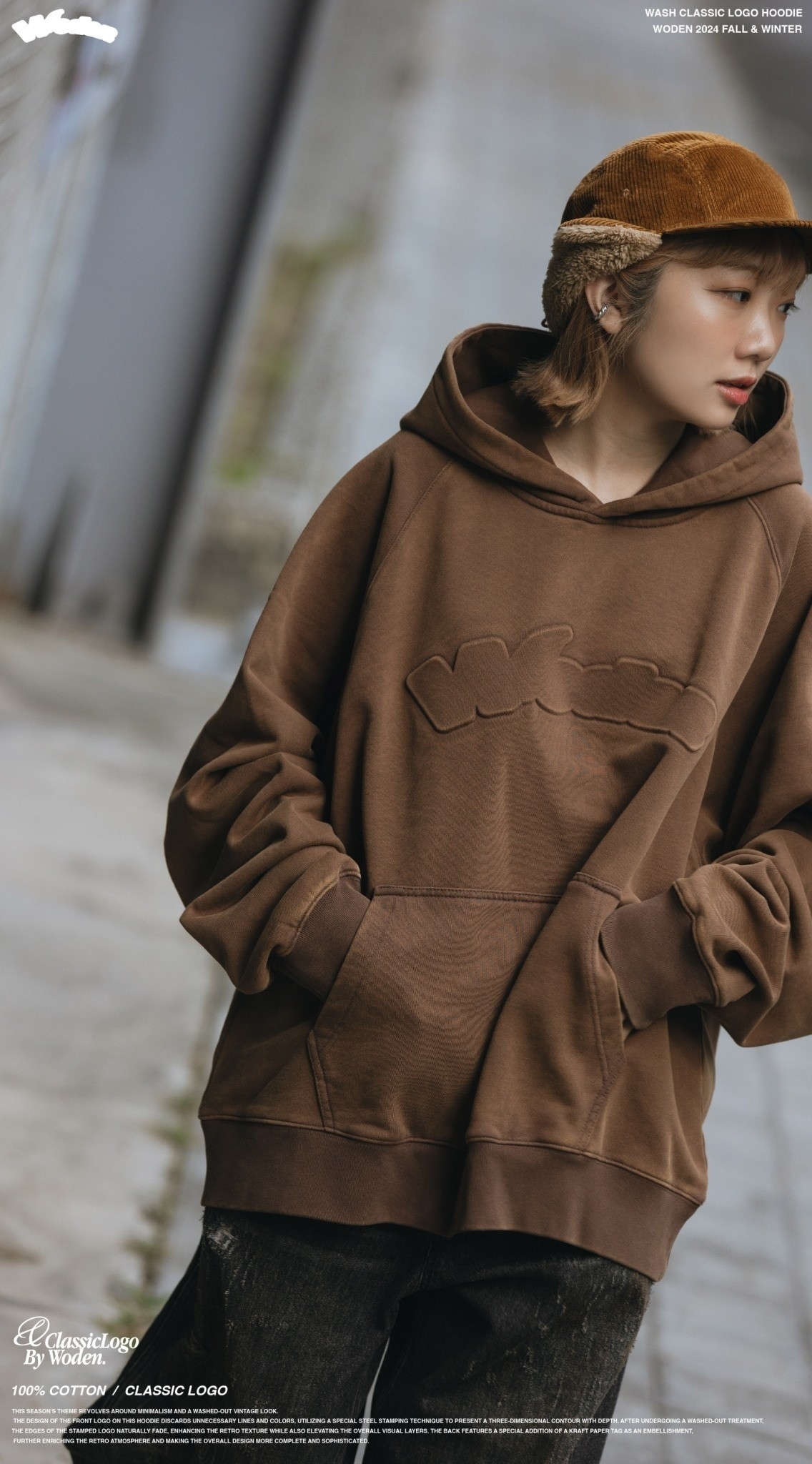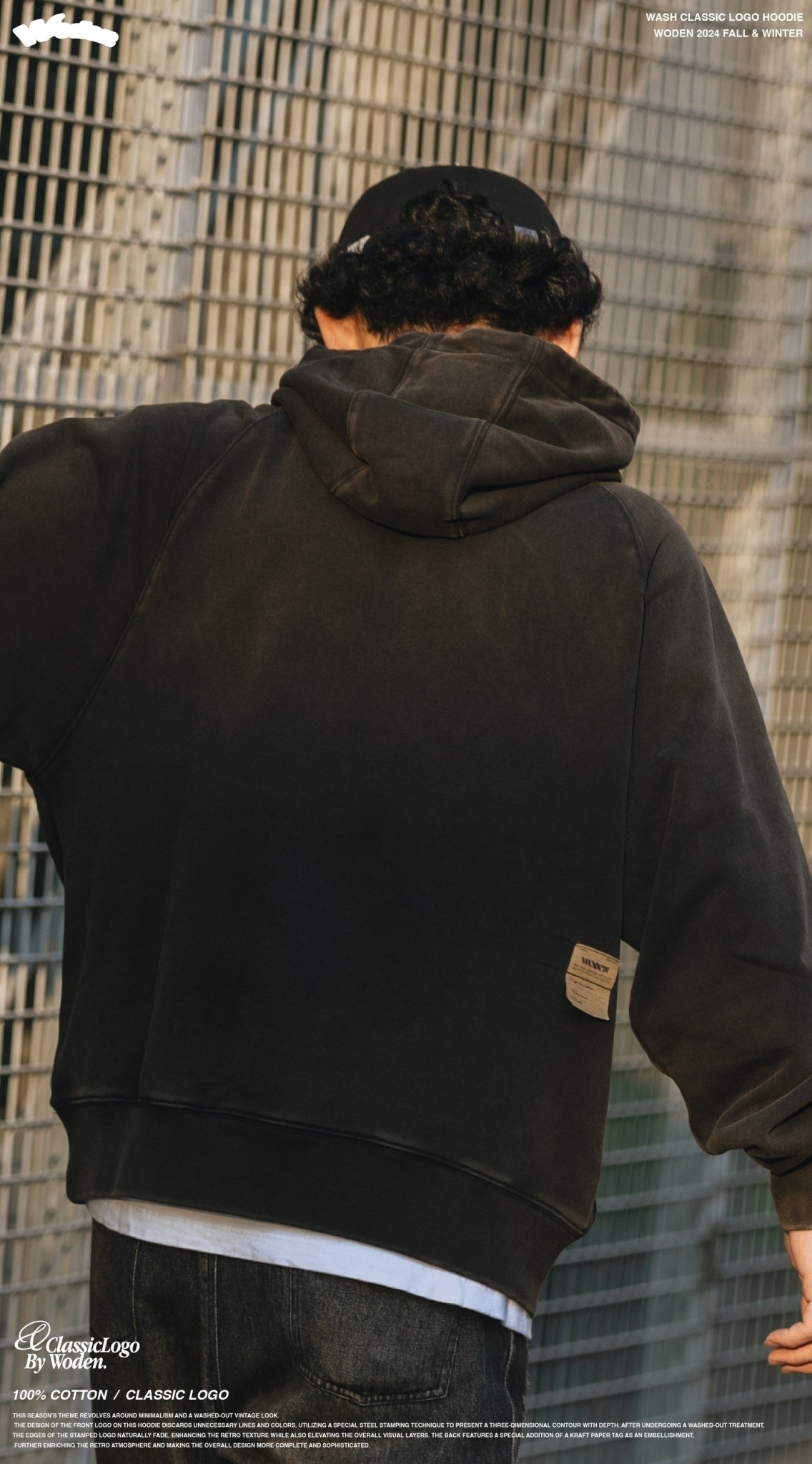 WODEN 2024 Fall & Winter Wash Classic LOGO Hoodie