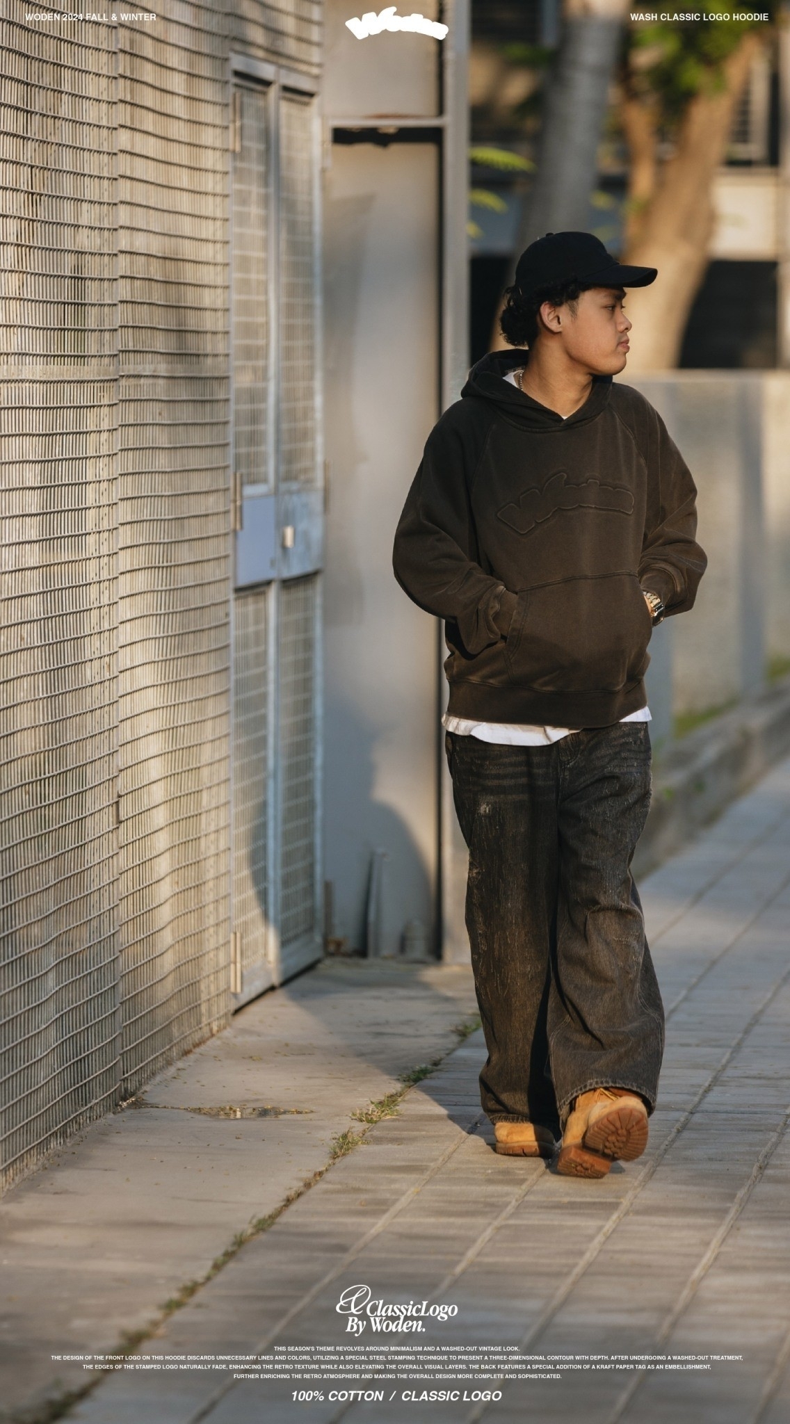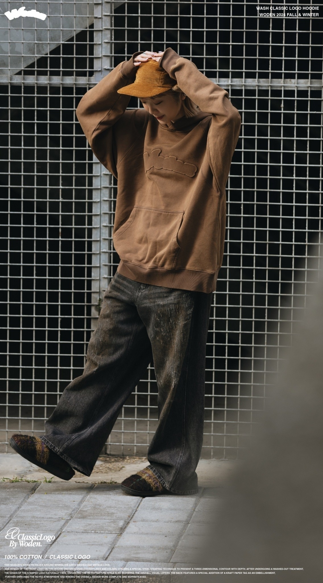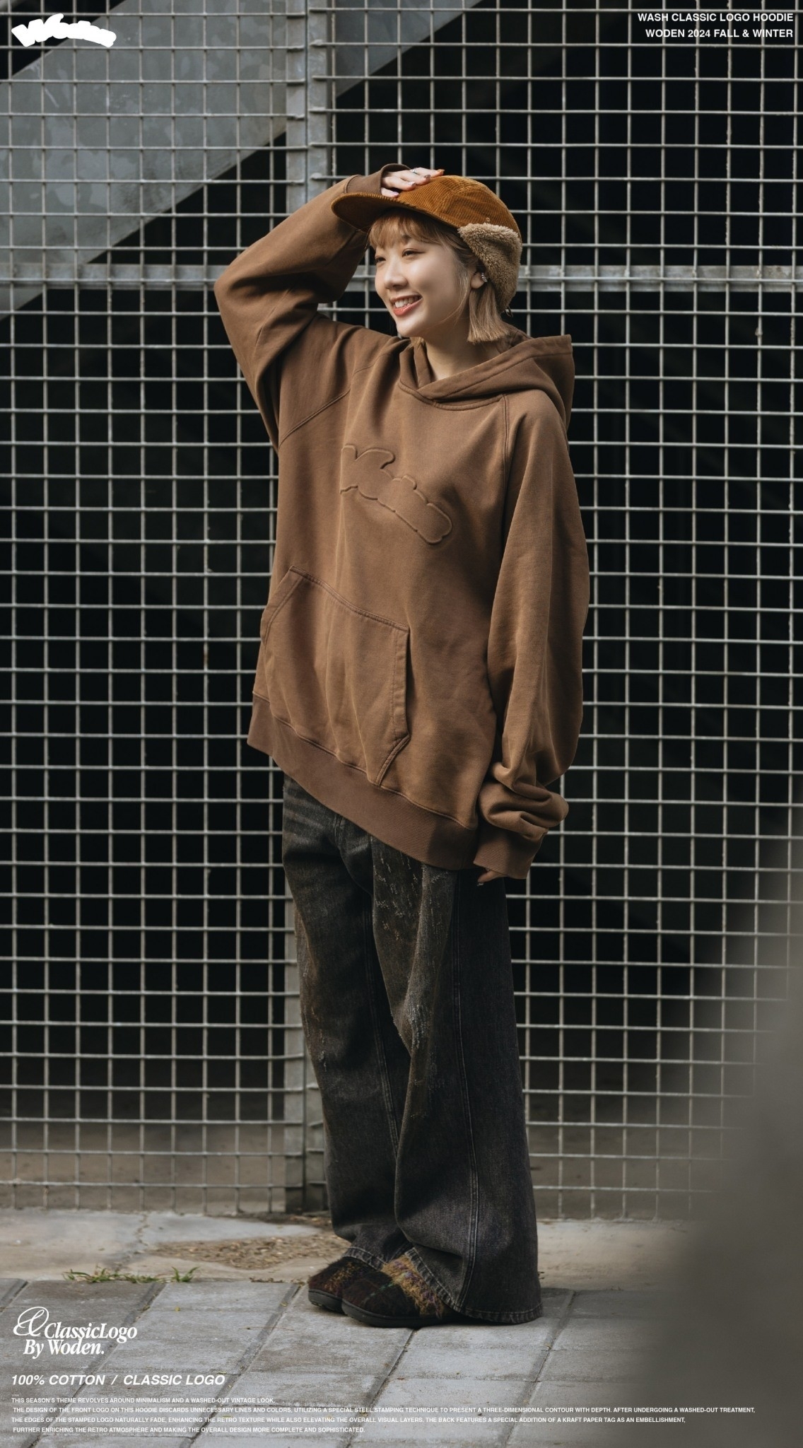 WODEN 2024 Fall & Winter Wash Classic LOGO Hoodie