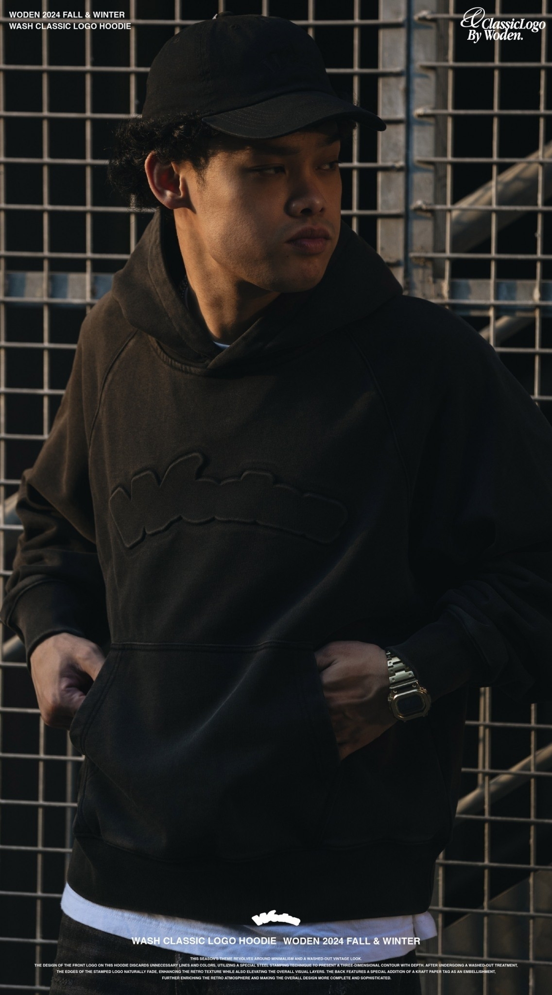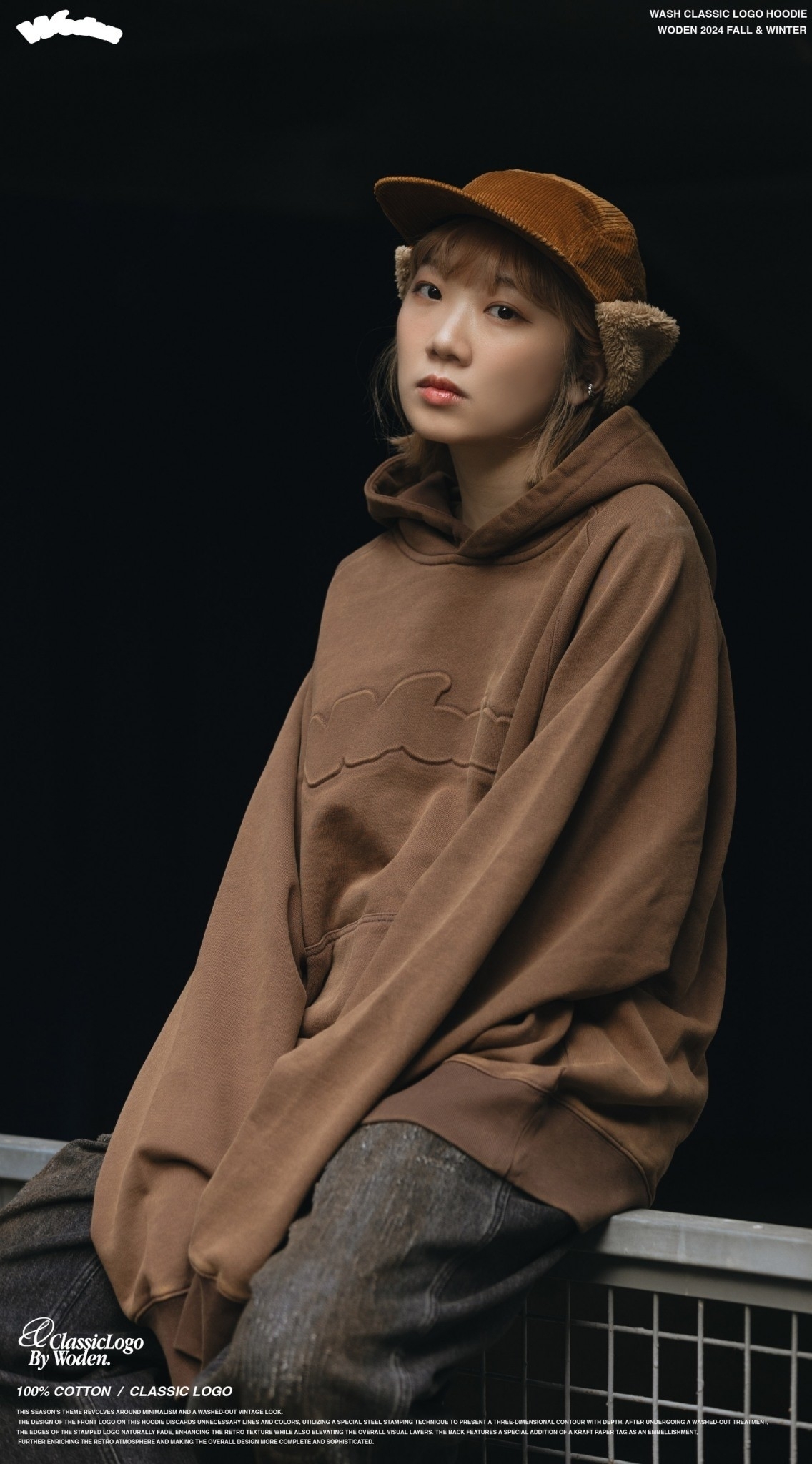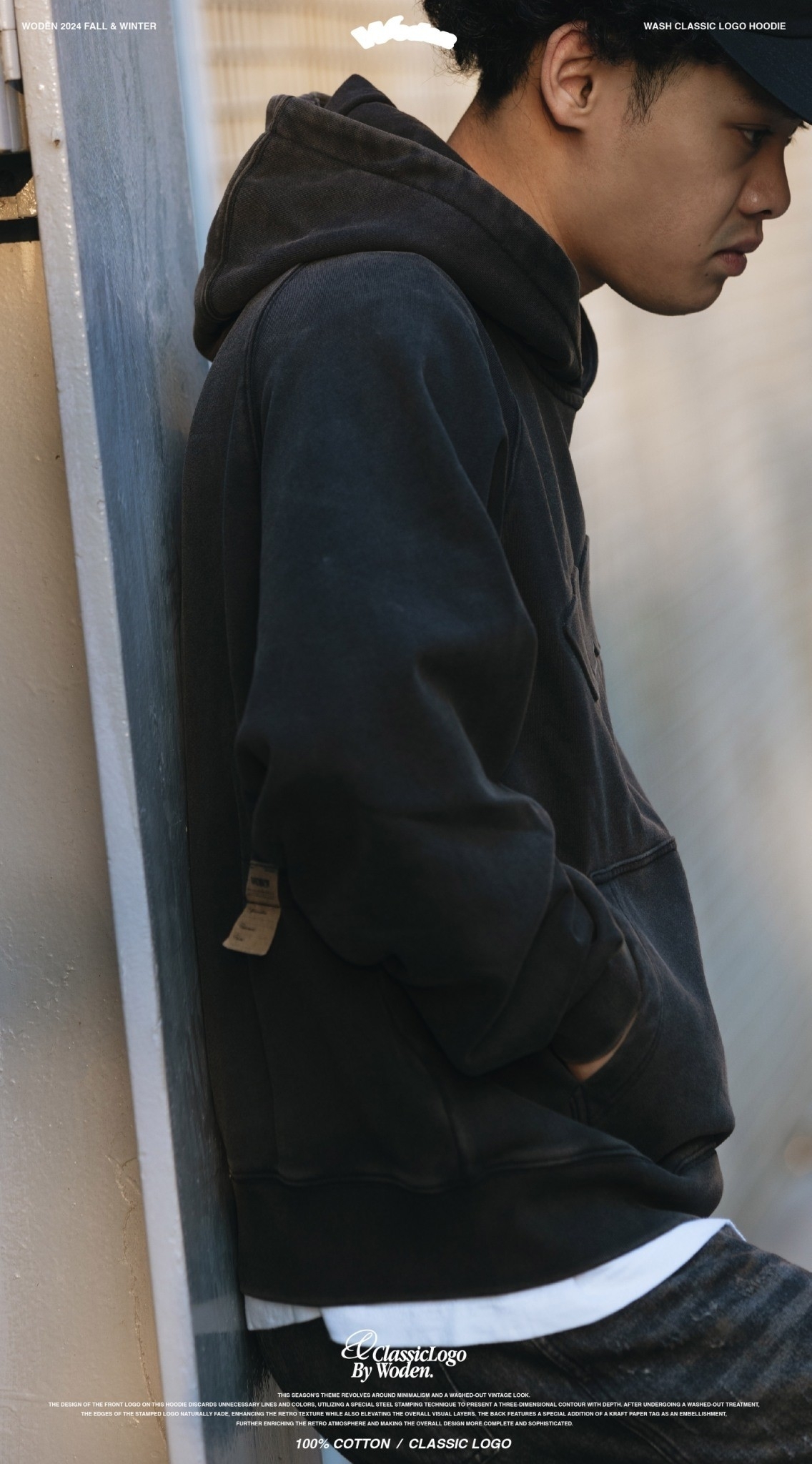 WODEN 2024 Fall & Winter 046 Wash Classic LOGO Hoodie