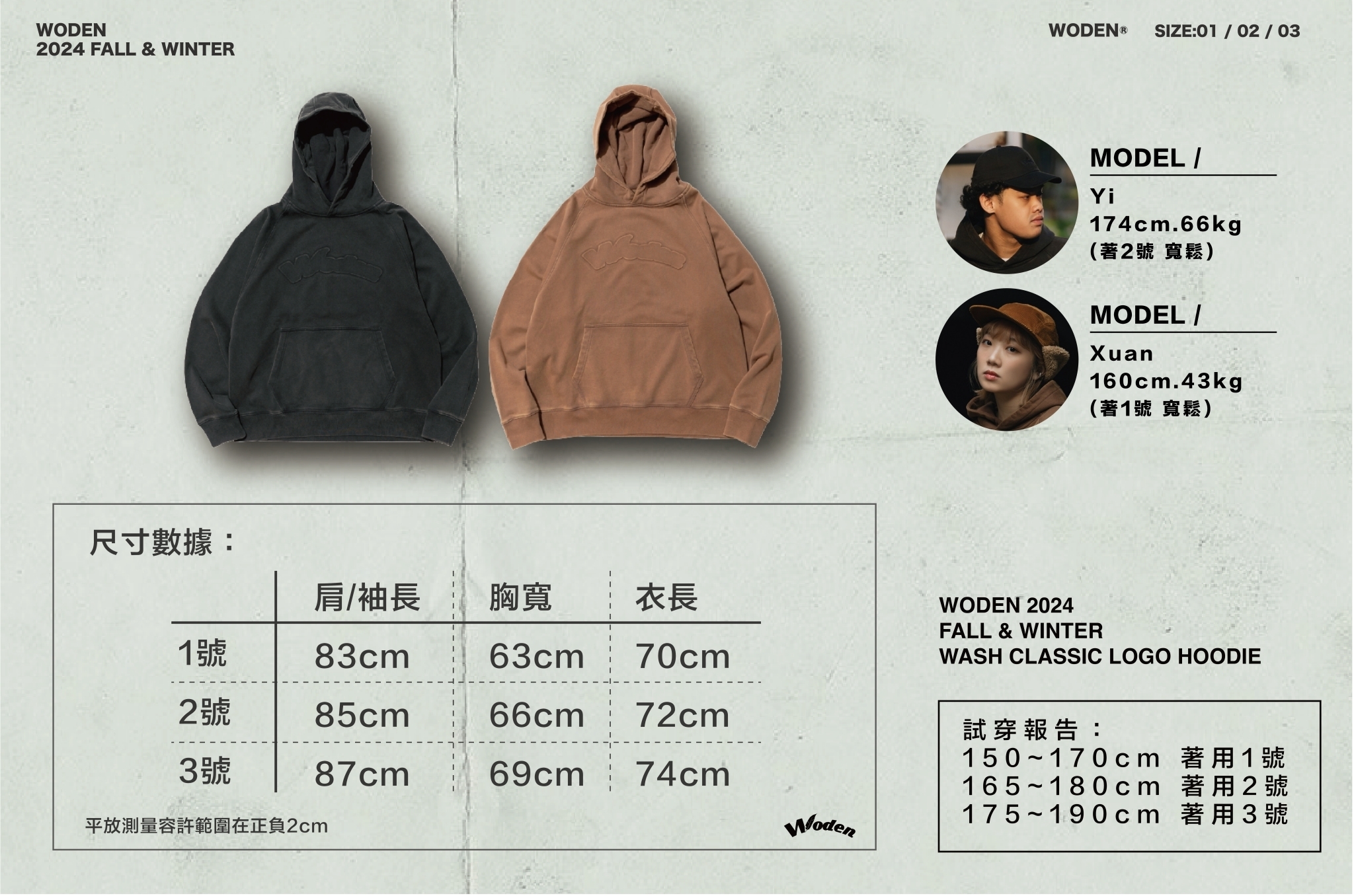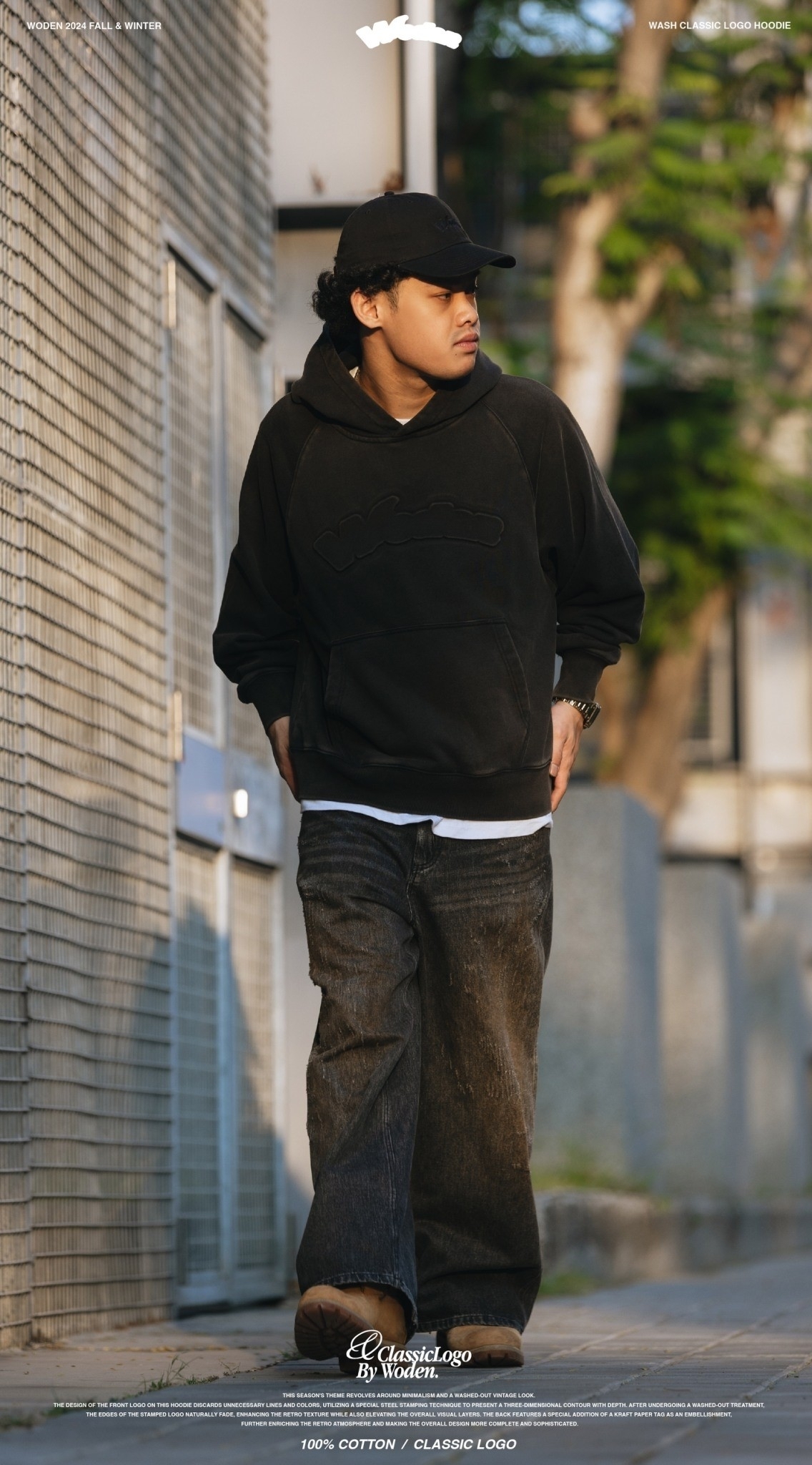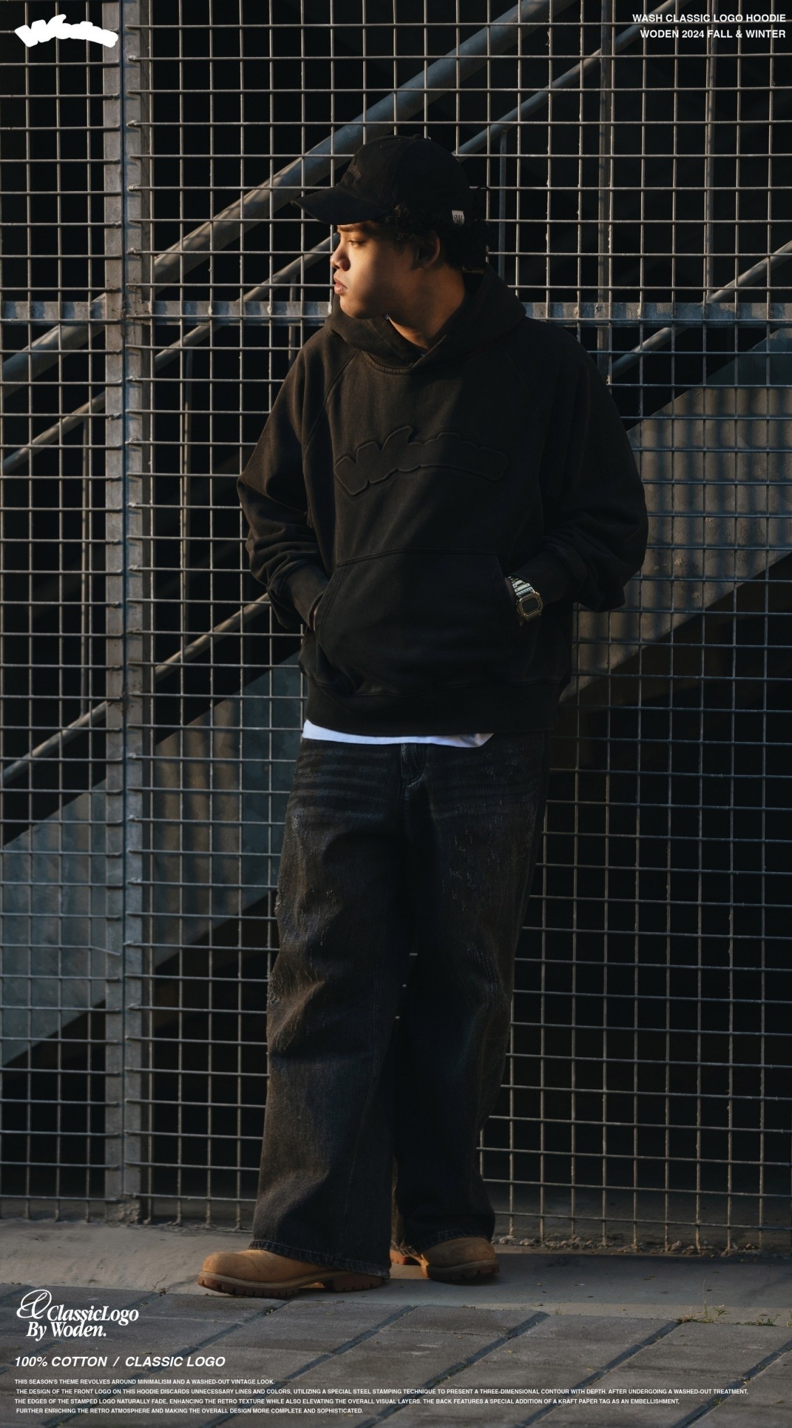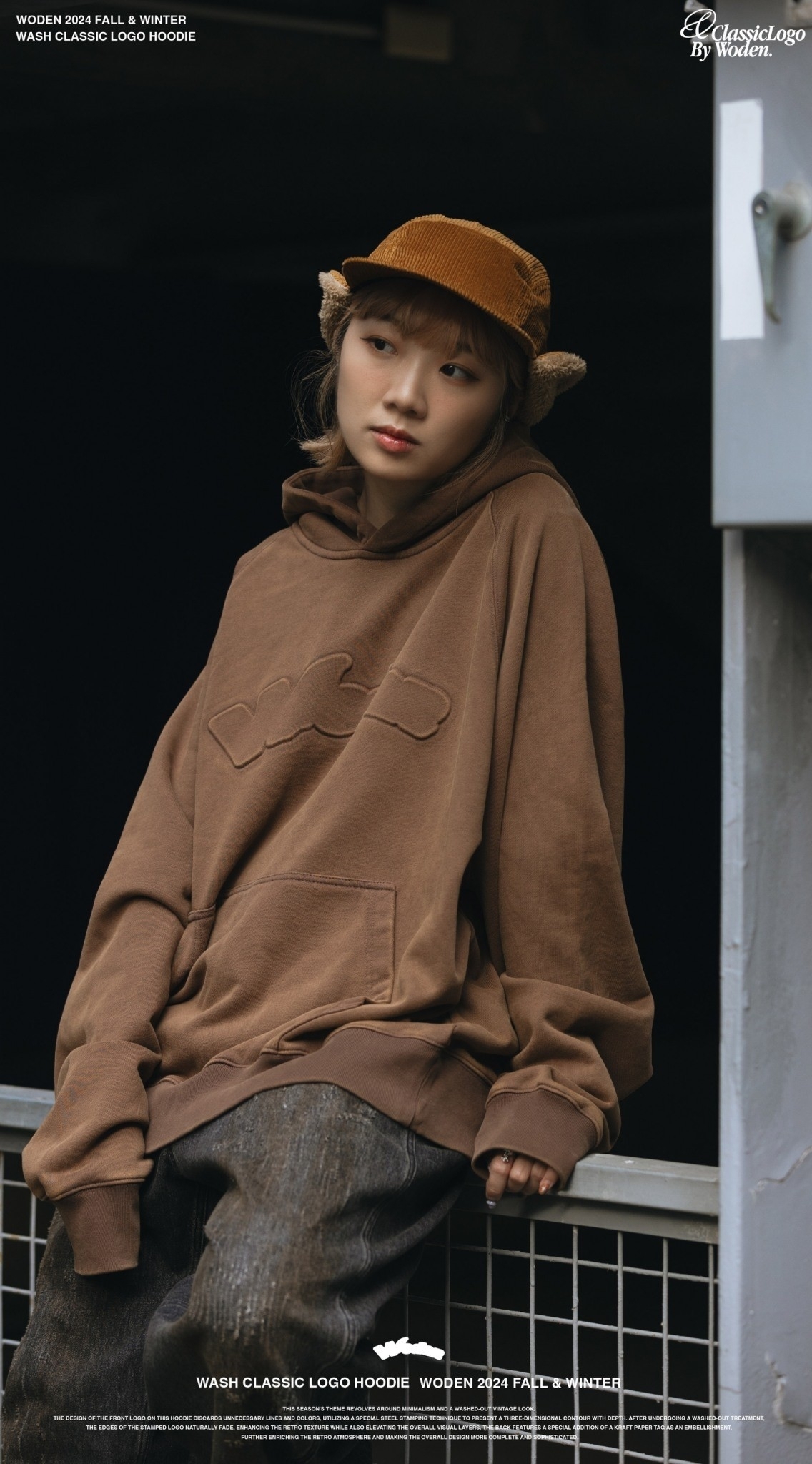 WODEN 2024 Fall & Winter 046 Wash Classic LOGO Hoodie