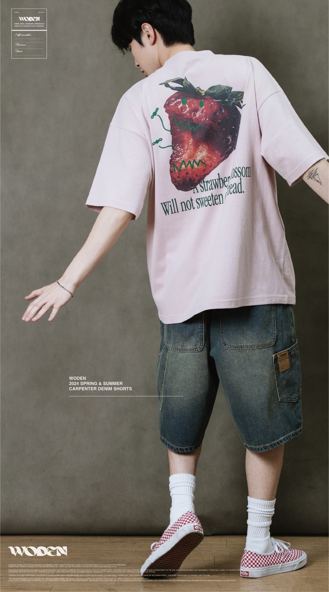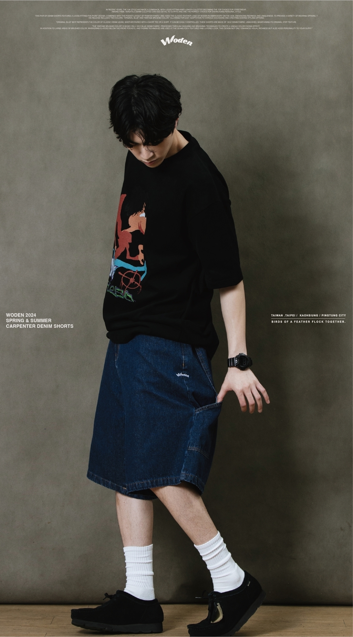 本次的牛仔短褲採用了寬鬆的五分版型,結合『畫家褲』口袋配置設計,