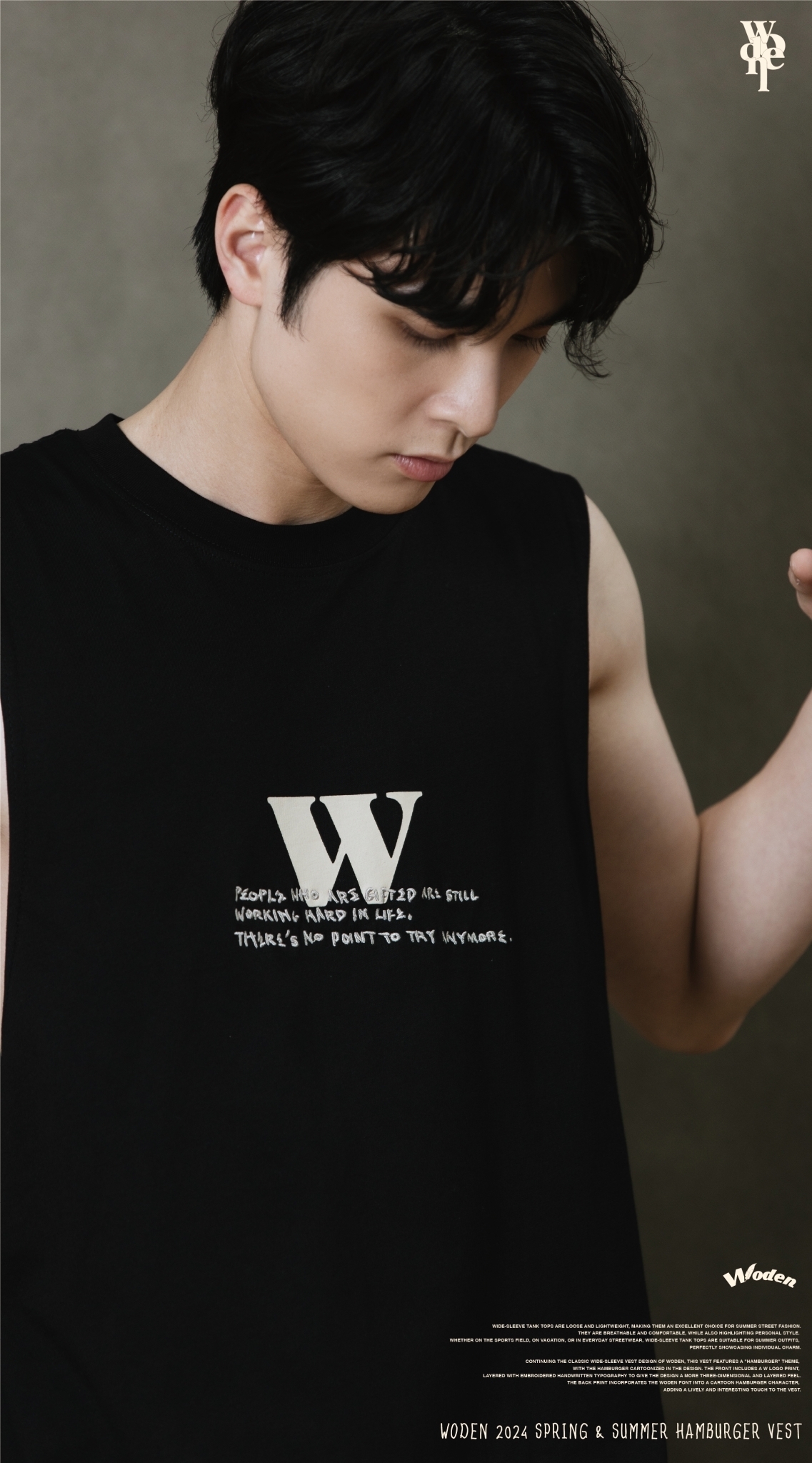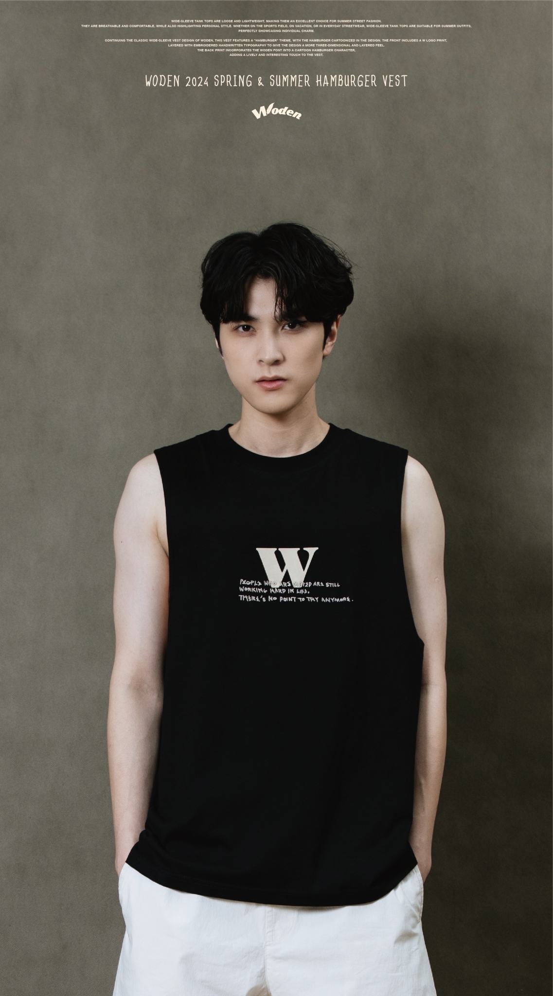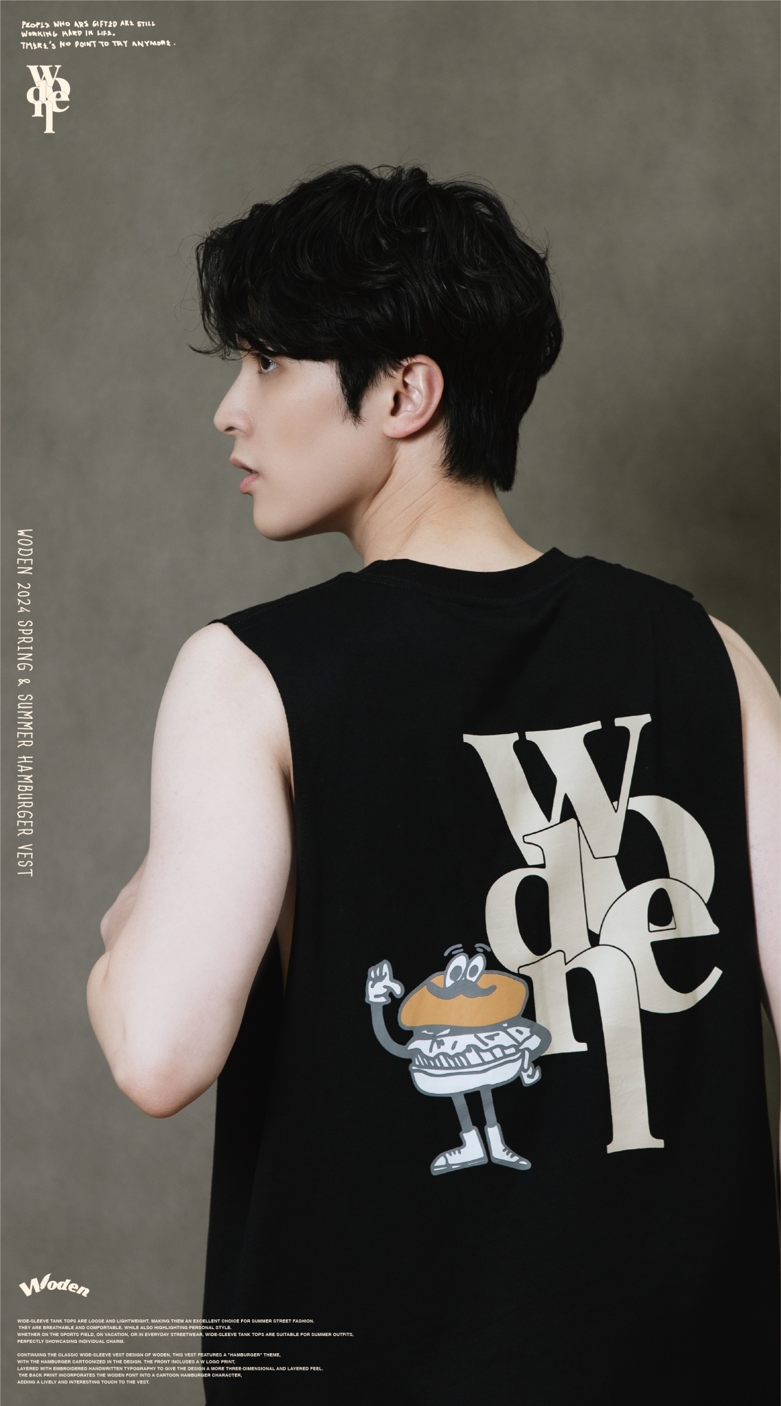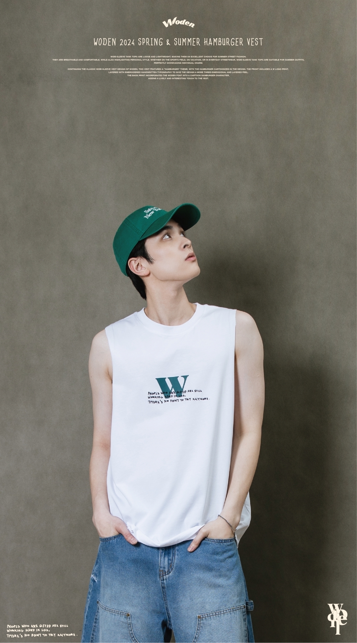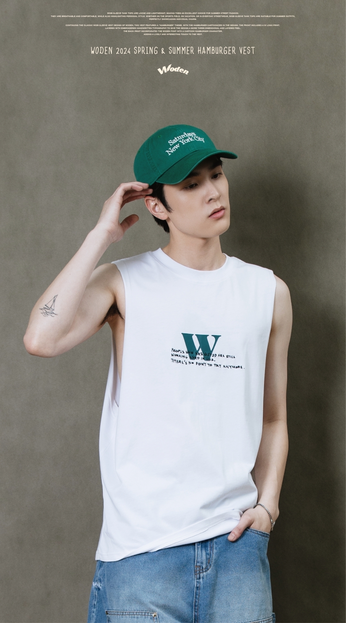 延續WODEN經典寬袖背心版型,此款背心圖像以『漢堡』為主題設計,將漢堡卡通化呈現。正面加入W LOGO印花,並疊上電繡手寫字體排版,使圖案更加立體有層次感。背面印花則以WODEN字體排版融入卡通漢堡人形象,生動有趣的漢堡人為背心增添了豐富的趣味。
