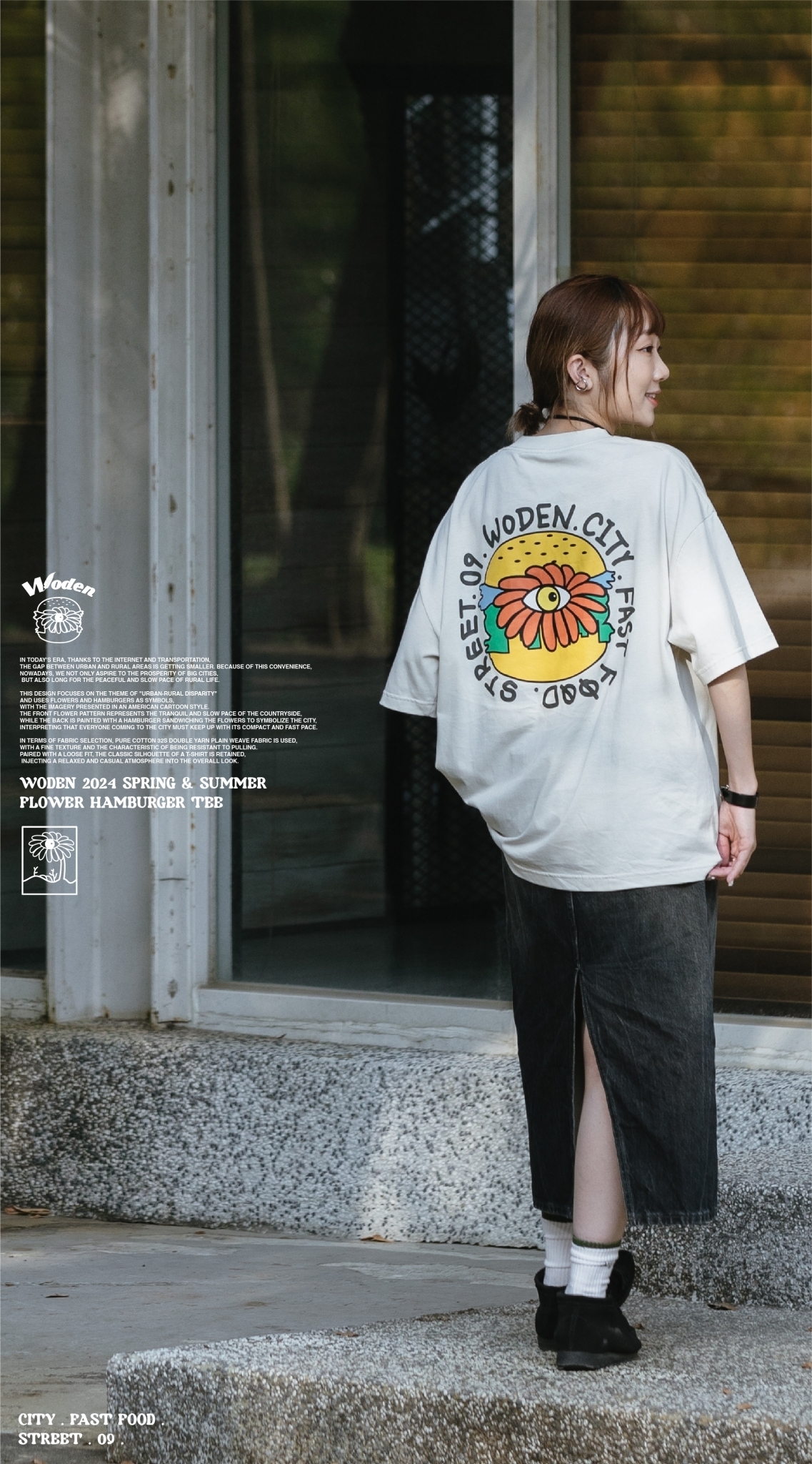 WODEN 2024 Spring & Summer Flower Hamburger Tee
