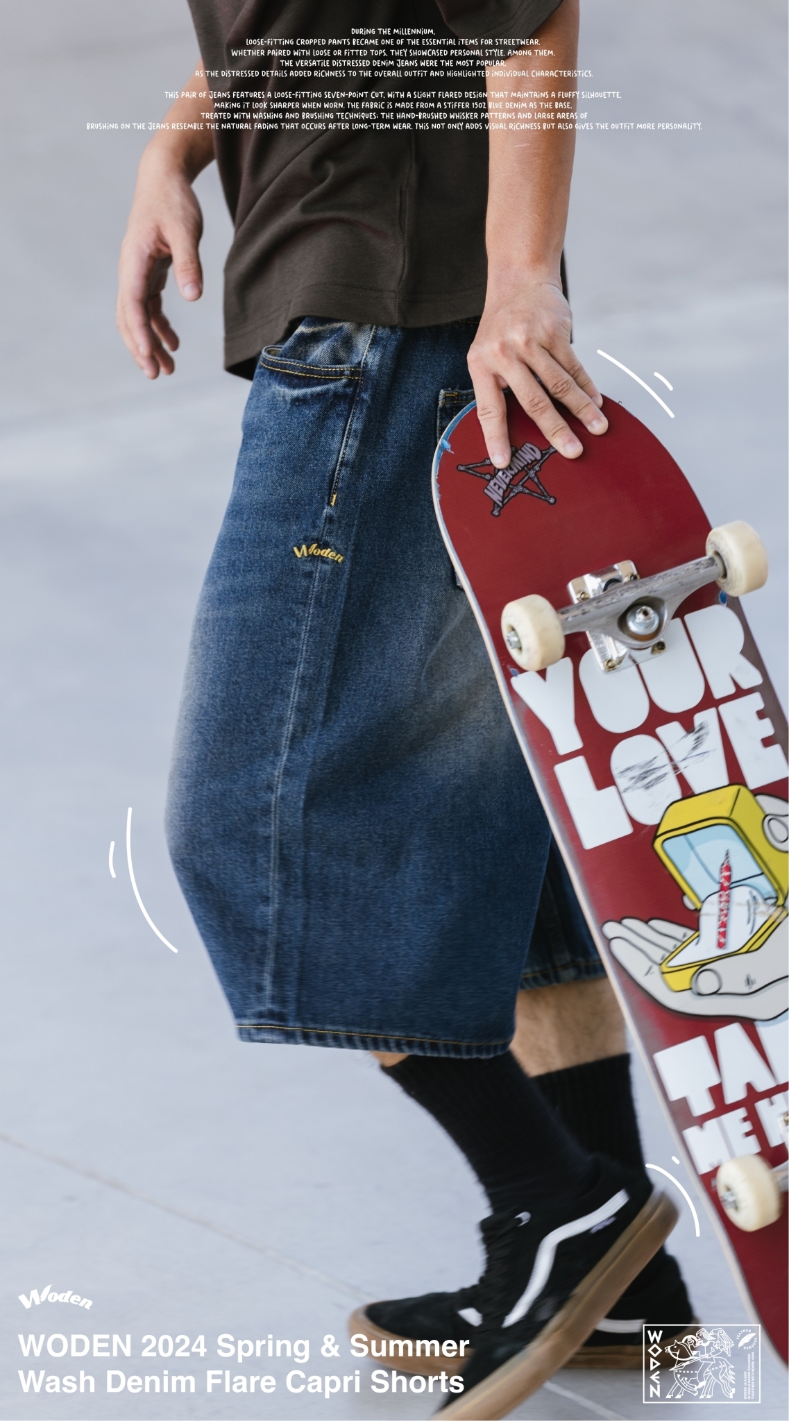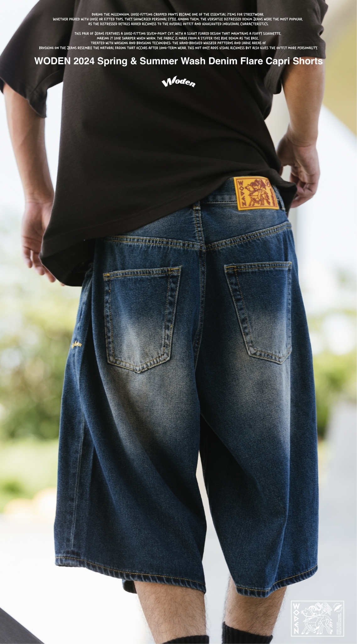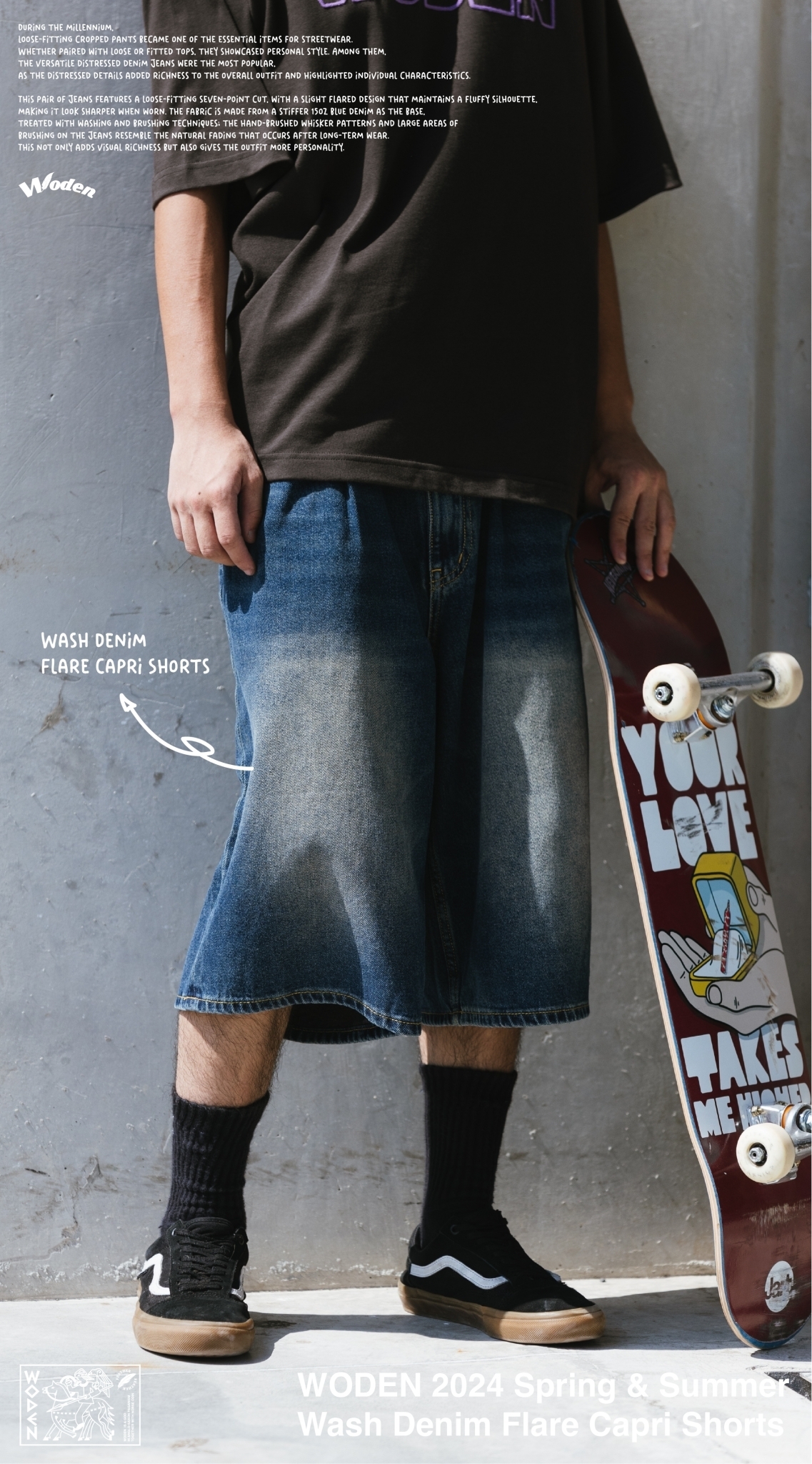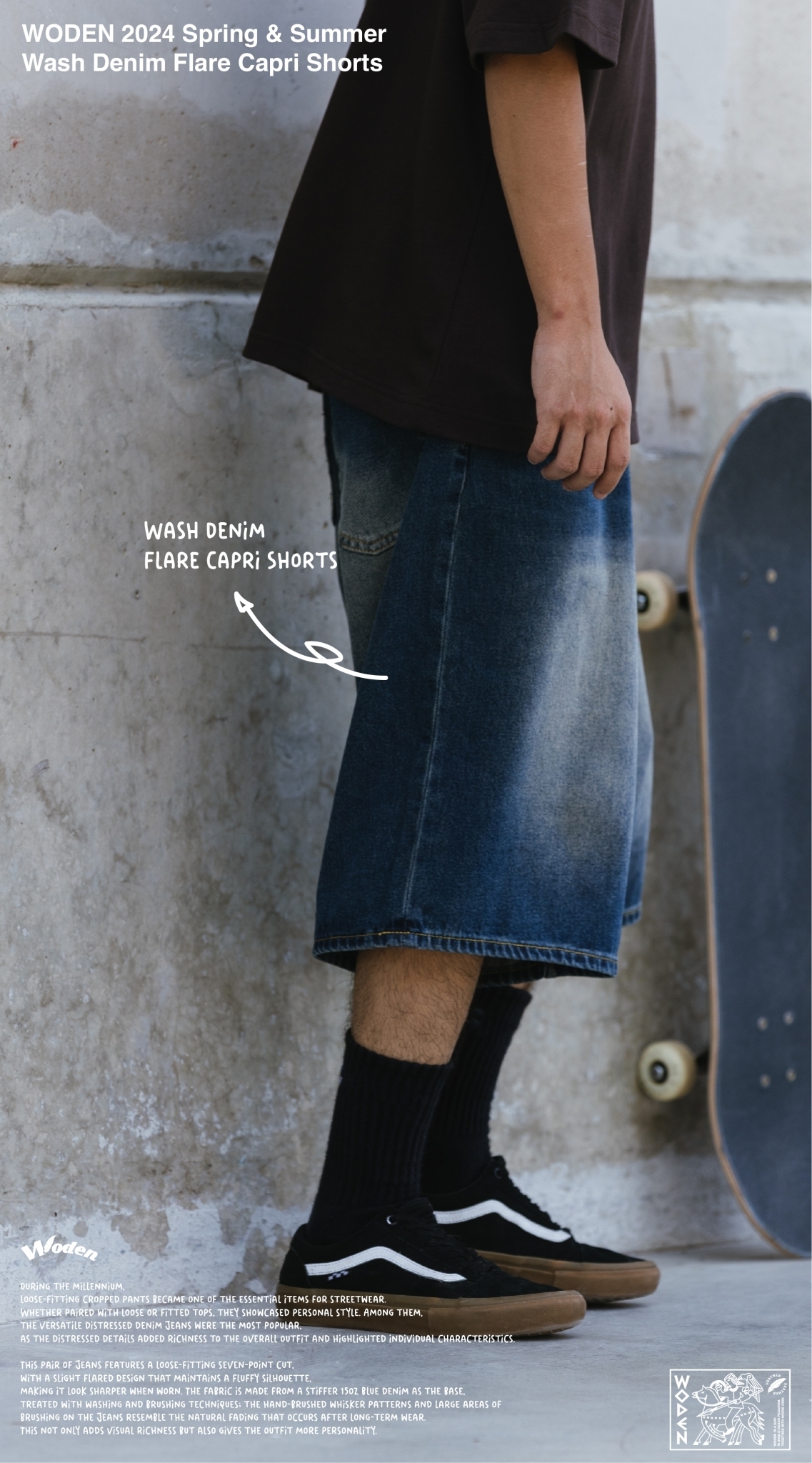 WODEN 2024 Spring & Summer 068 Wash Denim Flare Capri Shorts