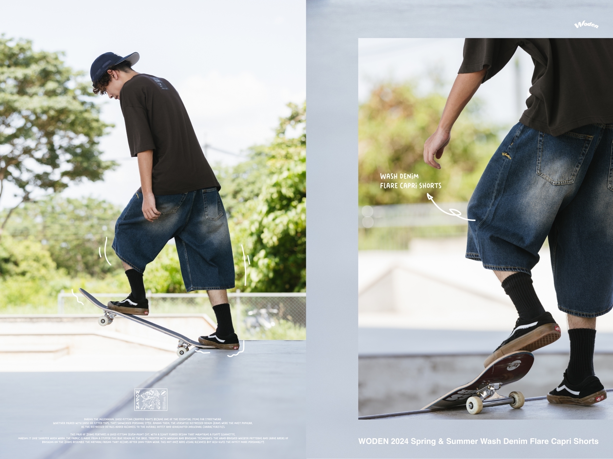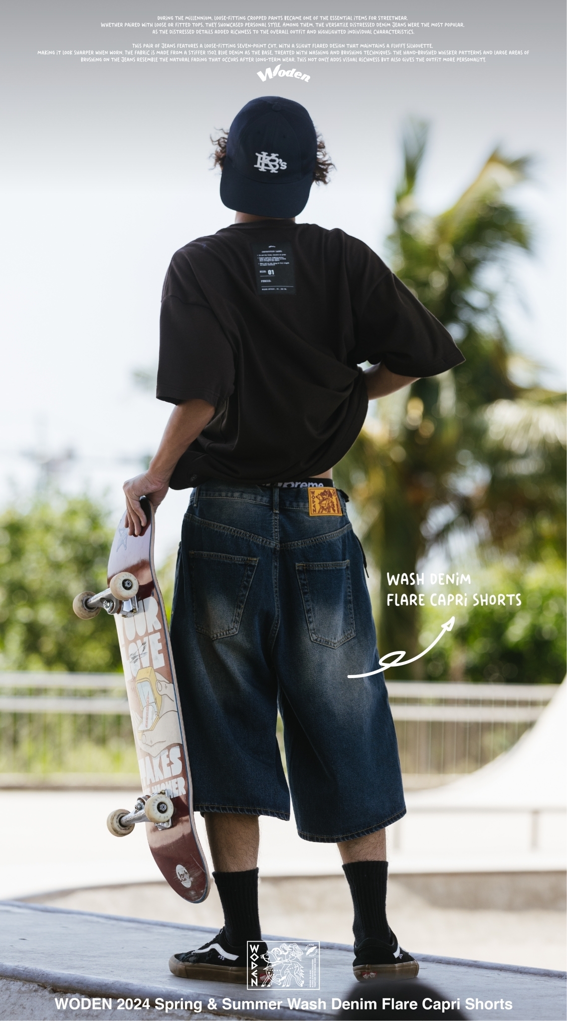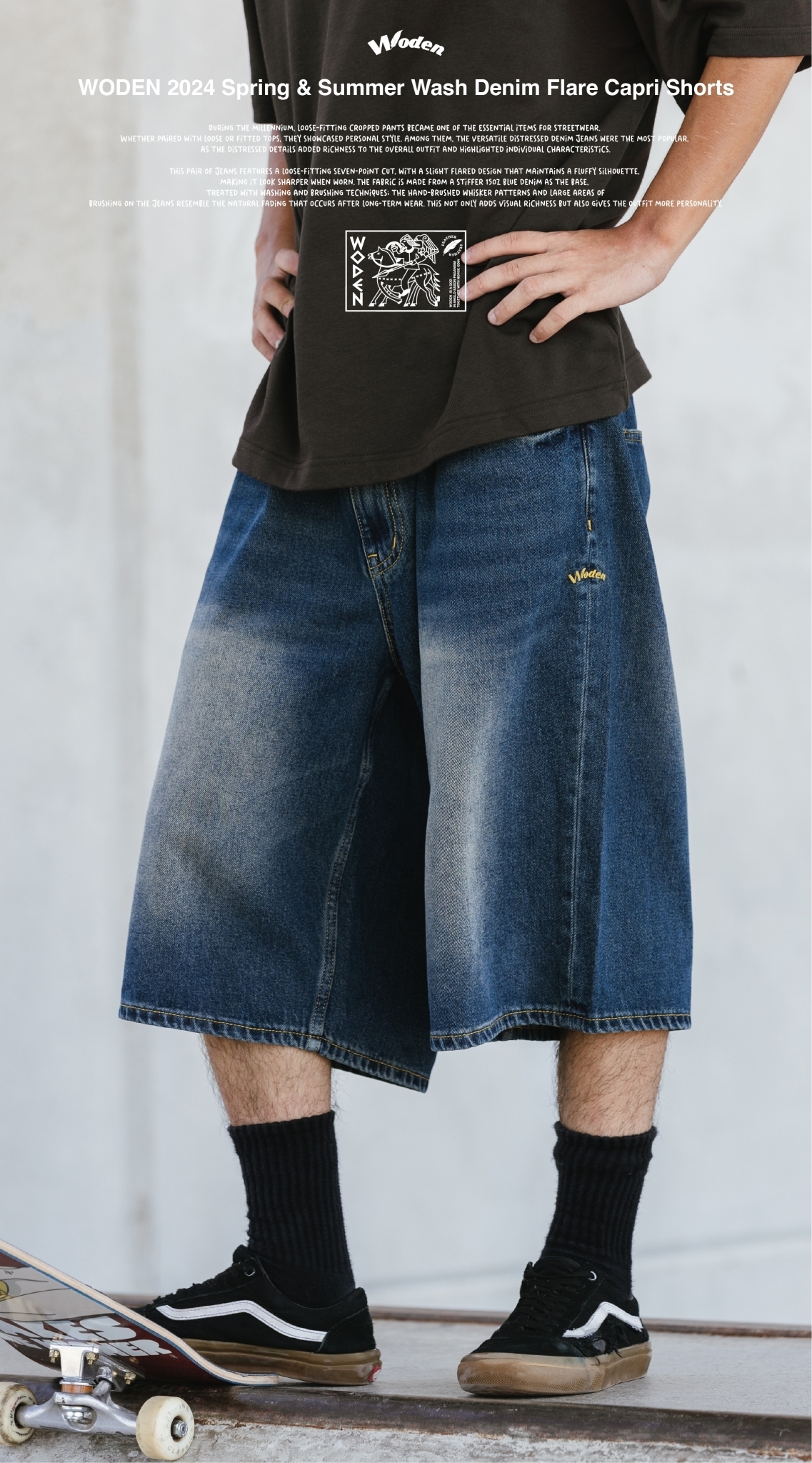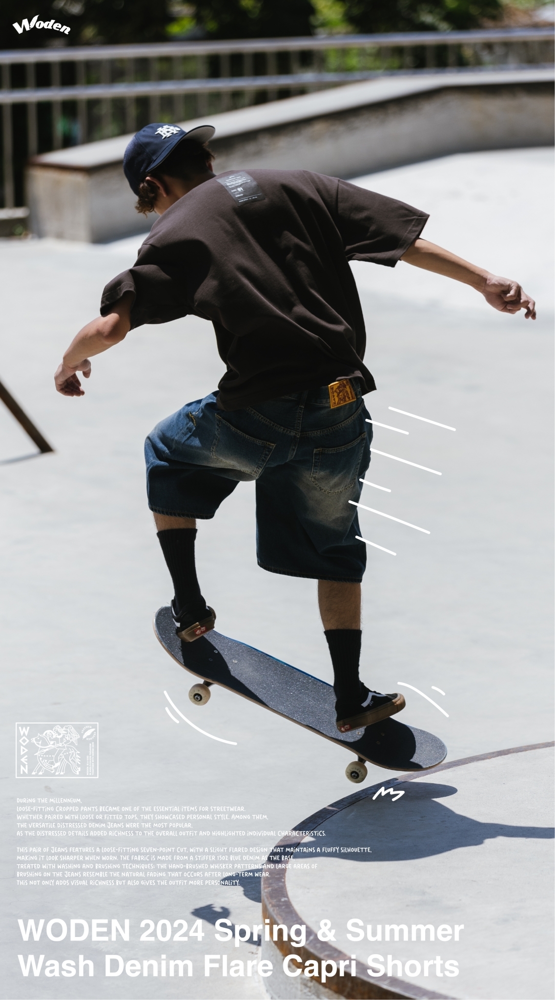 WODEN 2024 Spring & Summer 068 Wash Denim Flare Capri Shorts