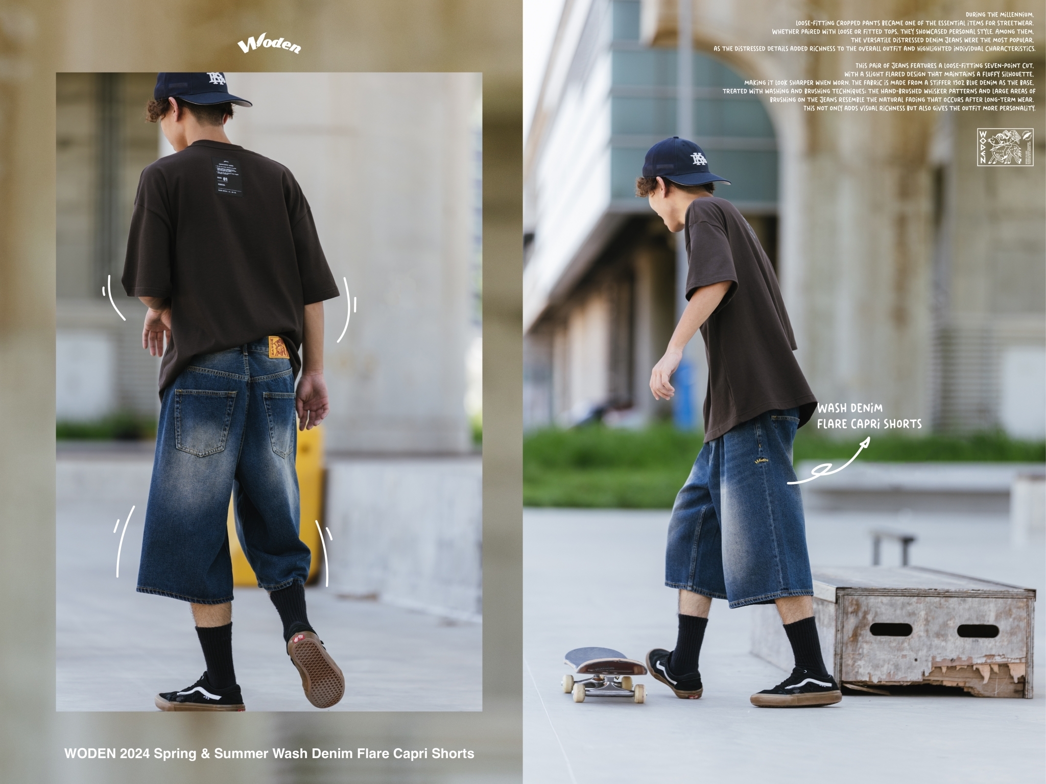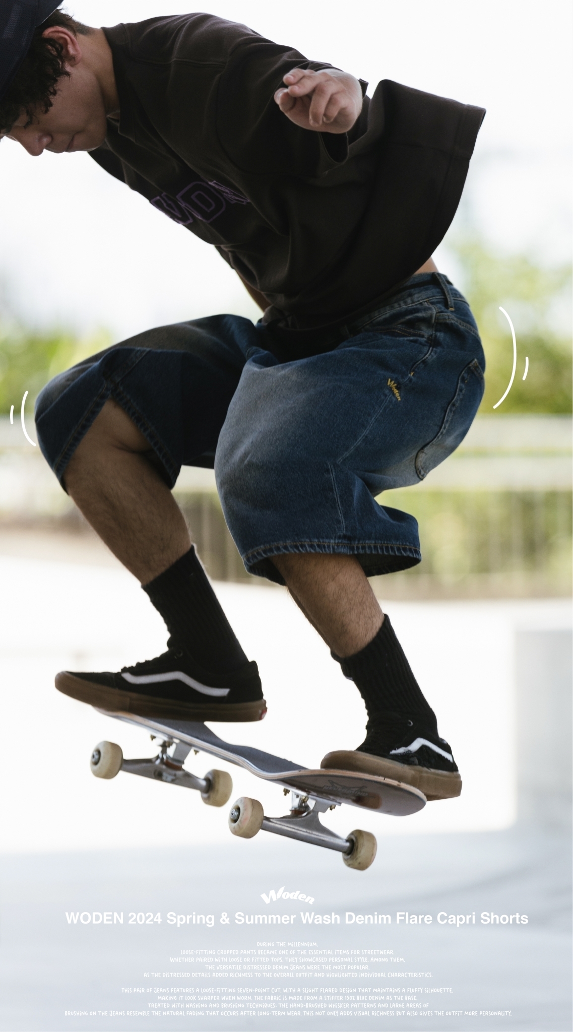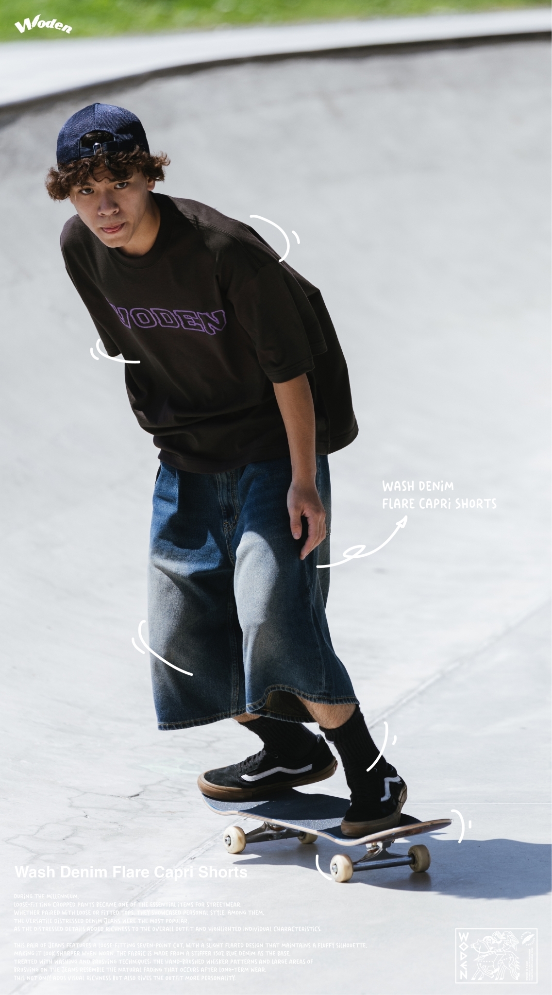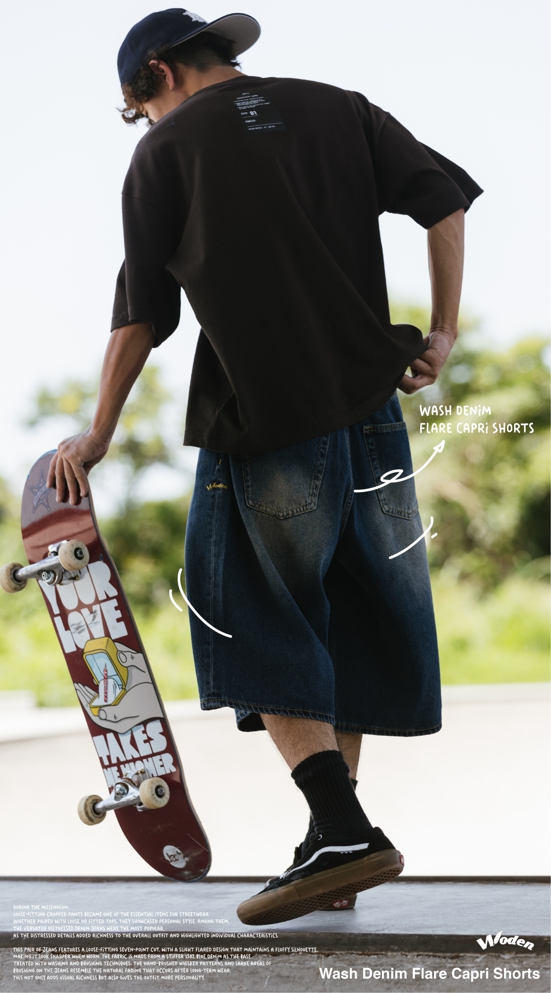 WODEN 2024 Spring & Summer 068 Wash Denim Flare Capri Shorts