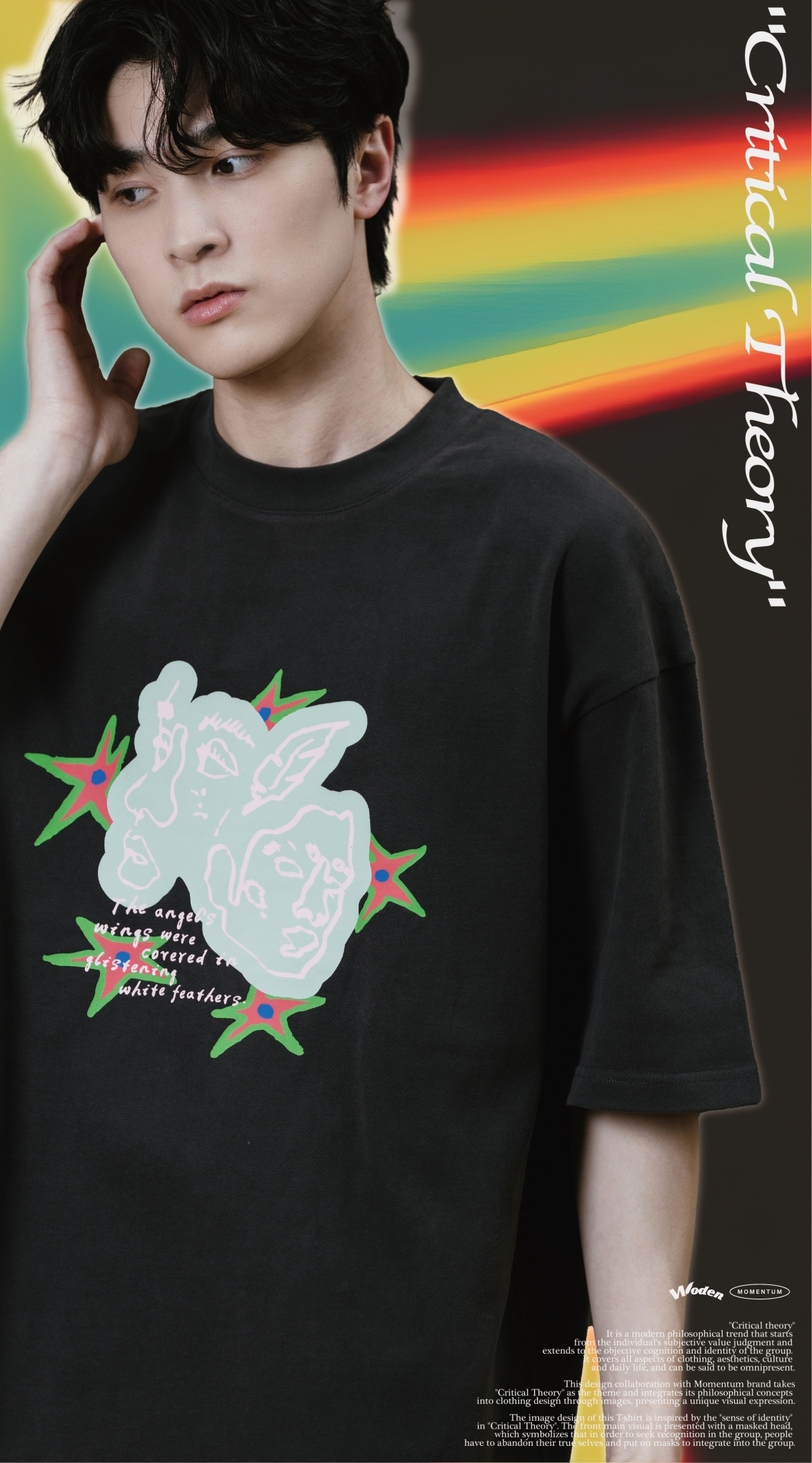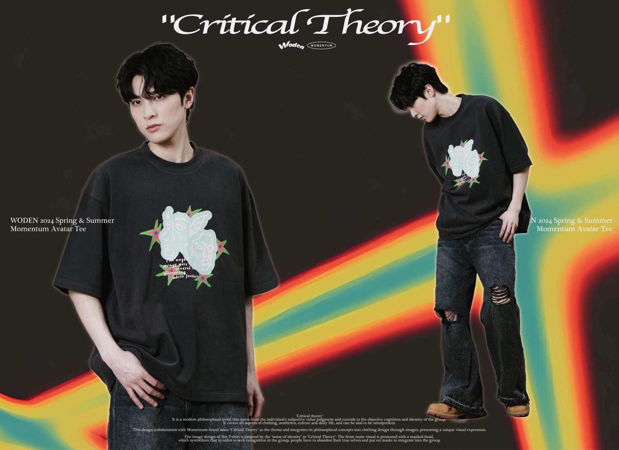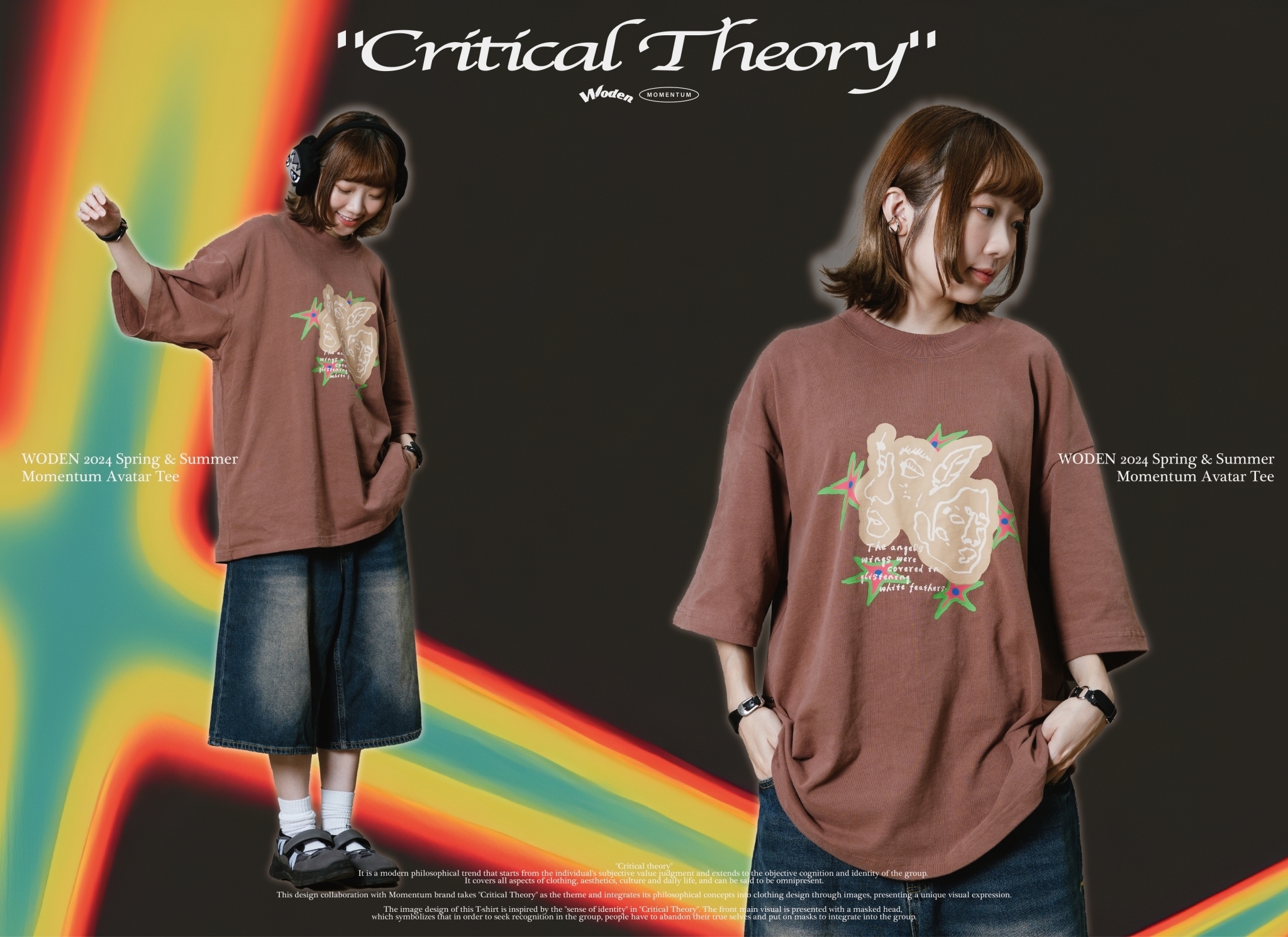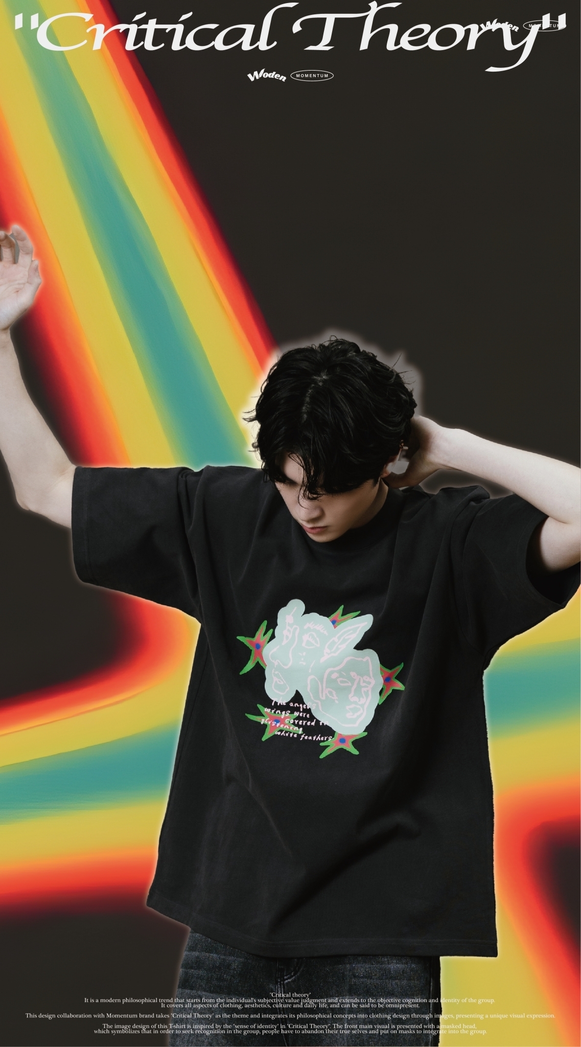 本次與Momentum品牌合作設計,以『批判理論 Critical Theory』為主題,將其哲學理念以圖像方式融入服飾設計,呈現出獨特的視覺表達。