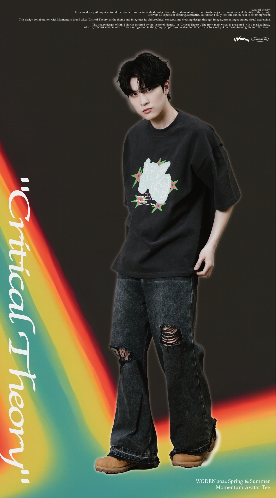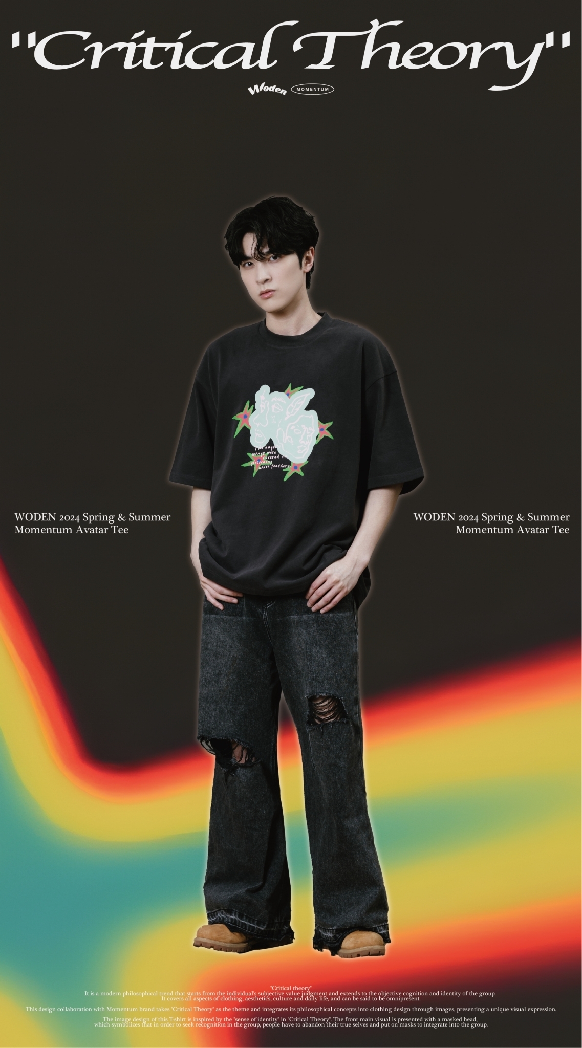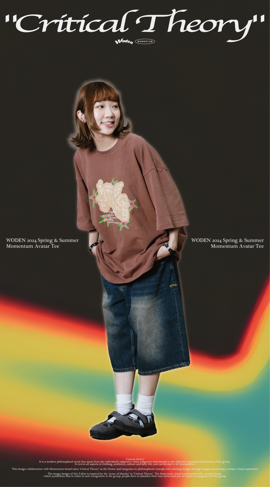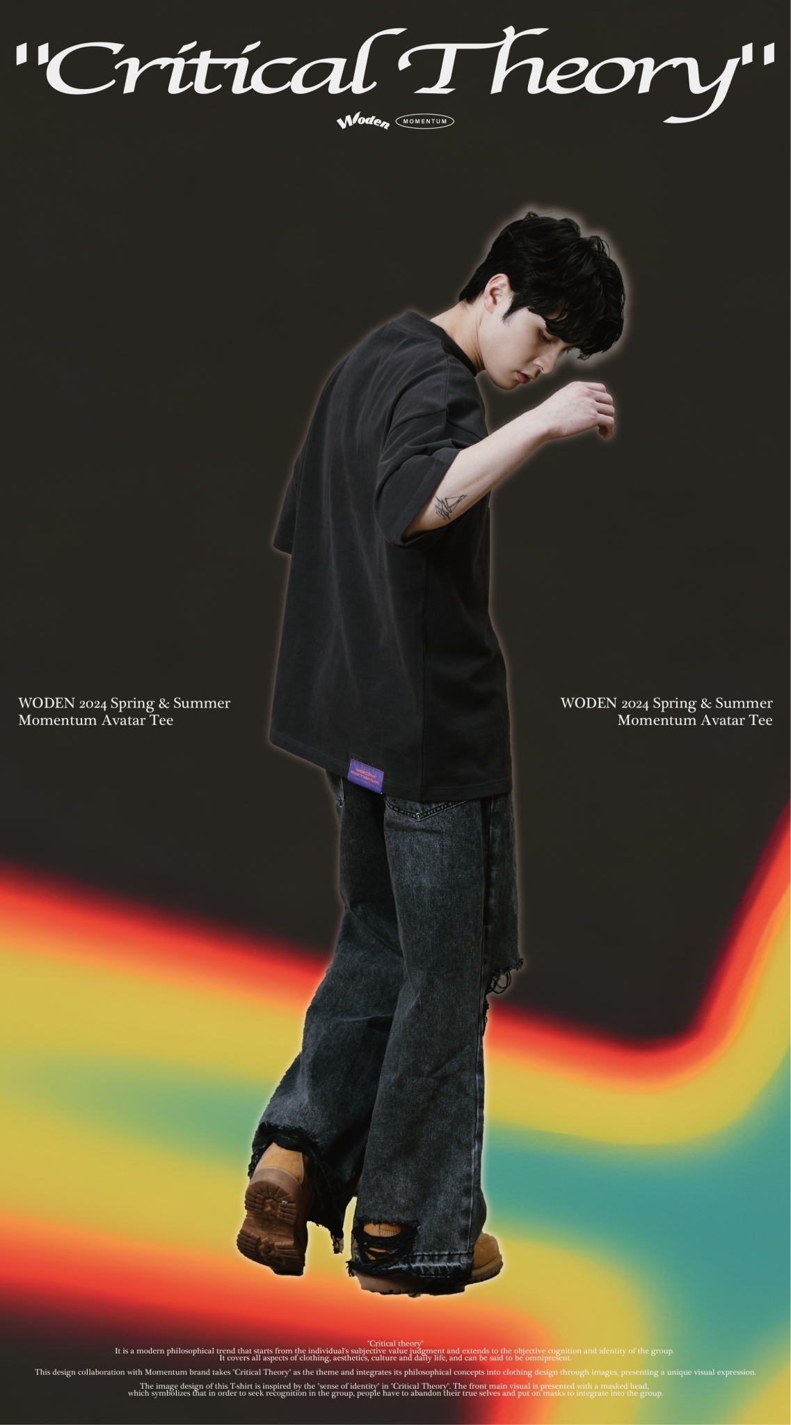 本次與Momentum品牌合作設計,以『批判理論 Critical Theory』為主題,將其哲學理念以圖像方式融入服飾設計,呈現出獨特的視覺表達。