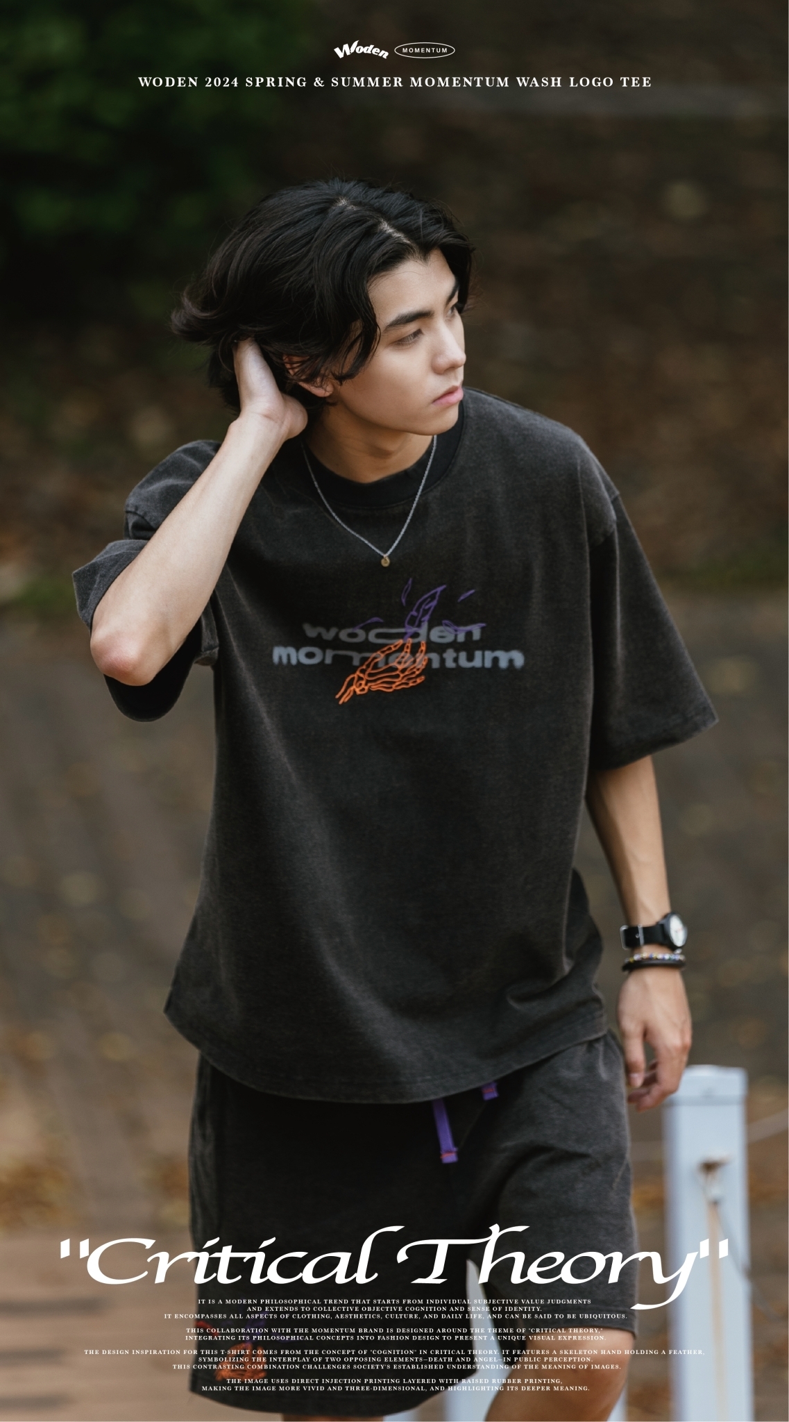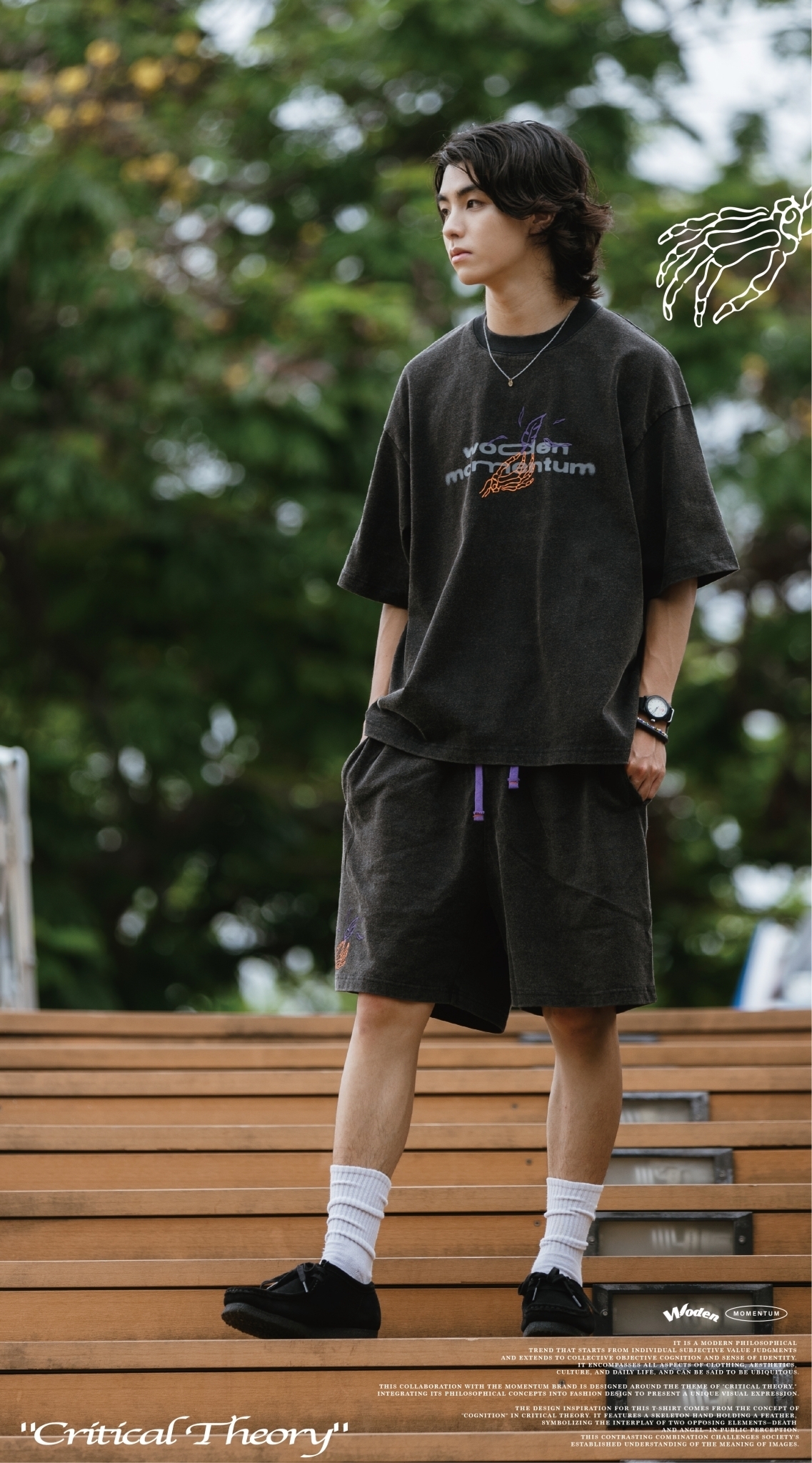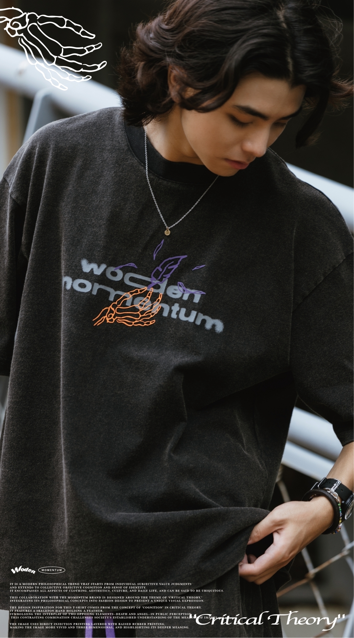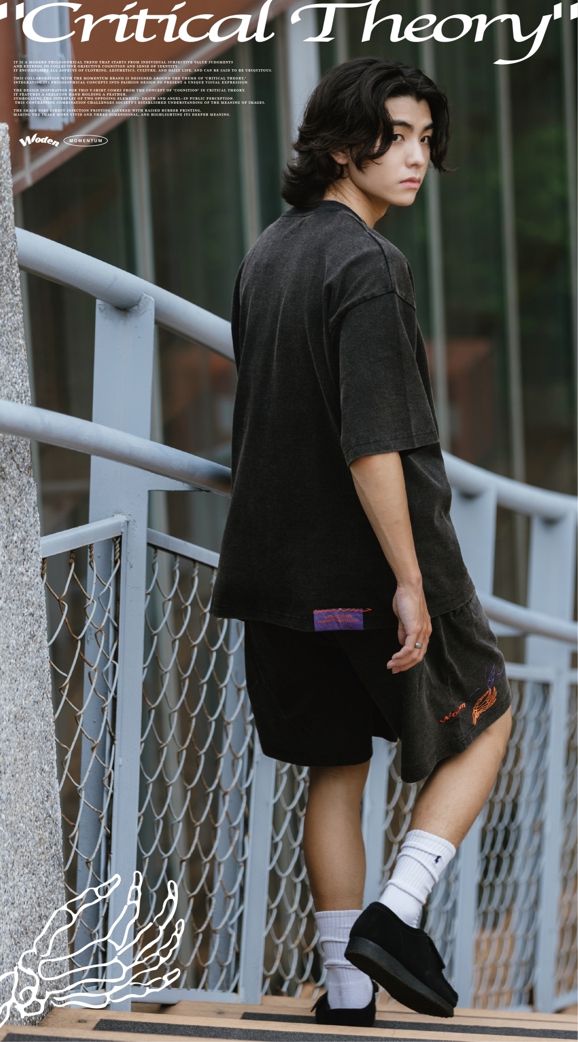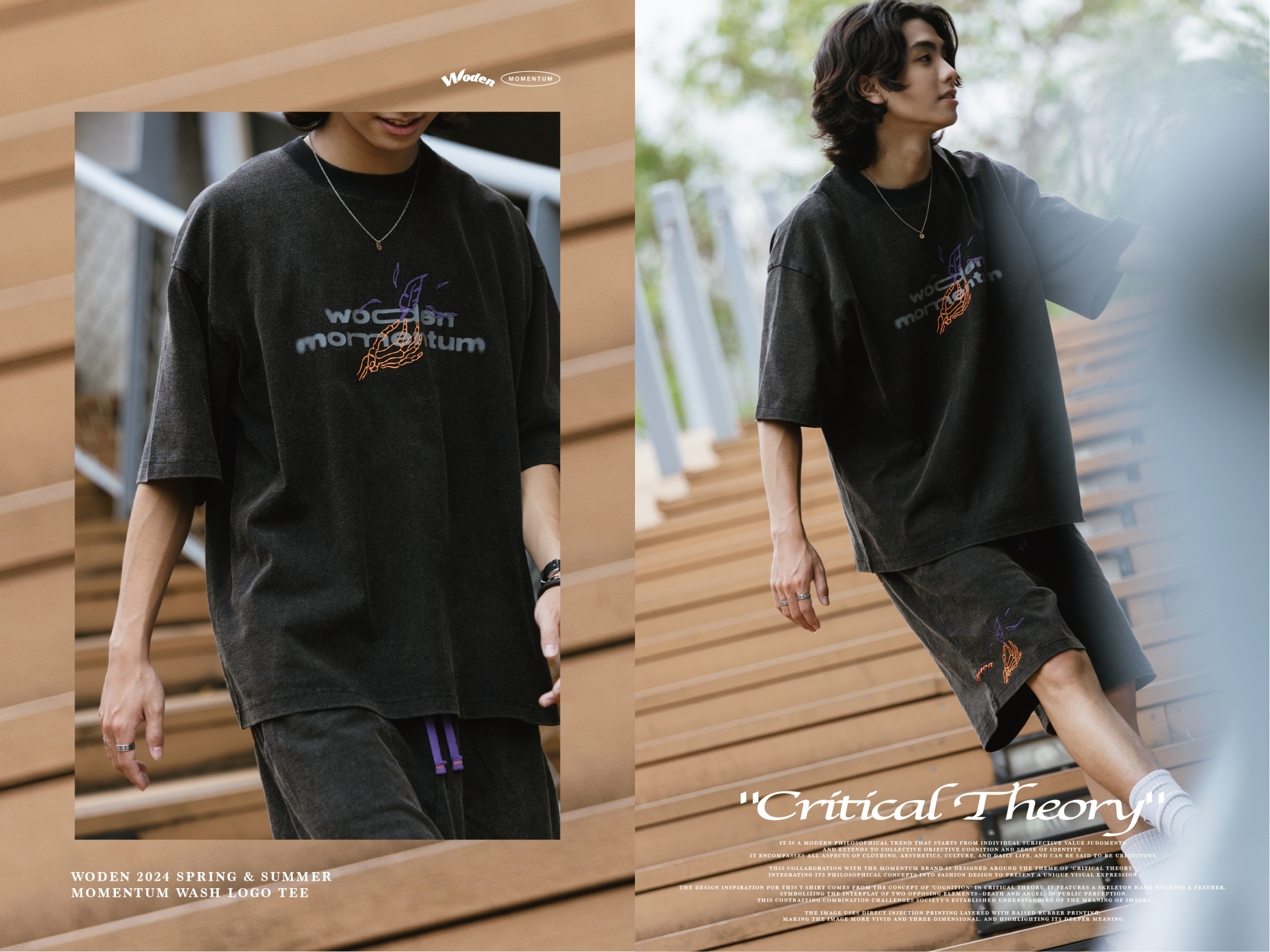 本次與Momentum品牌合作設計,以『批判理論 Critical Theory』為主題,將其哲學理念融入服飾設計,呈現出獨特的視覺表達。