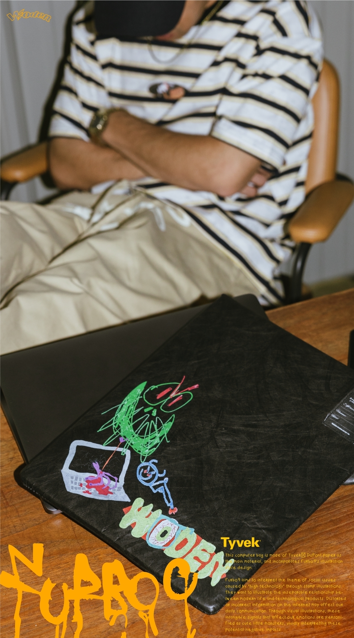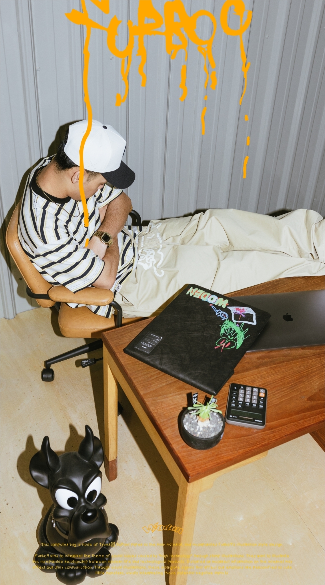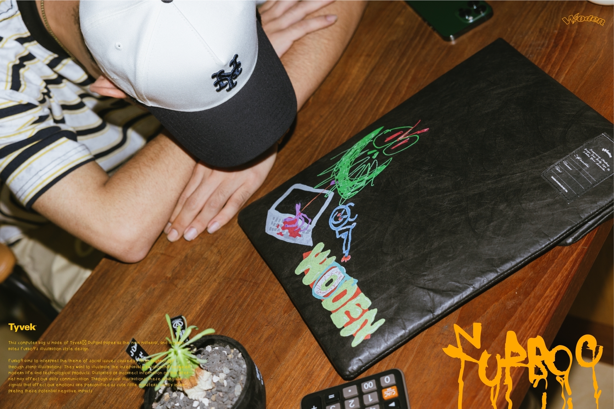此款電腦包選用了Tyvek®杜邦紙作為主要材質,並融入了Furbo9的插畫風格設計。
